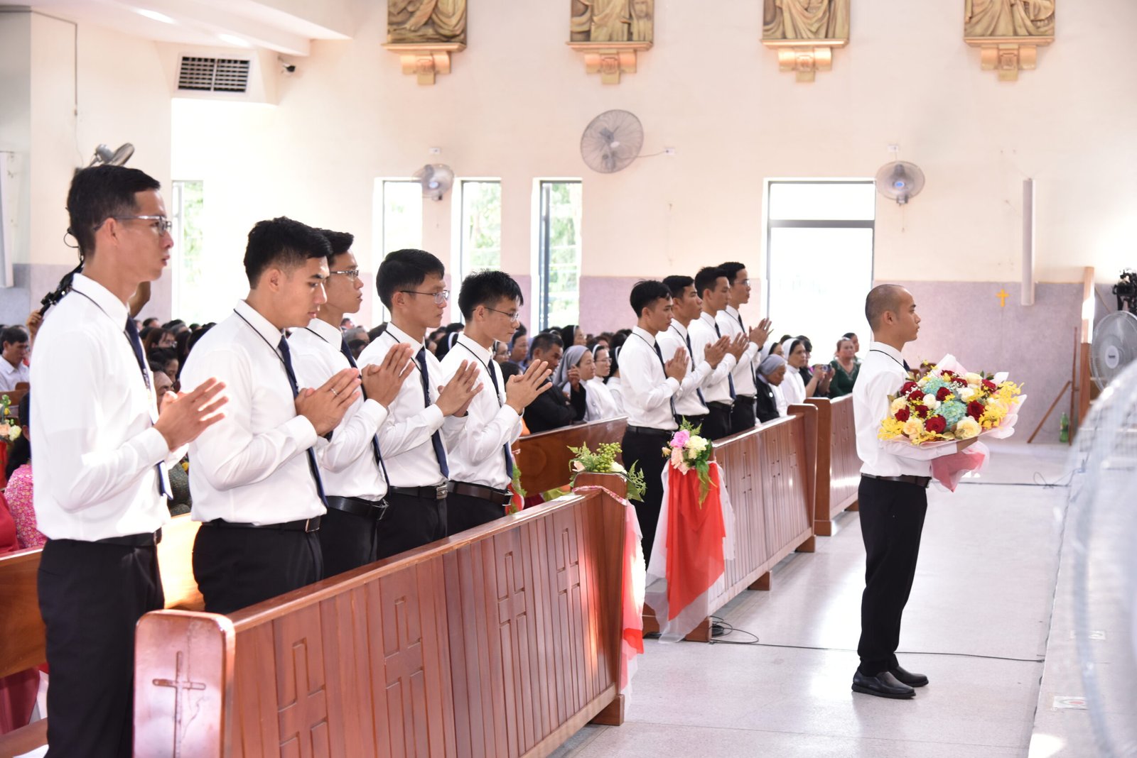 Việt Nam_Sáng ngày 14.08.2024, vào lúc 06g00, Tỉnh Dòng Salêdiêng Don Bosco đã tổ chức thánh lễ Tuyên Khấn cho 10 anh em khấn sinh tại Nhà thờ Giáo xứ Don Bosco Ba Thôn, thuộc TGP. Sài Gòn.