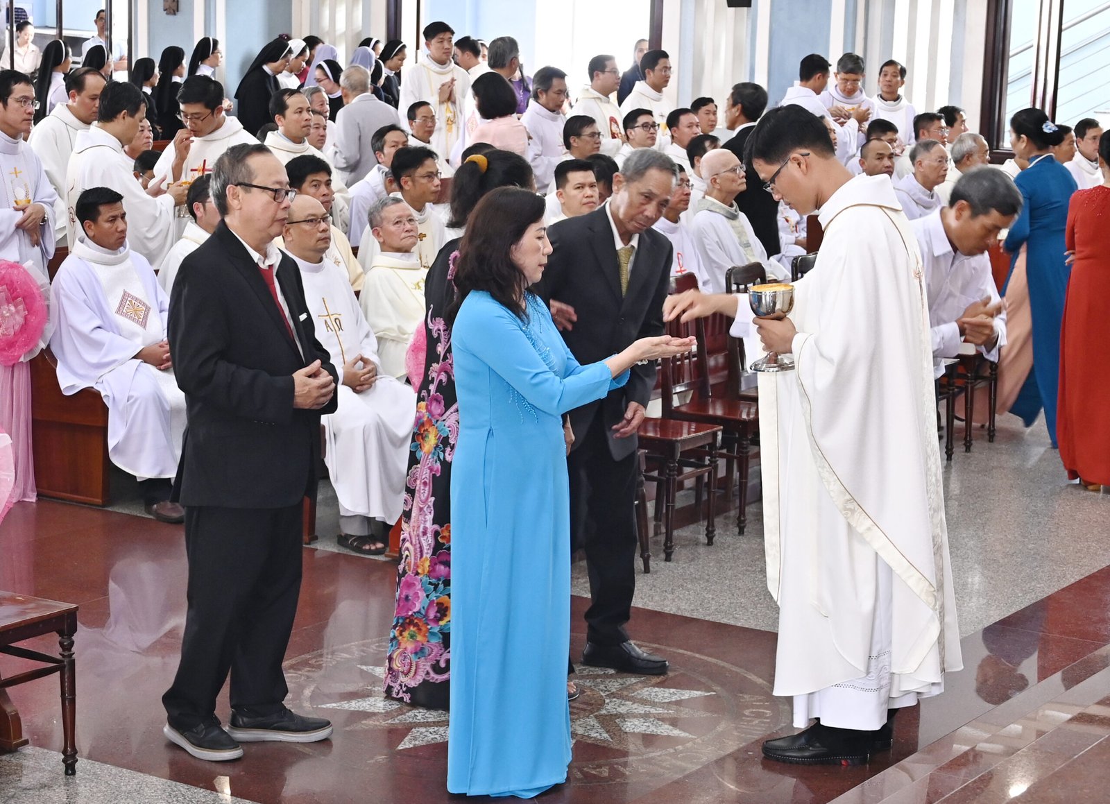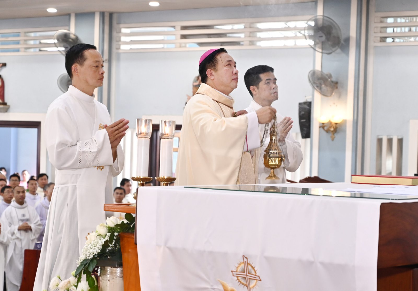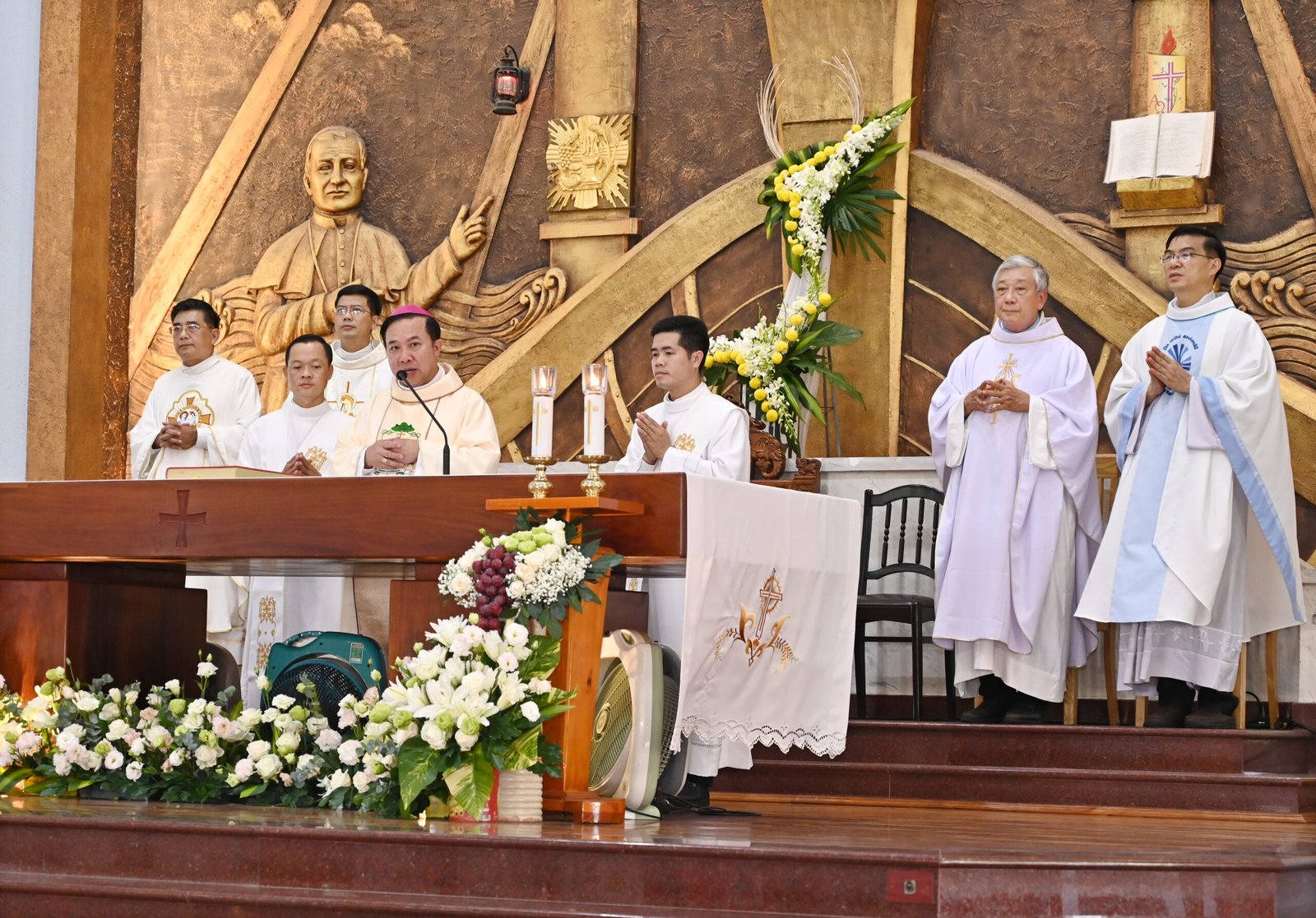 Đức Cha Gioan Baotixita Nguyễn Huy Bắc, Giám mục Giáo phận Ban Mê Thuột, đã chủ sự Thánh lễ. Đồng tế với Đức Cha có Cha Barnaba Lê An Phong, SDB – Giám tỉnh Tỉnh Dòng Thánh Gioan Bosco Việt Nam, Ban cố vấn Tỉnh dòng, cùng đông đảo quý Cha, quý Thầy và đại diện gia đình Salêdiêng.