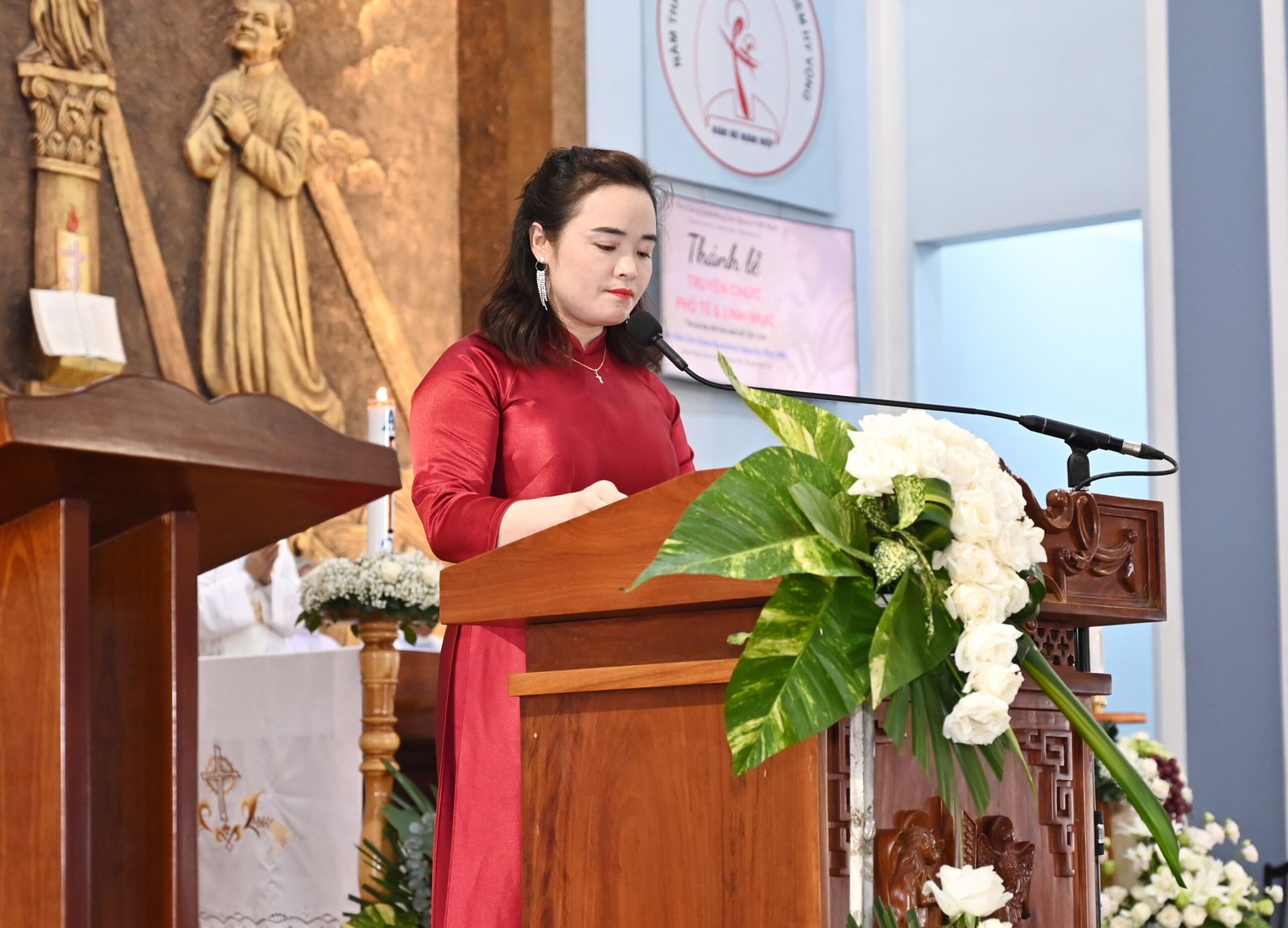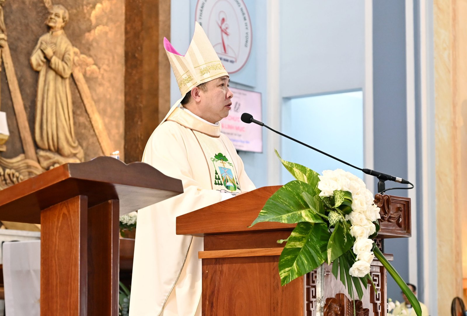 Thánh lễ bắt đầu lúc 8g30. Sau nghi thức rước đoàn đồng tế, Đức Cha Gioan Baotixita đã có lời chào và nhắn nhủ cộng đoàn, đặc biệt là các tiến chức.