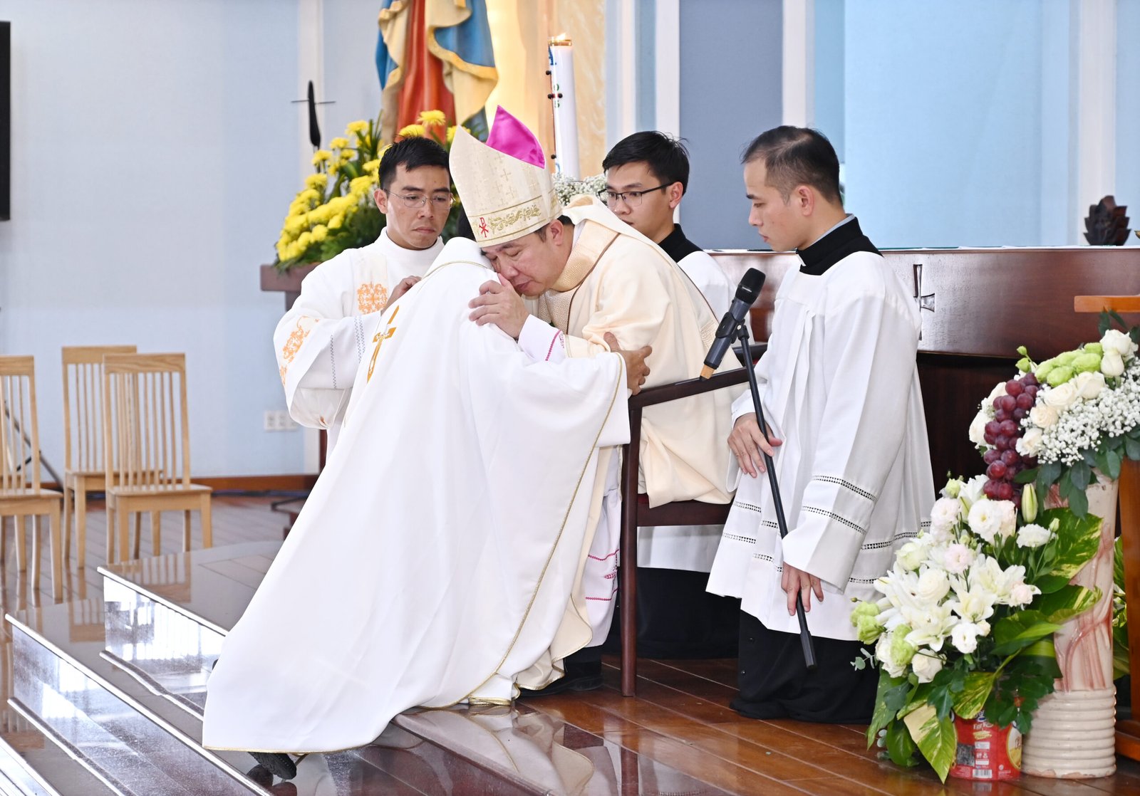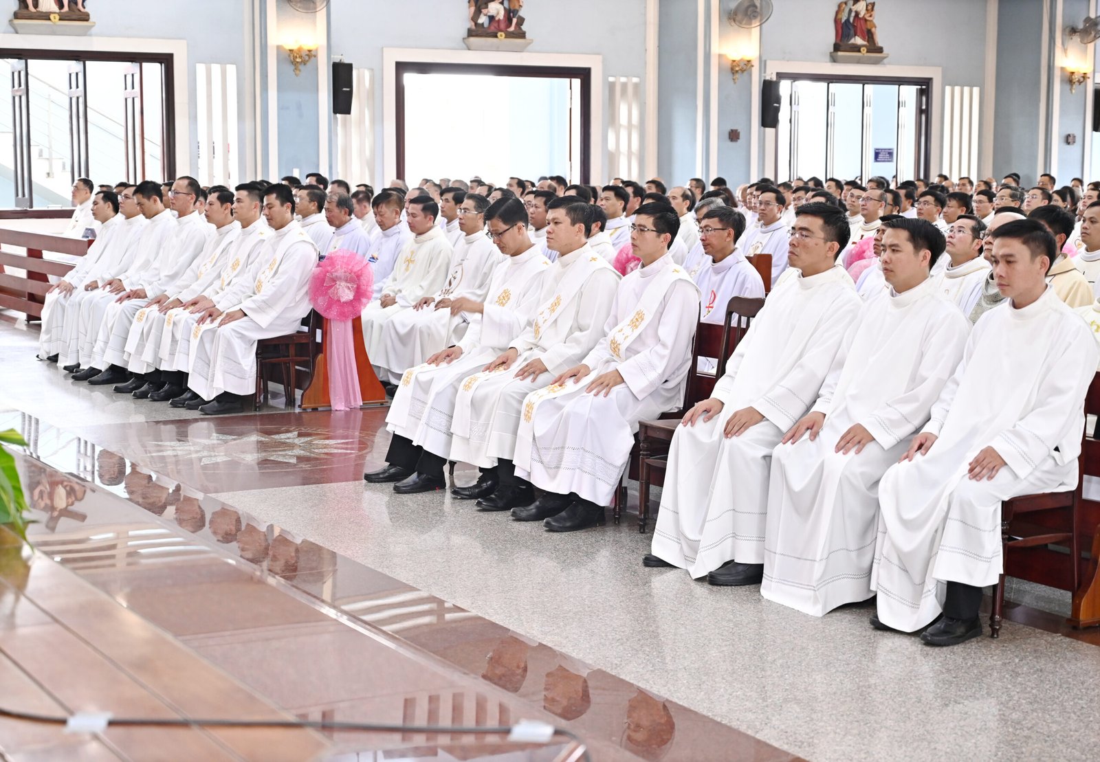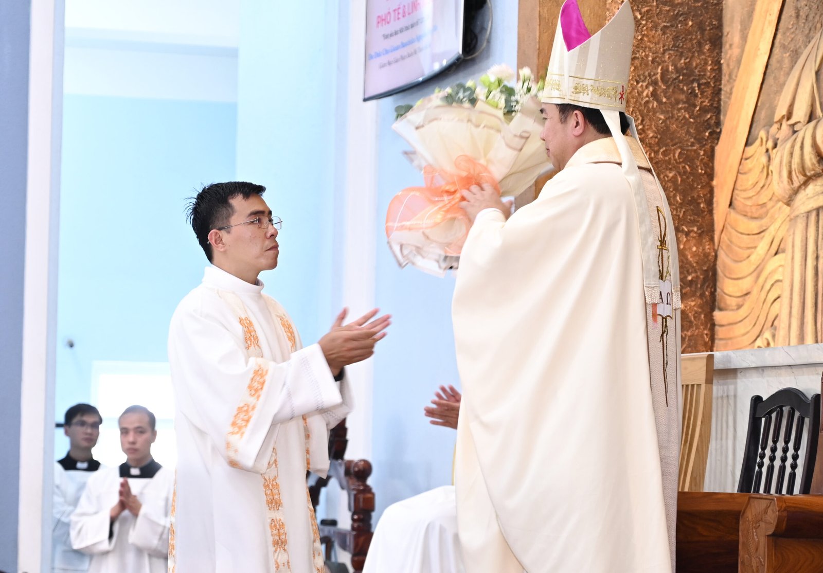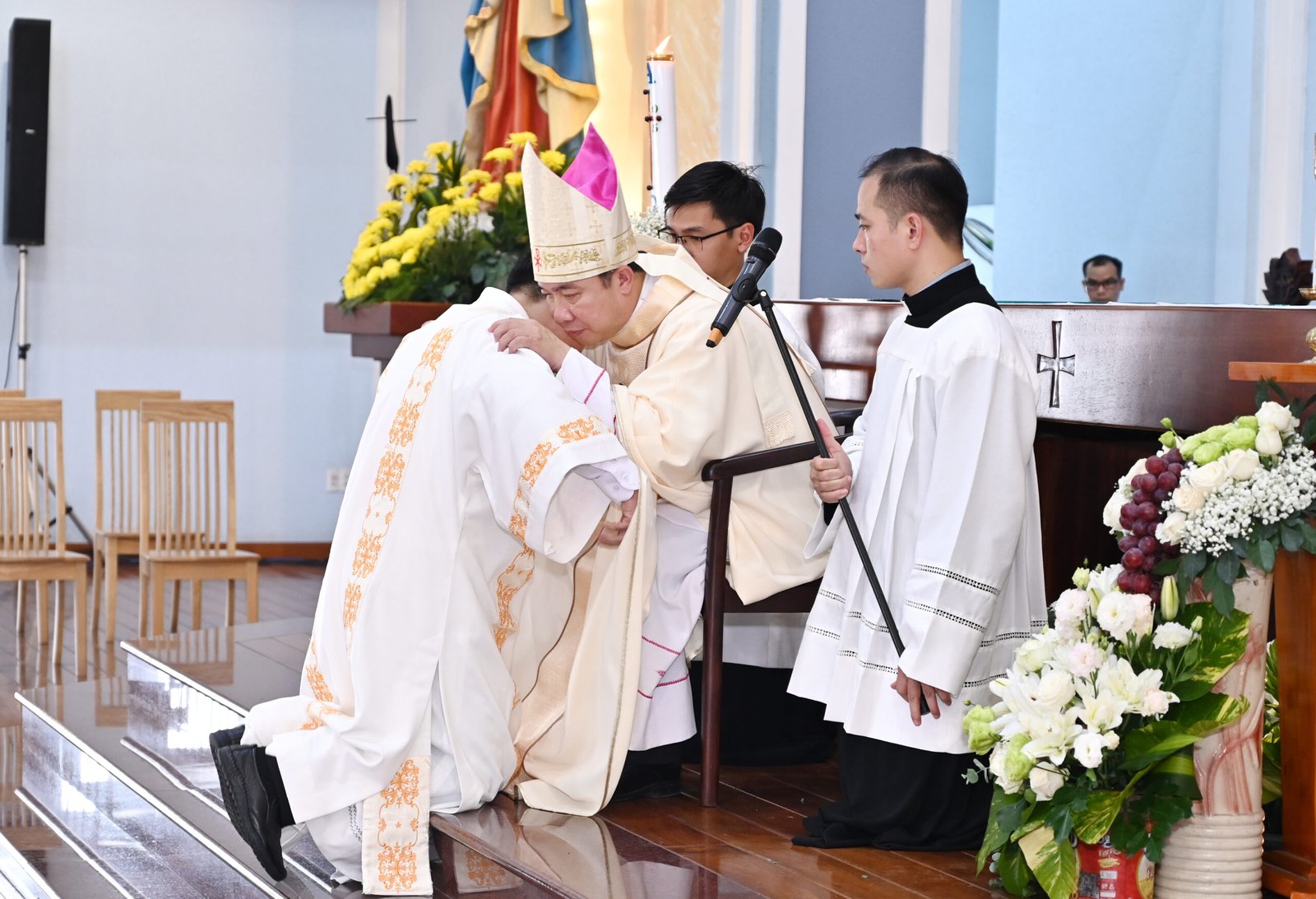 Sau bài giảng, nghi thức phong chức trọng thể được cử hành với việc đặt tay và lời nguyện Truyền chức của Đức Giám mục. Nghi thức diễn ra cách sốt sáng, trang trọng, thể hiện hồng ân tuôn đổ dạt dào trên các tân chức.