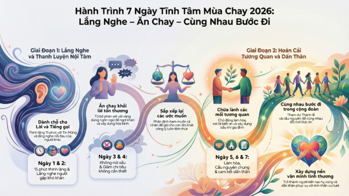 Tĩnh Tâm Mùa Chay 2026 – 7 Ngày Cho Người Trẻ: “Lắng Nghe – Ăn Chay – Cùng Nhau Bước Đi”