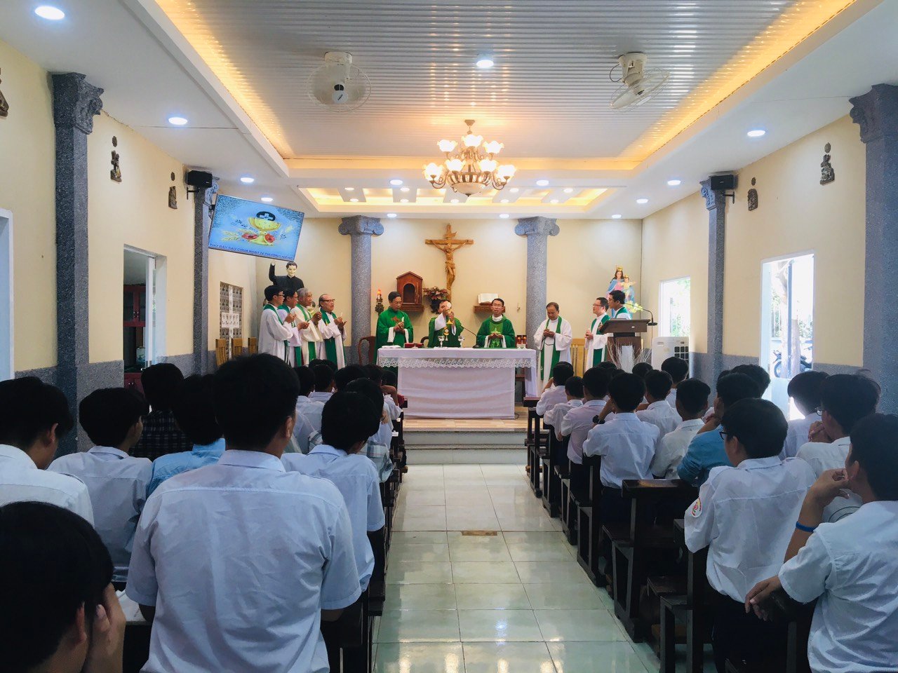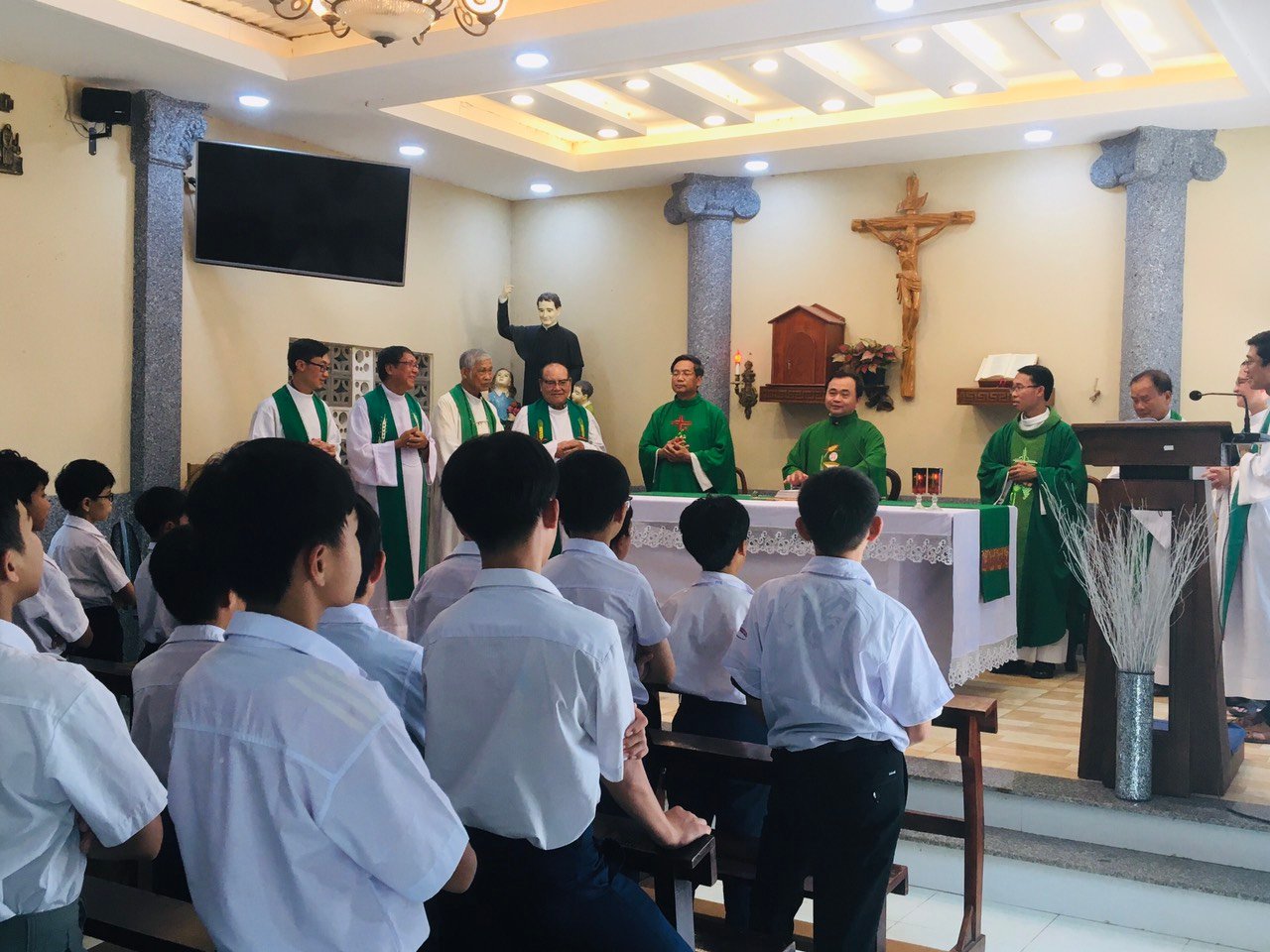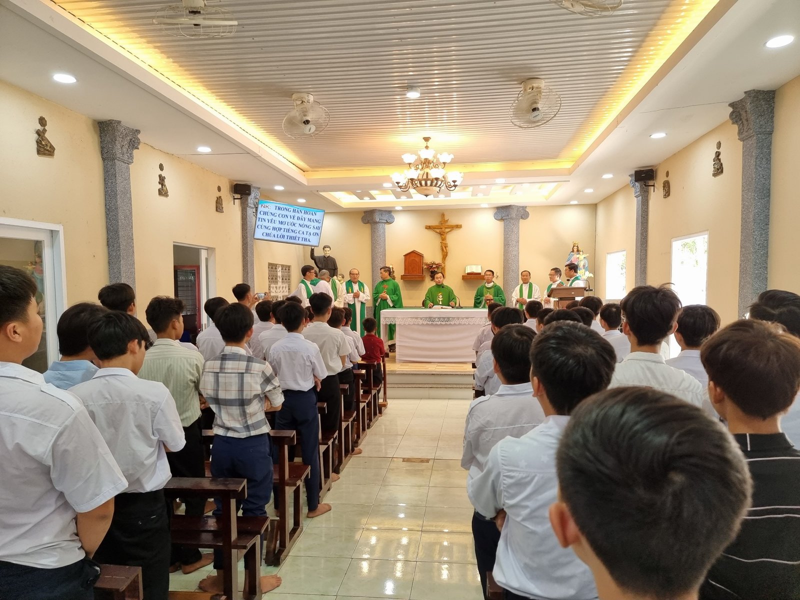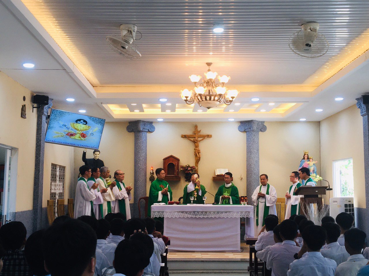 Sau những giờ hồi tâm, duyệt xét tinh thần nghèo khó, là thánh lễ đồng tế của quý cha hai cộng thể cùng với sự tham gia của quý Sư huynh, quý thầy tập vụ và đặc biệt các em nội trú thuộc “Mái Ấm Cần Giờ”. Bầu khí Thánh lễ trở nên linh thiêng và sốt sắng hơn qua bài chia sẻ thật ý nghĩa của cha Giảng lễ, về việc nhận định một người tu sĩ Salêdiêng nghèo khó. Các em cũng tham gia thánh lễ cách tích cực qua việc thưa kinh và ca hát thật hay và to.