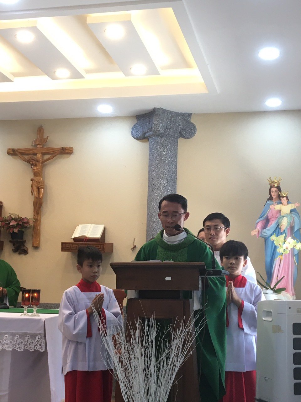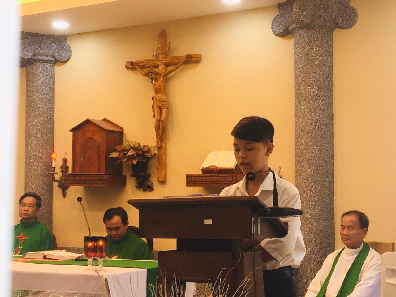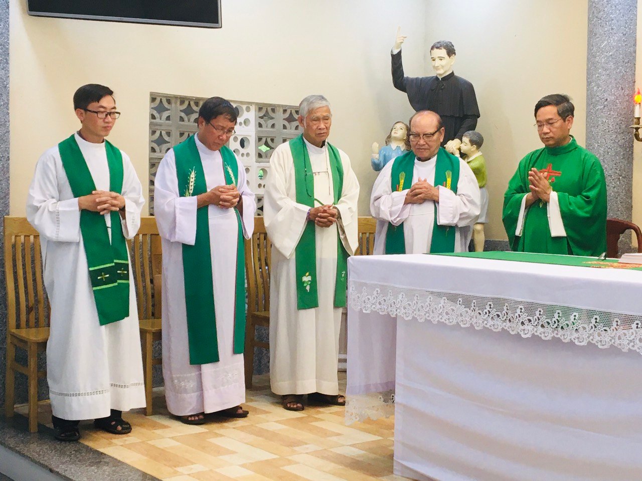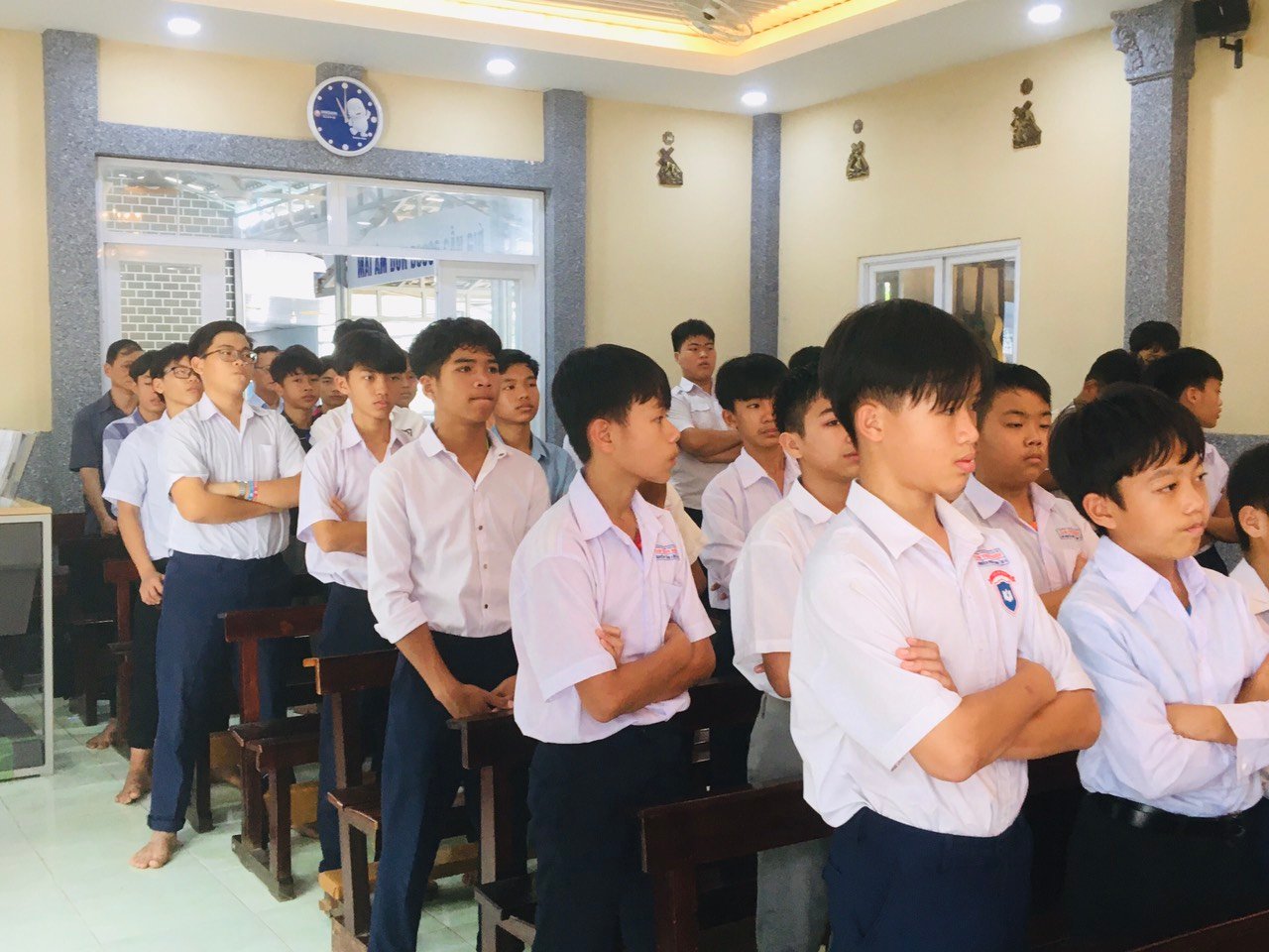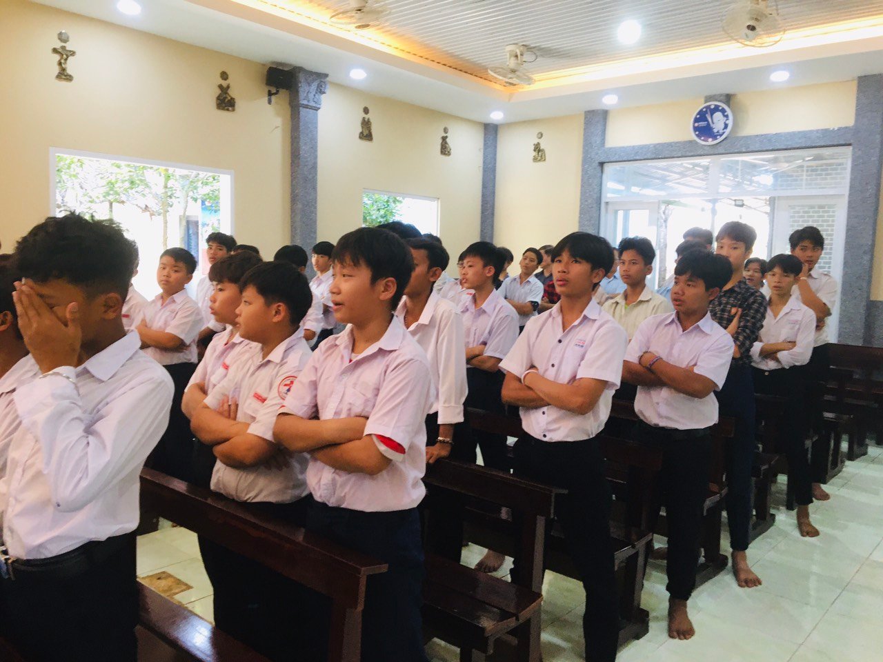 Sau những giờ hồi tâm, duyệt xét tinh thần nghèo khó, là thánh lễ đồng tế của quý cha hai cộng thể cùng với sự tham gia của quý Sư huynh, quý thầy tập vụ và đặc biệt các em nội trú thuộc “Mái Ấm Cần Giờ”. Bầu khí Thánh lễ trở nên linh thiêng và sốt sắng hơn qua bài chia sẻ thật ý nghĩa của cha Giảng lễ, về việc nhận định một người tu sĩ Salêdiêng nghèo khó. Các em cũng tham gia thánh lễ cách tích cực qua việc thưa kinh và ca hát thật hay và to.