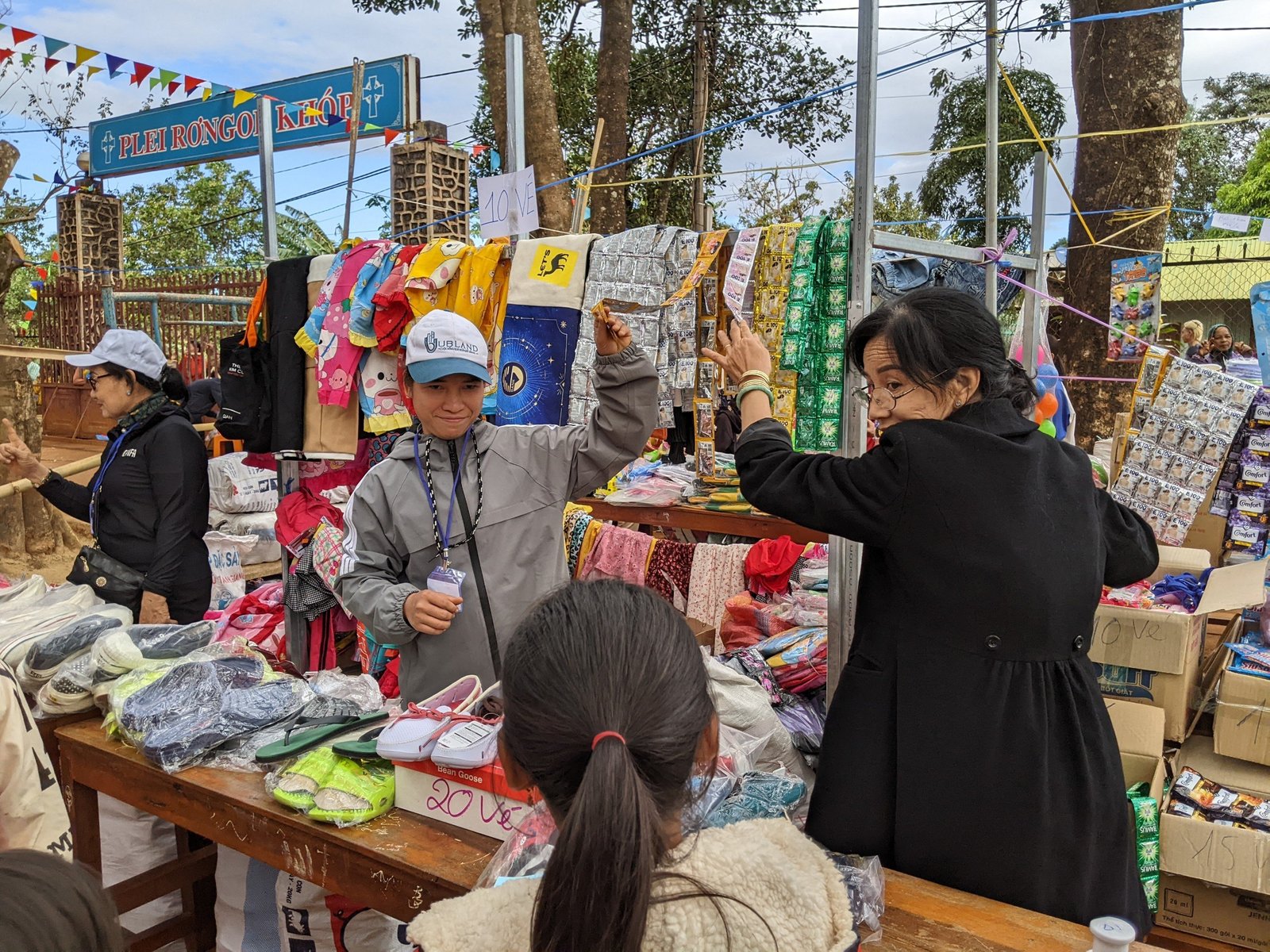 Đỉnh điểm của chuyến tông đồ lần này là buổi Hội Chợ Xuân được tổ chức từ 8h đến 11h30 sáng mùng 4 Tết, được sự cộng tác đắc lực từ cộng thể Plơi Rơgol Khóp: Cha Giám đốc Giuse Nguyễn Đình Phúc, sdb; quý Cha – quý Sư Huynh trong cộng thể và các bạn trẻ của Giáo Xứ đã hỗ trợ nhiệt tình qua các khâu chuẩn bị cho ngày hội chợ được diễn ra một cách tốt đẹp. Với gần 30 gian trò chơi gồm các trò chơi dân gian pha lẫn hiện đại, gian hàng ẩm thực với thực đơn trên 6 món, gian hàng siêu thị (gian hàng được mọi người mong chờ) với các mặt hàng như: giày dép, quần áo, văn phòng phẩm, trò chơi đủ các loại…đã được chuẩn bị để phục vụ. Bầu khí vui tươi, nhộn nhịp trật tự và sự cộng tác của các bạn Giáo lý viên trong giáo xứ cùng với đoàn đã góp phần làm nên buổi hội chợ kết thúc tốt đẹp.