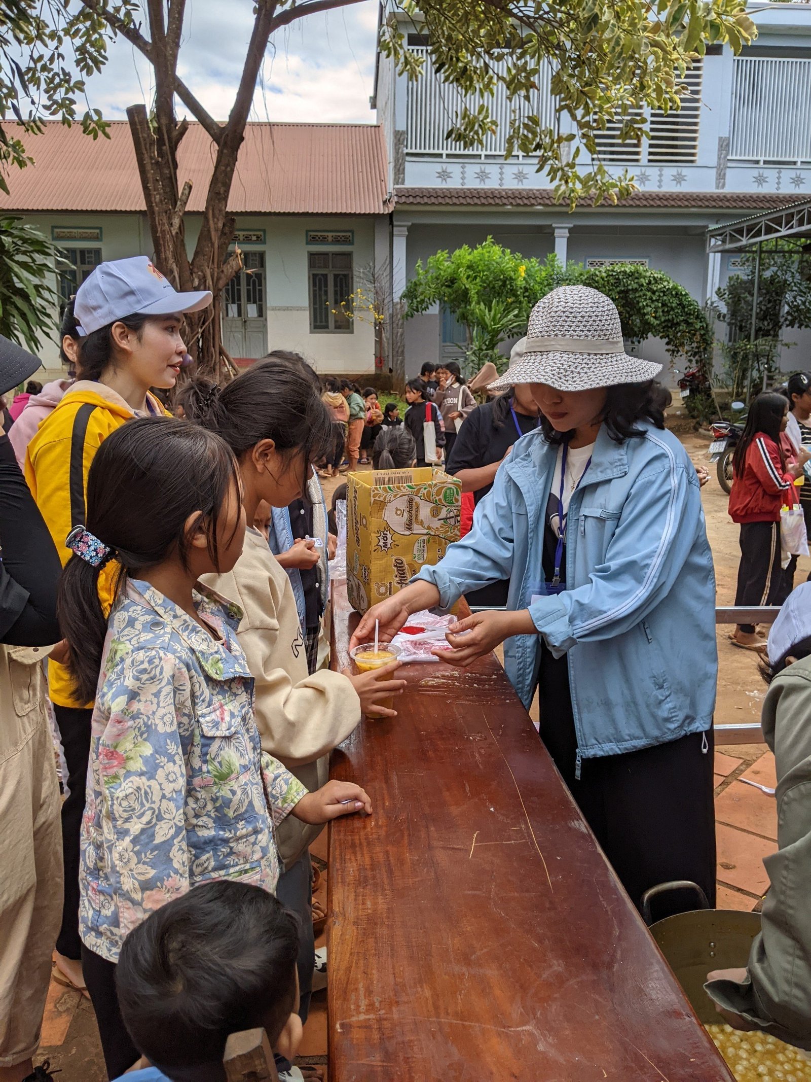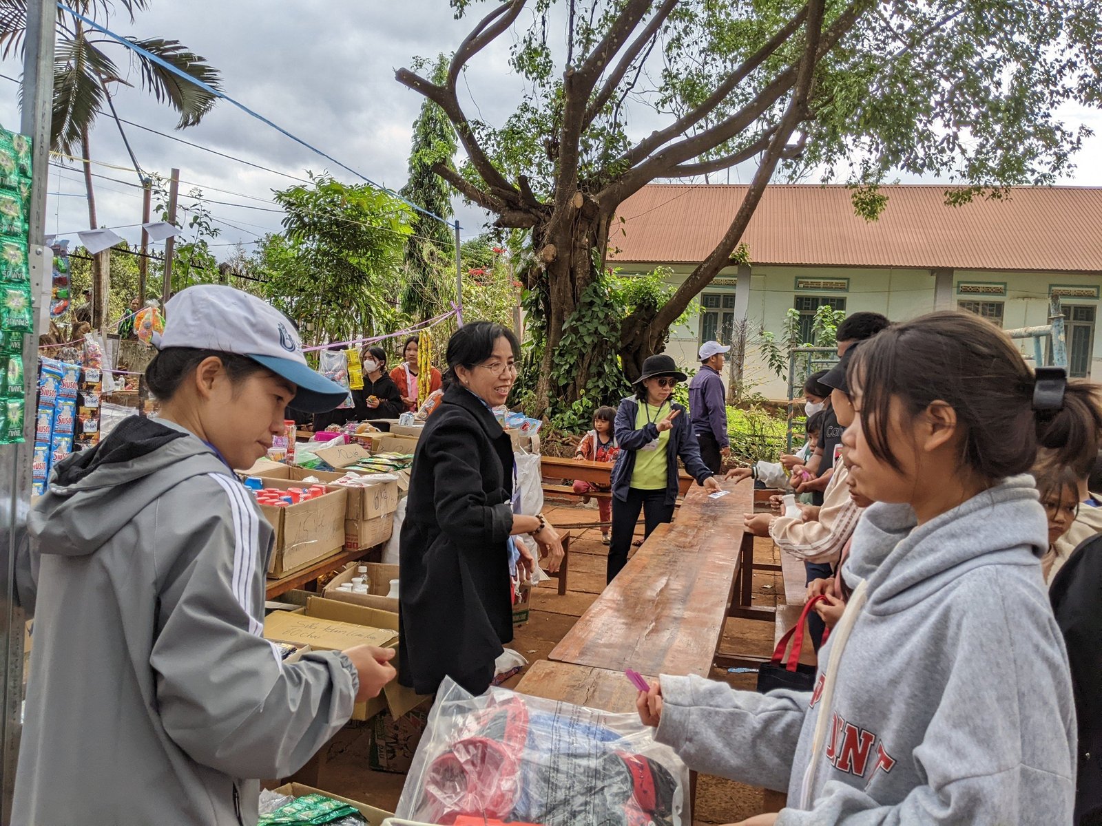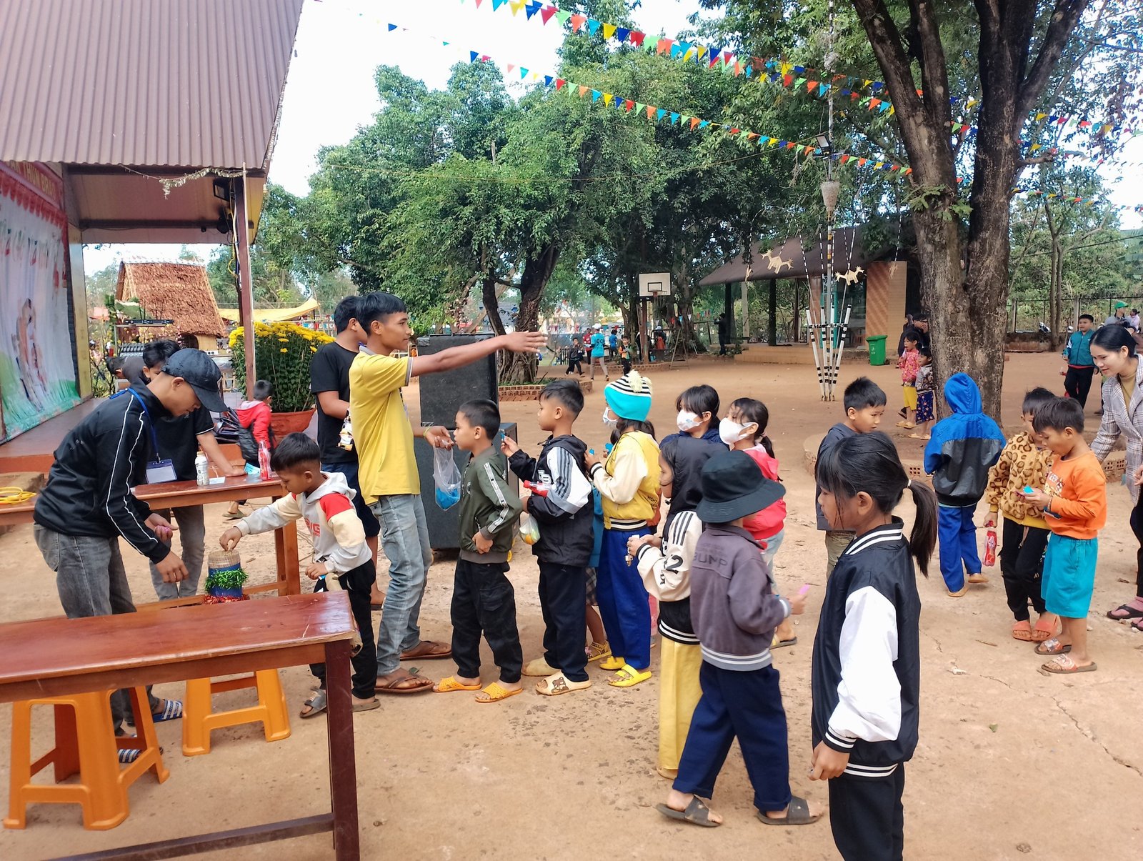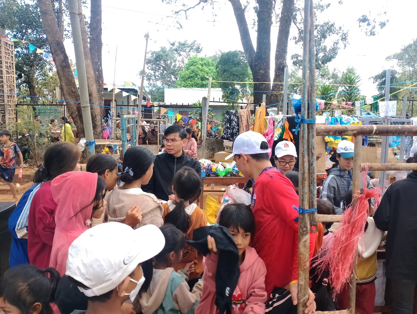 Sau gần 10 tiếng, đoàn đã có mặt và kịp giờ tham dự Thánh lễ sáng mang đậm chất văn hóa bản địa với anh chị em đồng bào địa phương. Khoảng 7h sáng ngày mùng 3 Tết, sau bữa sáng nhẹ, mọi người cùng nhau chuẩn bị các gian trò chơi, khu ẩm thực, khu siêu thị cùng với các bạn trẻ trong giáo xứ. Đầu giờ chiều, mọi người cùng nhau đi thăm hỏi, chúc tết và tặng một ít phần quà cho các gia đình có hoàn cảnh đặc biệt khó khăn. Những phần quà thiết thực như: chăn, mền, áo, gạo, nhu yếu phẩm… được gửi trao và những lời cầu chúc cho các gia đìn có thêm chút niềm vui trong những ngày xuân.