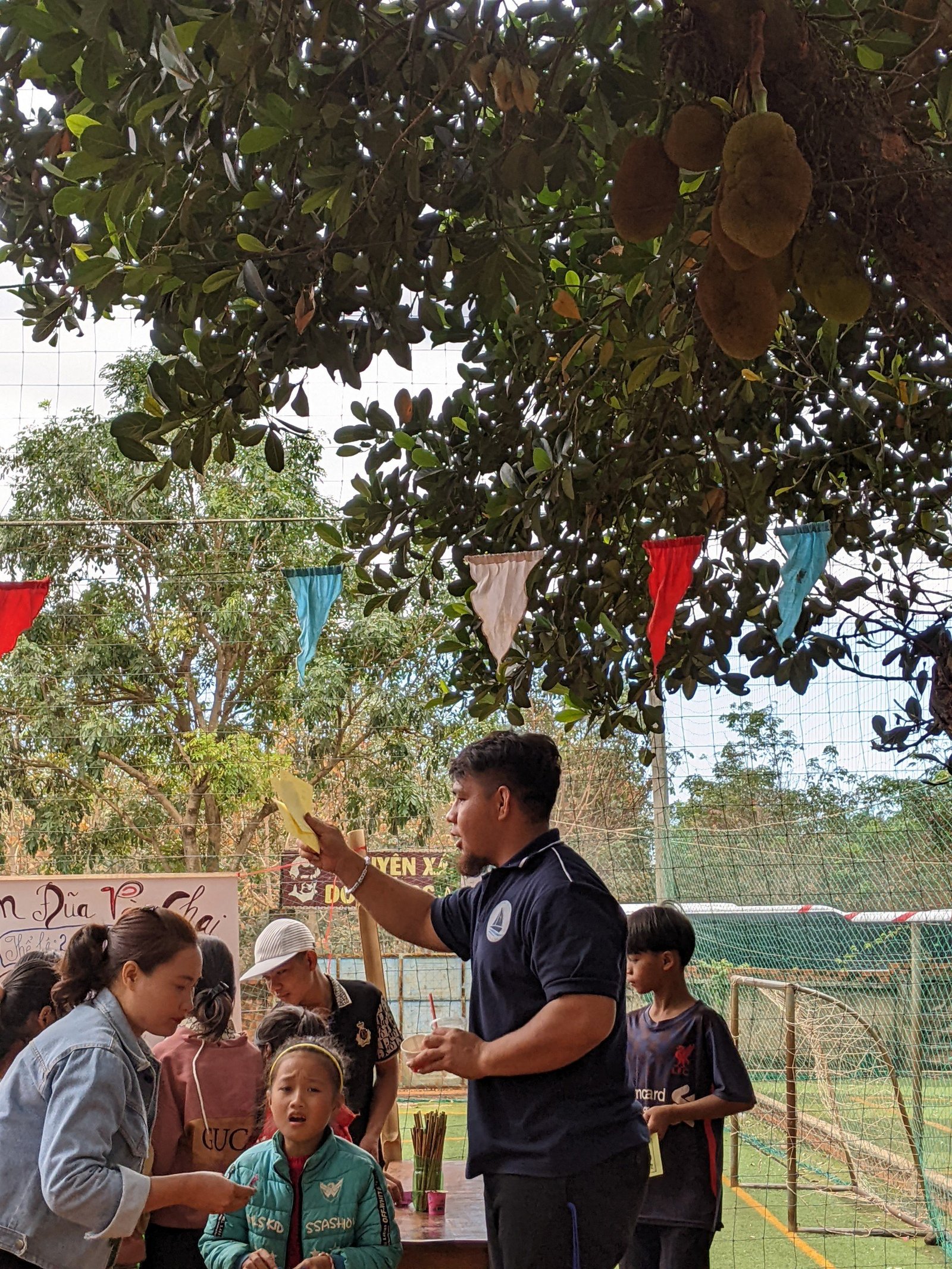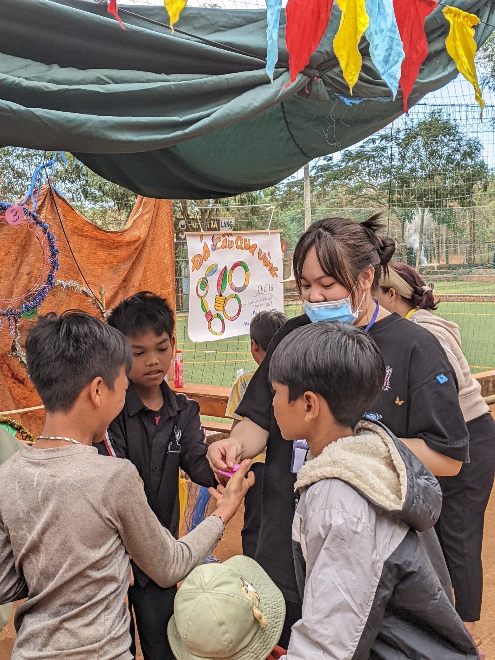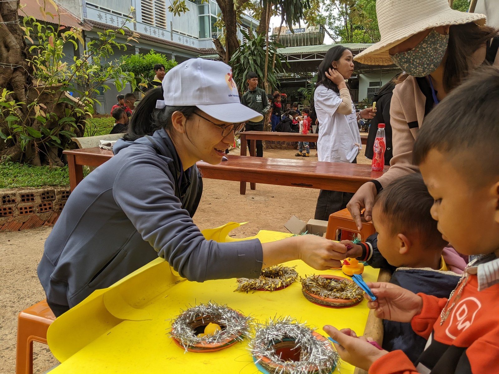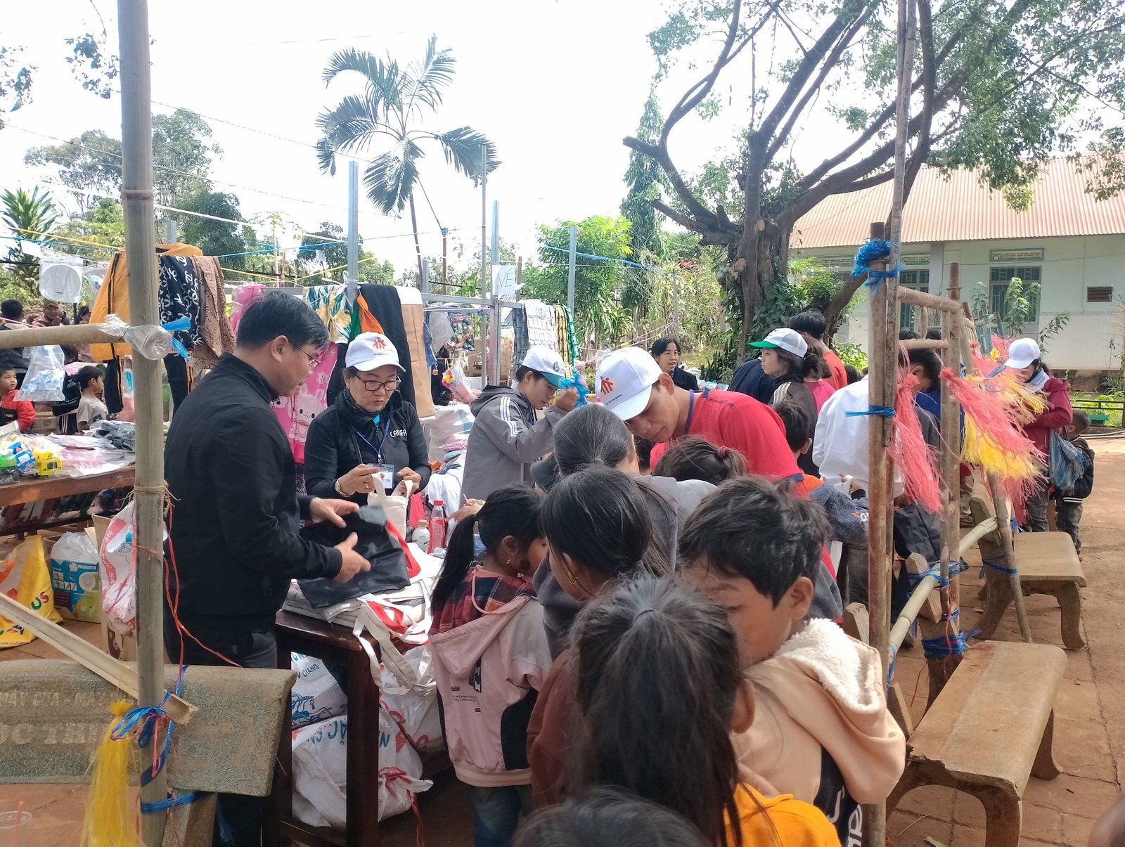 Sau gần 10 tiếng, đoàn đã có mặt và kịp giờ tham dự Thánh lễ sáng mang đậm chất văn hóa bản địa với anh chị em đồng bào địa phương. Khoảng 7h sáng ngày mùng 3 Tết, sau bữa sáng nhẹ, mọi người cùng nhau chuẩn bị các gian trò chơi, khu ẩm thực, khu siêu thị cùng với các bạn trẻ trong giáo xứ. Đầu giờ chiều, mọi người cùng nhau đi thăm hỏi, chúc tết và tặng một ít phần quà cho các gia đình có hoàn cảnh đặc biệt khó khăn. Những phần quà thiết thực như: chăn, mền, áo, gạo, nhu yếu phẩm… được gửi trao và những lời cầu chúc cho các gia đìn có thêm chút niềm vui trong những ngày xuân.