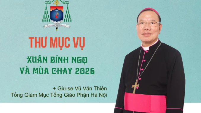 WTGPHN (01/02/2026) – Ngày 01/02/2026, Đức Tổng Giám mục Giuse Vũ Văn Thiên của Tổng Giáo phận Hà Nội có thư mục vụ gửi cộng đoàn Dân Chúa nhân dịp mừng xuân Bính Ngọ và mùa Chay 2026. Sau đây là nguyên văn Thư mục vụ của Đức Tổng Giám mục Giuse.