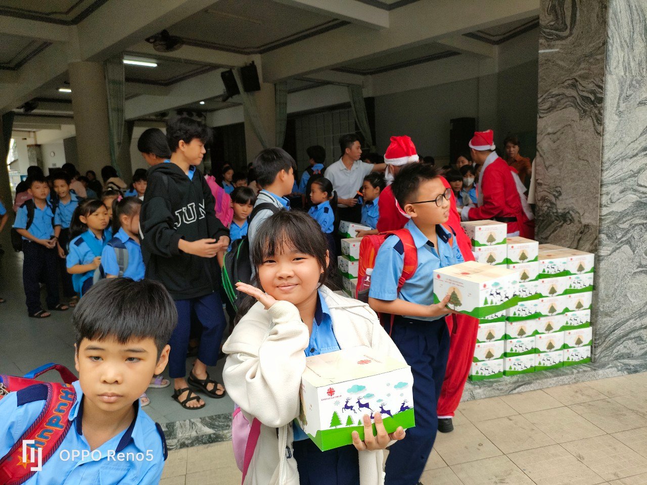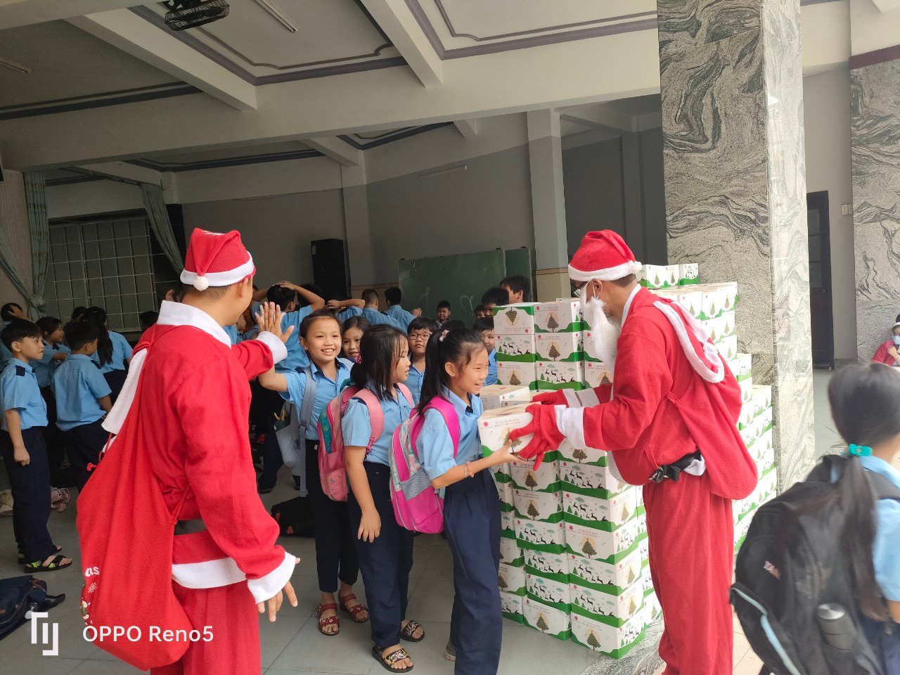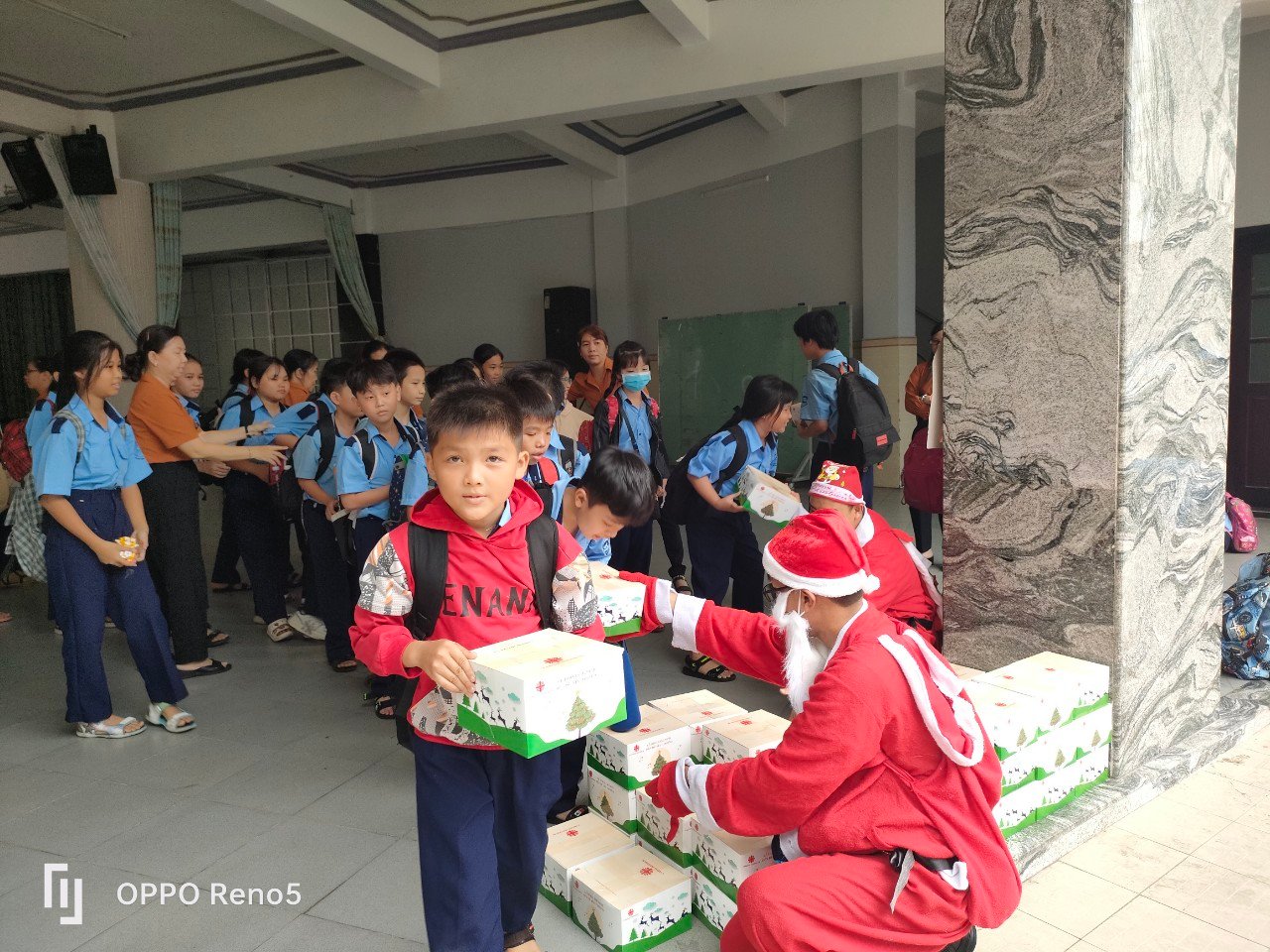 Những nụ cười xuất hiện trên gương mặt thơ ngây đáng yêu của các em khi được ông già Noel, các Thầy và các Cô trao quà. Những lời cám ơn, những ánh nhìn đầy phấn khích của các em khi nhận quà từ tay của ông già Noel, đem đến một bầu khí thân thương và giàu ý nghĩa trong những ngày chuẩn bị mừng lễ Giáng Sinh.