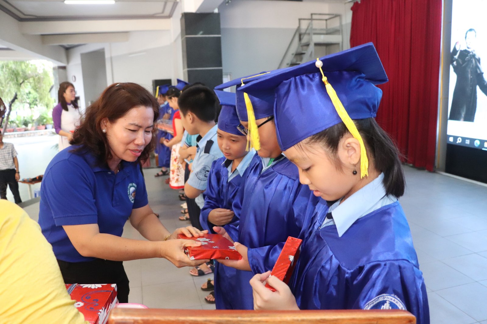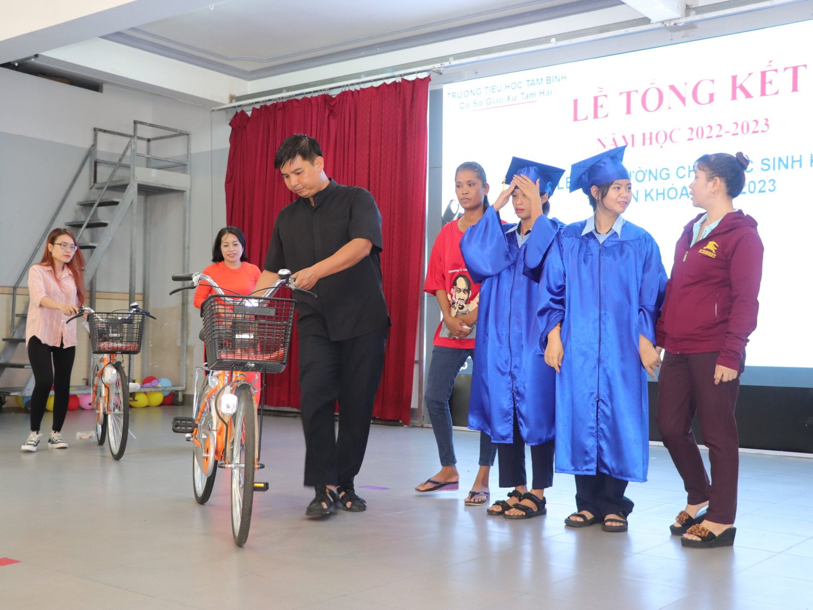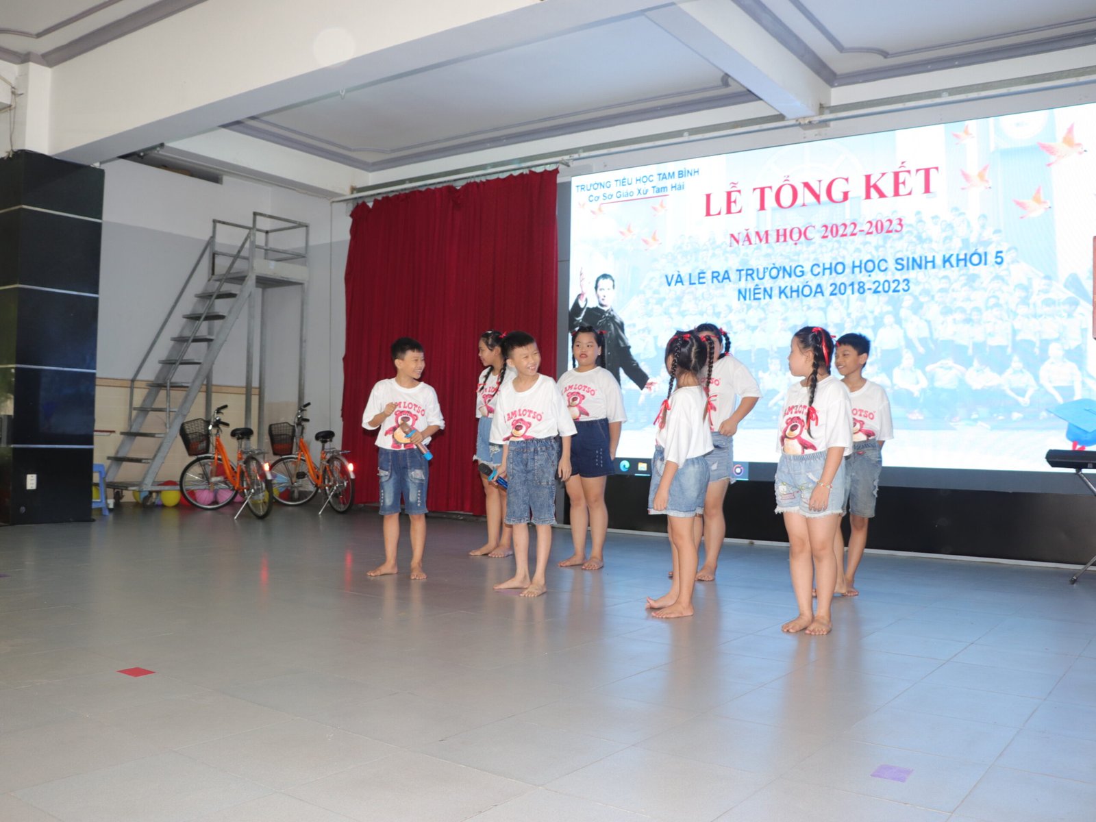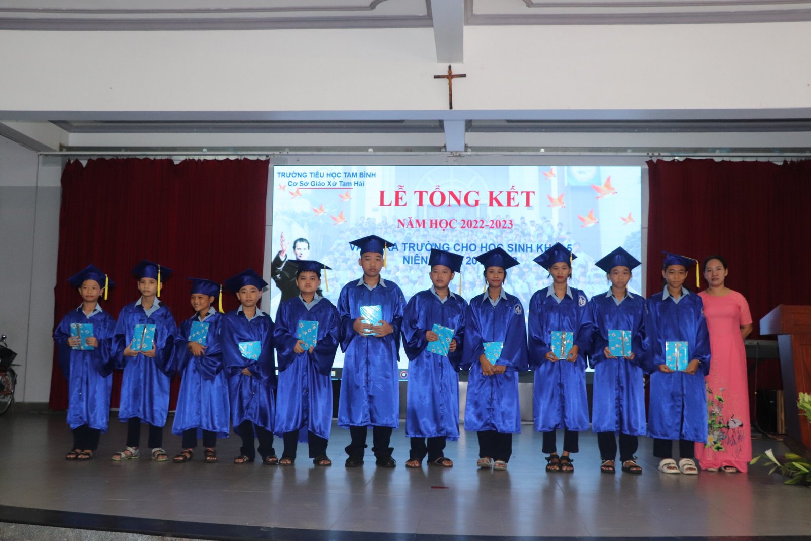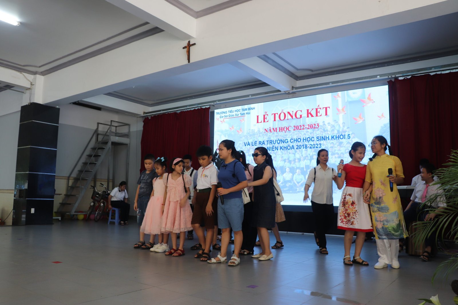 Phần tiếp theo của buổi lễ tổng kết là phần trao thưởng kết thúc năm học dành cho các em có thành tích học tập tốt. Ban Caritas Tam Hải cũng có những phần quà thiết thực và ý nghĩa dành tặng các em có hoàn cảnh đặc biệt. Những phần quà tuy không lớn nhưng nó đã khích lệ được tinh thần học tập của các em, để các em mỗi ngày cố gắng hơn trong học tập. Xen lẫn lễ phát thưởng là phần biểu diễn văn nghệ của các em. Những tiếc mục văn nghệ được các em tập dợt và chuẩn bị rất chu đáo. Các em đã gởi đến mọi người có mặt trong hội trường hôm nay những tiếc mục biểu diễn đầy cảm xúc. Những giọt nước mắt đã lăn trên má của các em cũng như mọi người tham dự trong ngày hôm nay. Những giọt nước mắt hạnh phúc của thầy và trò trong ngày tổng kết và chia tay khối lớp 5 thật ý nghĩa.