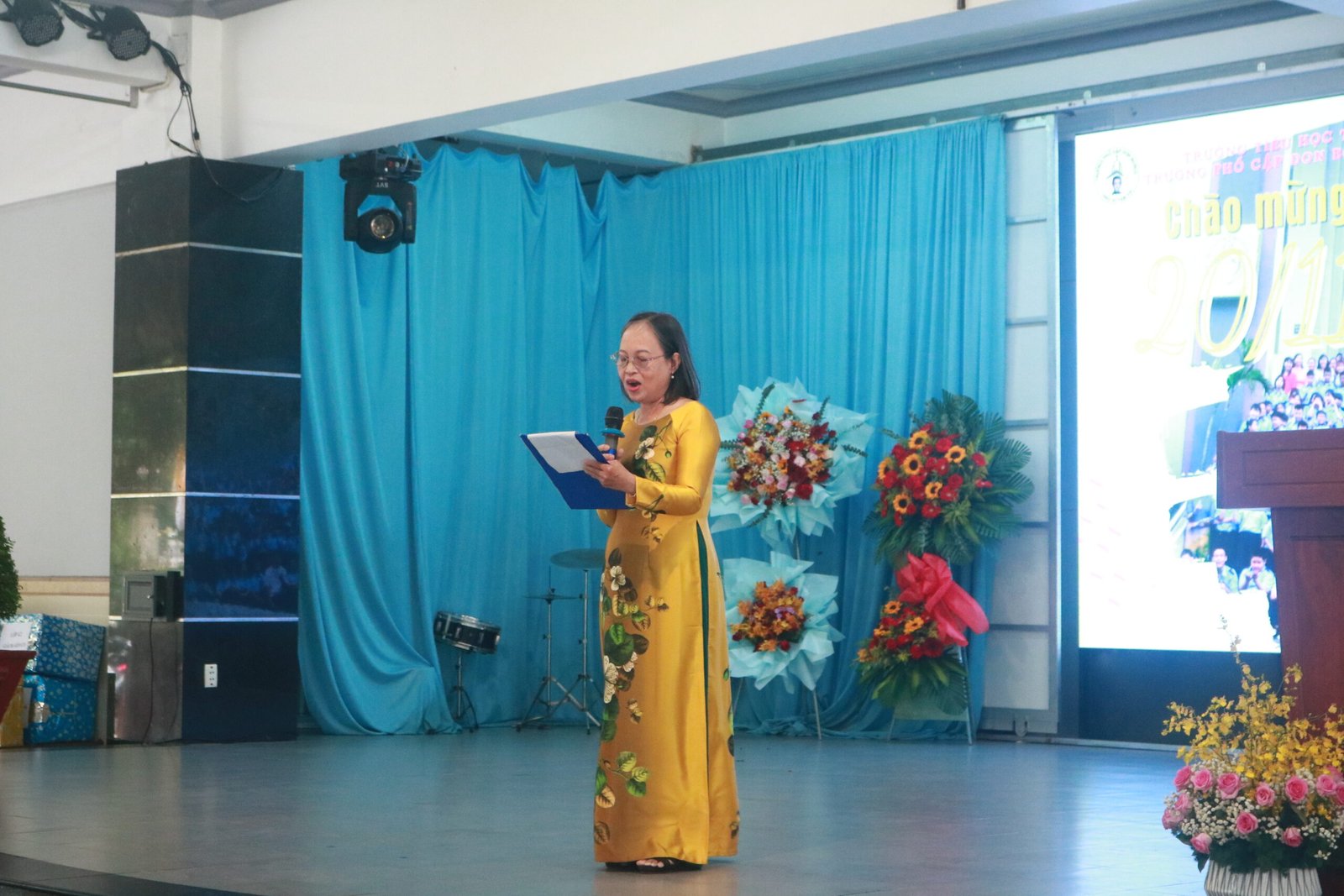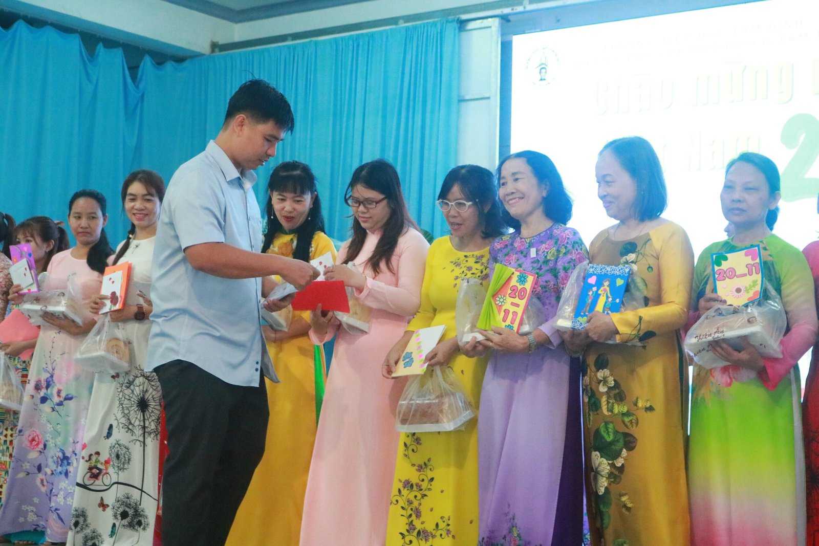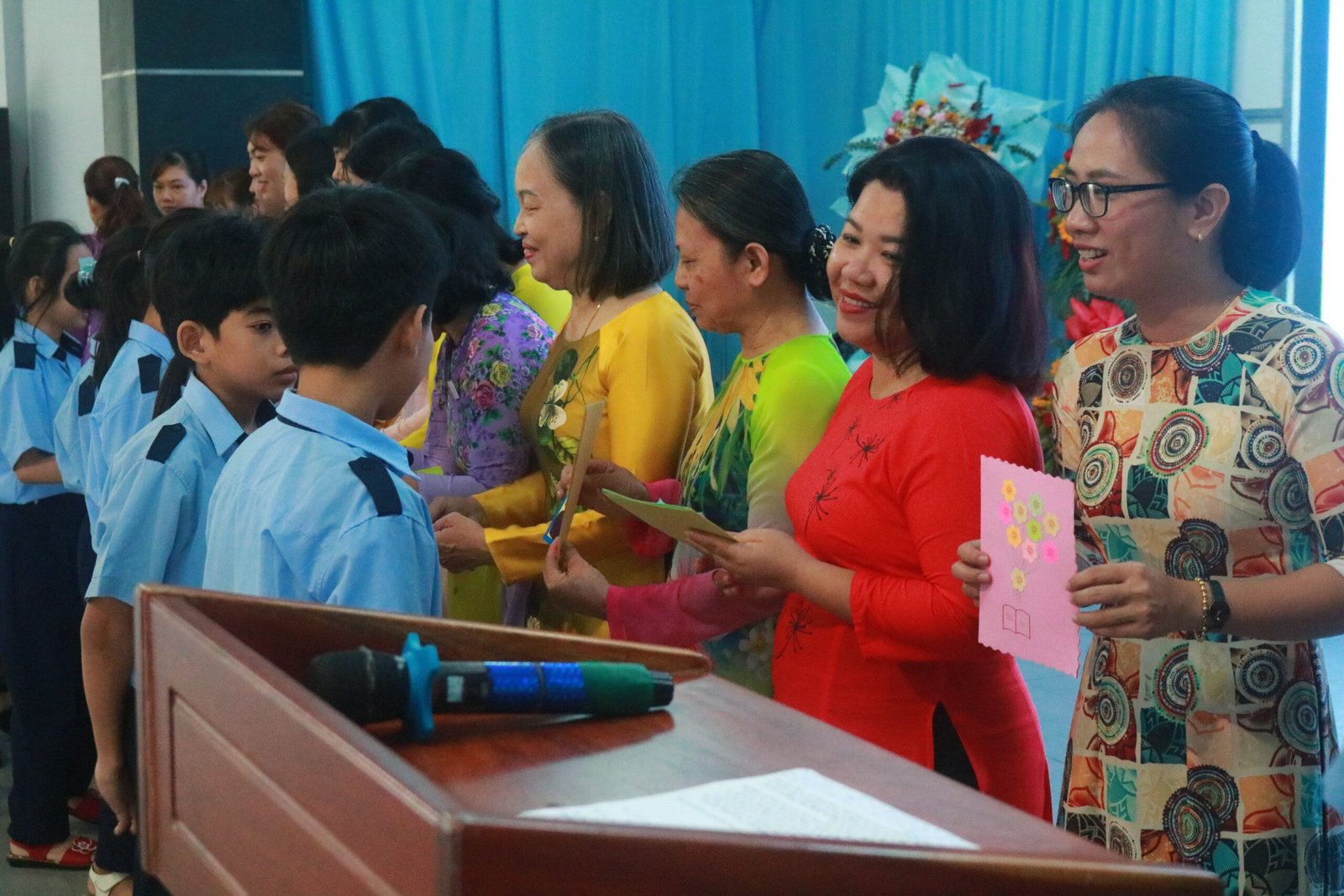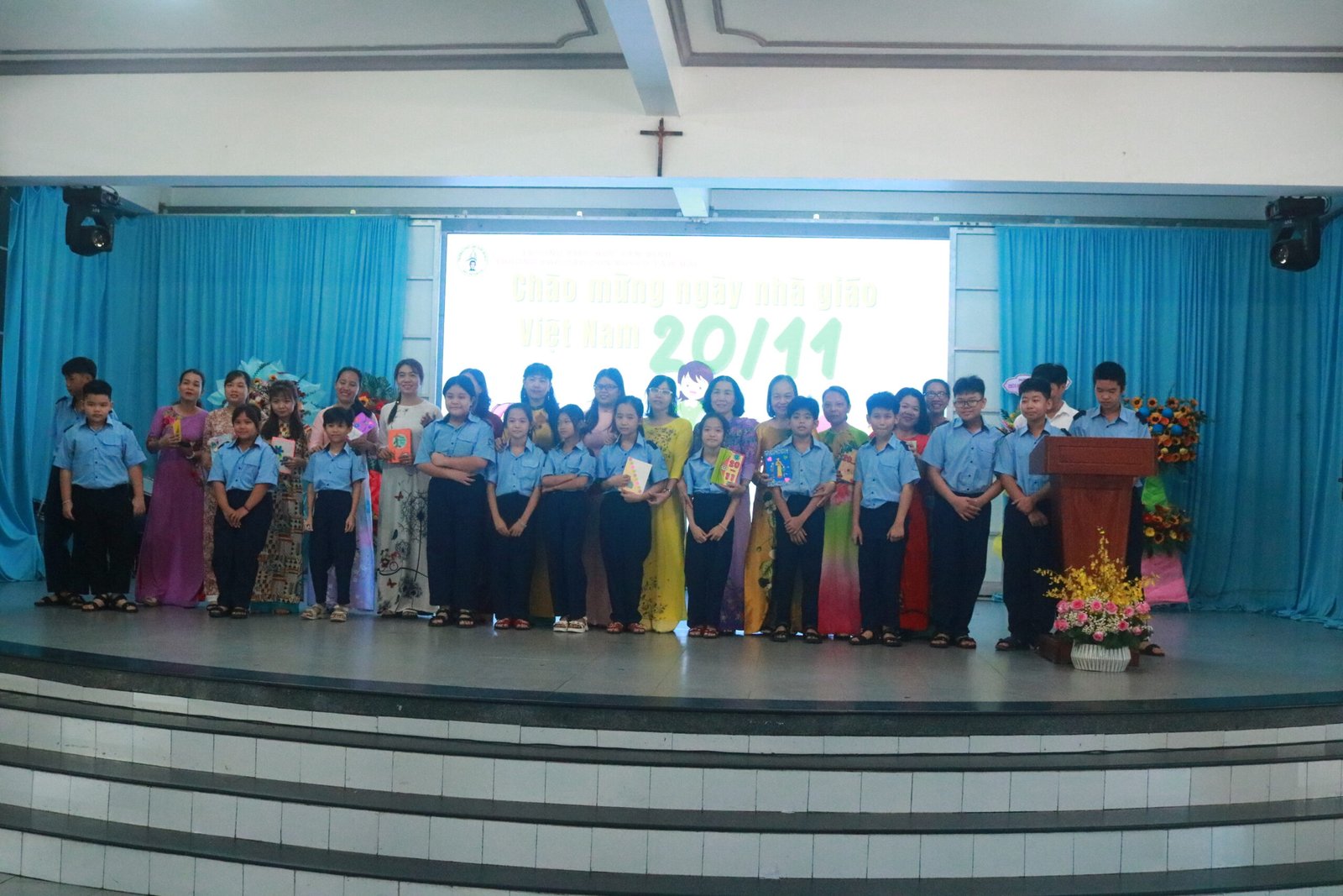 Buổi lễ được tiếp tục với các tiết mục văn nghệ do quý cô và các em học sinh biểu diễn. Các em lại càng vui hơn khi nhận được các phần quà từ phần thi đá banh, bóng ném, vẽ tranh, tô màu, viết chữ đẹp, vở sạch chữ đẹp, kéo co, nhảy bao bố được nhà trường tổ chức trước đó nhằm tri ân ngày nhà giáo.