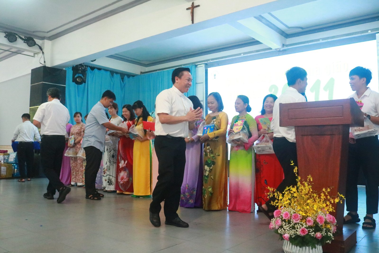 Cuối cùng là phần gặp gỡ chia sẻ của Cha đặc trách Phêrô Vũ Đặng Hoàng Oanh với hơn 60 bạn cựu học sinh. Cha rất vui khi biết được trong số các bạn trở về, còn nhiều bạn đang theo học cấp 2,3, cao đẳng, đại học. Cha mong ước ngày 20/11 hàng năm sẽ là ngày truyền thống của trường. Mỗi năm hy vọng số lượng cựu học sinh về thăm trường sẽ đông hơn và đó sẽ là động lực để quý cha và nhà trường sẽ làm phong phú hơn ngày truyền thống này.