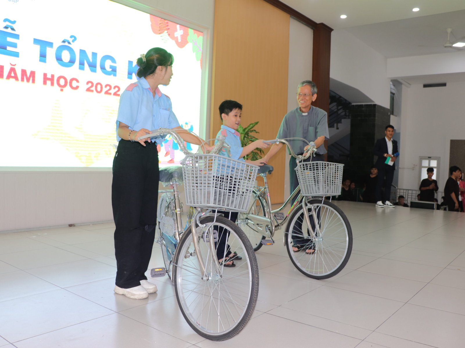 Phần tiếp theo của buổi lễ tổng kết là phần trao thưởng kết thúc năm học dành cho các em có thành tích học tập tốt. Ban Caritas cũng có những phần quà nho nhỏ khích lệ tất cả các em. Những phần quà tuy không lớn nhưng nó đã khích lệ được tinh thần học tập của các em, để các em mỗi ngày cố gắng hơn trong học tập. Xen lẫn của lễ phát thưởng là phần biểu diễn văn nghệ của các em. Những tiếc mục văn nghệ được các em tập dợt và chuẩn bị rất chu đáo. Các em đã gởi đến mọi người có mặt trong hội trường hôm nay những tiếc mục biểu diễn đầy ý nghĩa và cảm xúc.