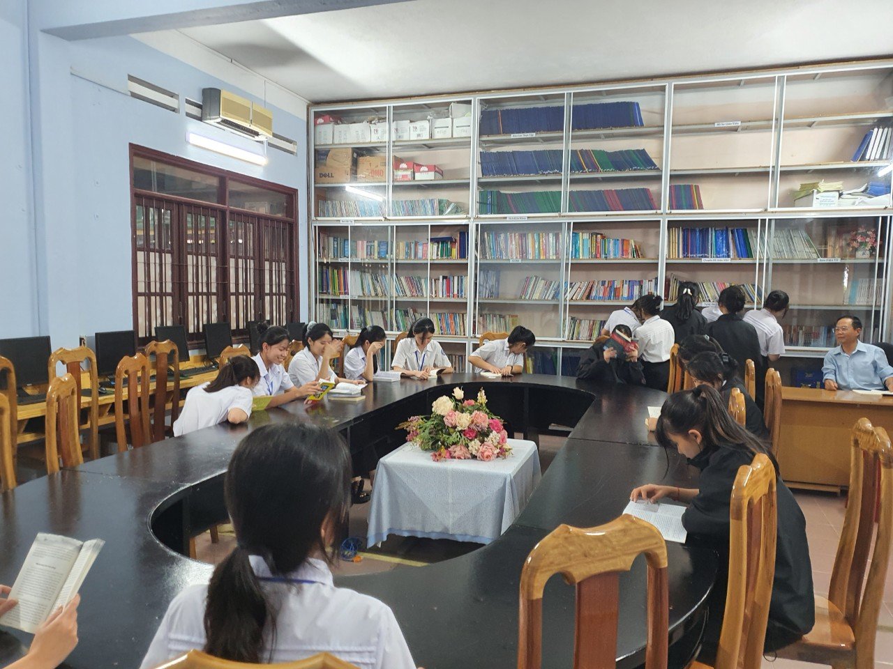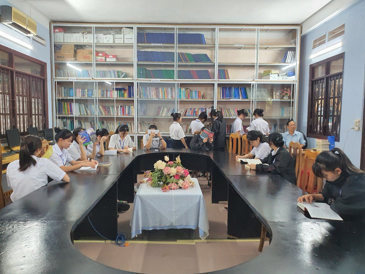 Vào các ngày trong tuần, từ 7 giờ sáng cho đến 18 giờ tối, thư viện trường luôn mở của để chào đón các bạn học sinh. Ở đây, các bạn sẽ được tự do chọn lựa những loại sách mà mình yêu thích. Hiện tại, ngoài các đầu sách chuyên môn về các ngành nghề, sách tham khảo, sách kỹ năng…thì tủ sách nghệ thuật sống vẫn được yêu thích hơn cả. Mỗi ngày, vị quản thư đều giới thiệu về một cuốn sách hay và khen thưởng nếu bạn nào đọc nó.