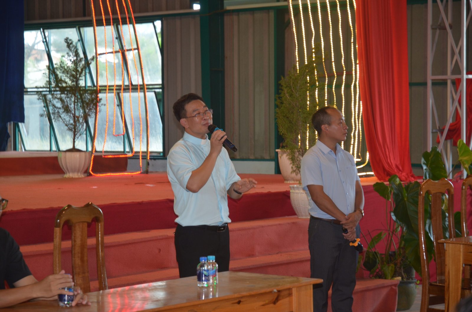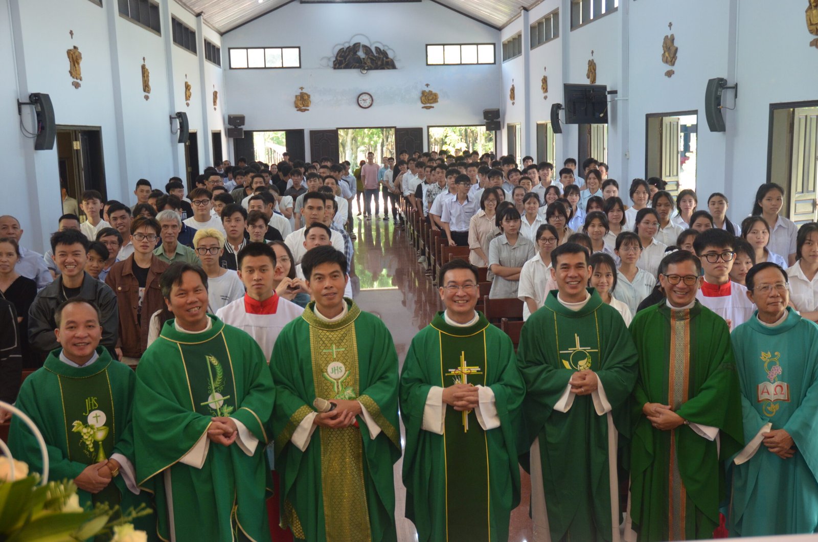 Sáng Chúa Nhật, trước Thánh lễ, Cha Giám đốc Martino Đinh Nghĩa Sỹ đại diện cộng đoàn hân hoan chào đón hai Tân Linh mục và các bạn cựu học sinh. Trong Thánh lễ có phần giảng lễ của Cha Giuse Phạm Quang Minh, ngài nhắc đi nhắc lại về hạt giống thì đã được gieo trong lòng các bạn học sinh và giờ đây chỉ chờ đợi ngày sinh hoa kết quả. Sau Thánh lễ, vị địa diện cựu học sinh có đôi lời cám ơn, tri ân và chúc mừng đến quý Cha, thầy và cộng đoàn.