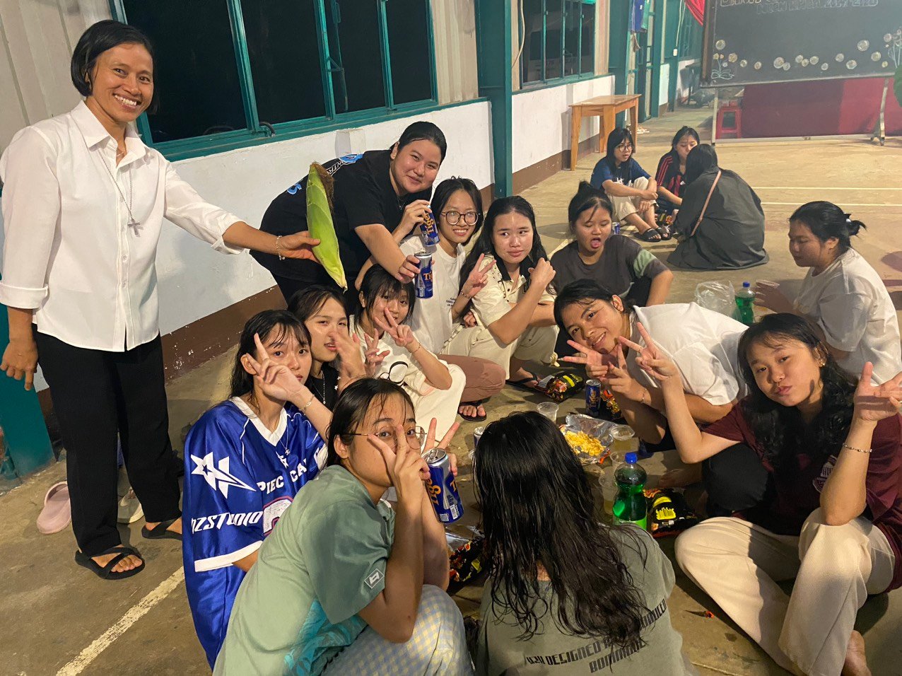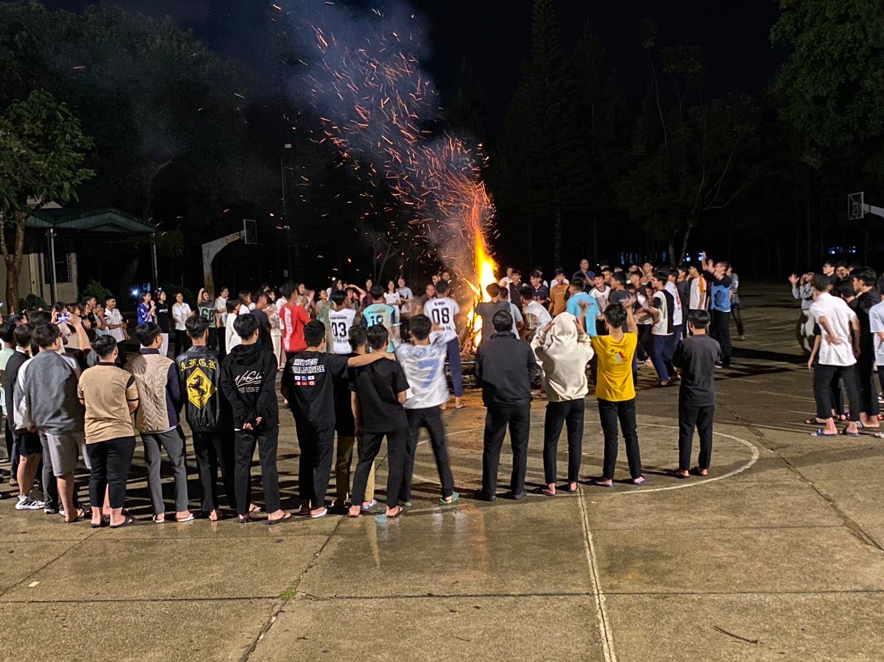 Chiều ngày thứ Bảy là trận giao lưu bóng đá giữa các bạn khóa 14 và các bạn cựu học sinh. Trận giao lưu diễn ra hết sức kịch tính và cũng đầy niềm vui khi tỷ số 6 – 2 nghiêng về các bạn khóa 14. Cùng ngày vào lúc 20h tất cả mọi người cùng chia sẻ niềm vui với nhau quanh lửa trại với những trò chơi và các vũ điệu thật sinh động làm cho ngày họp mặt thêm phấn khởi vui tươi mặc dù ngoài trời có những cơn mưa nặng hạt.