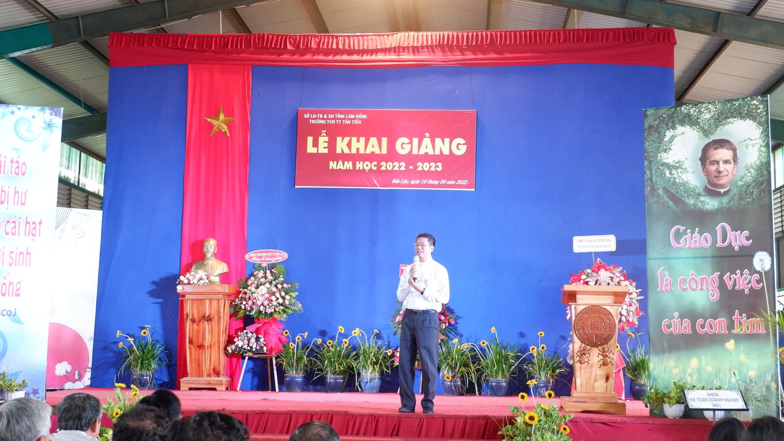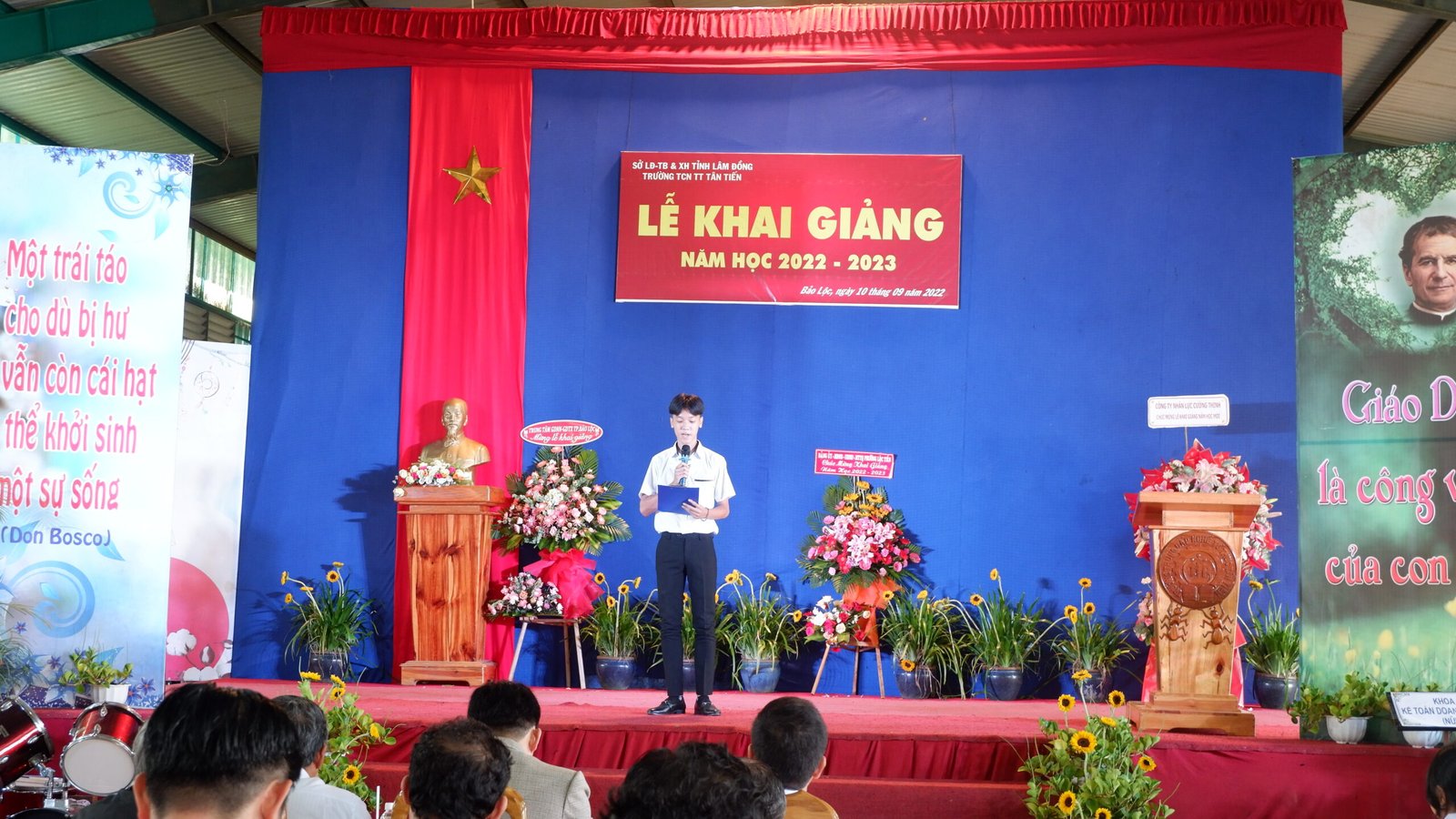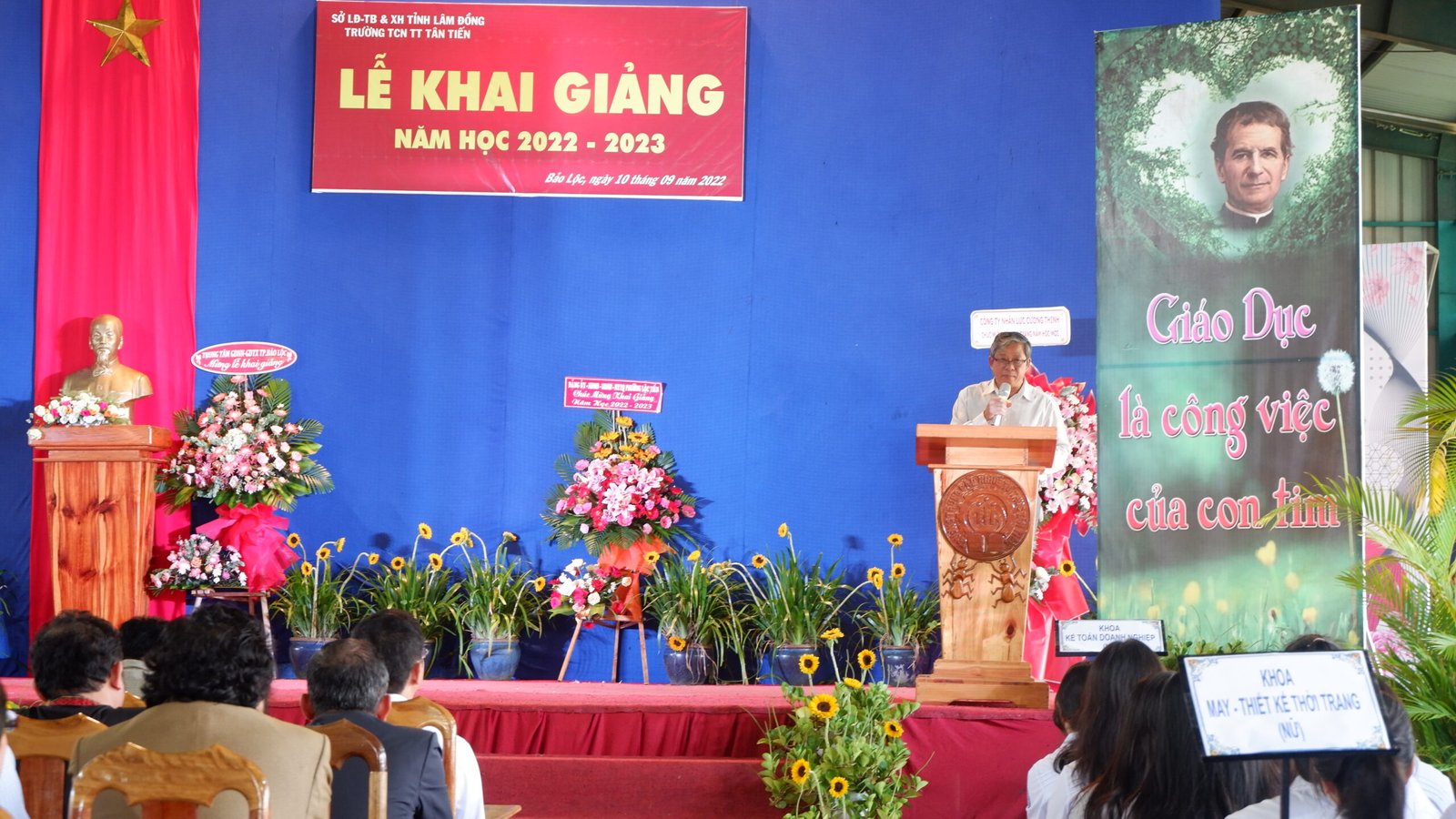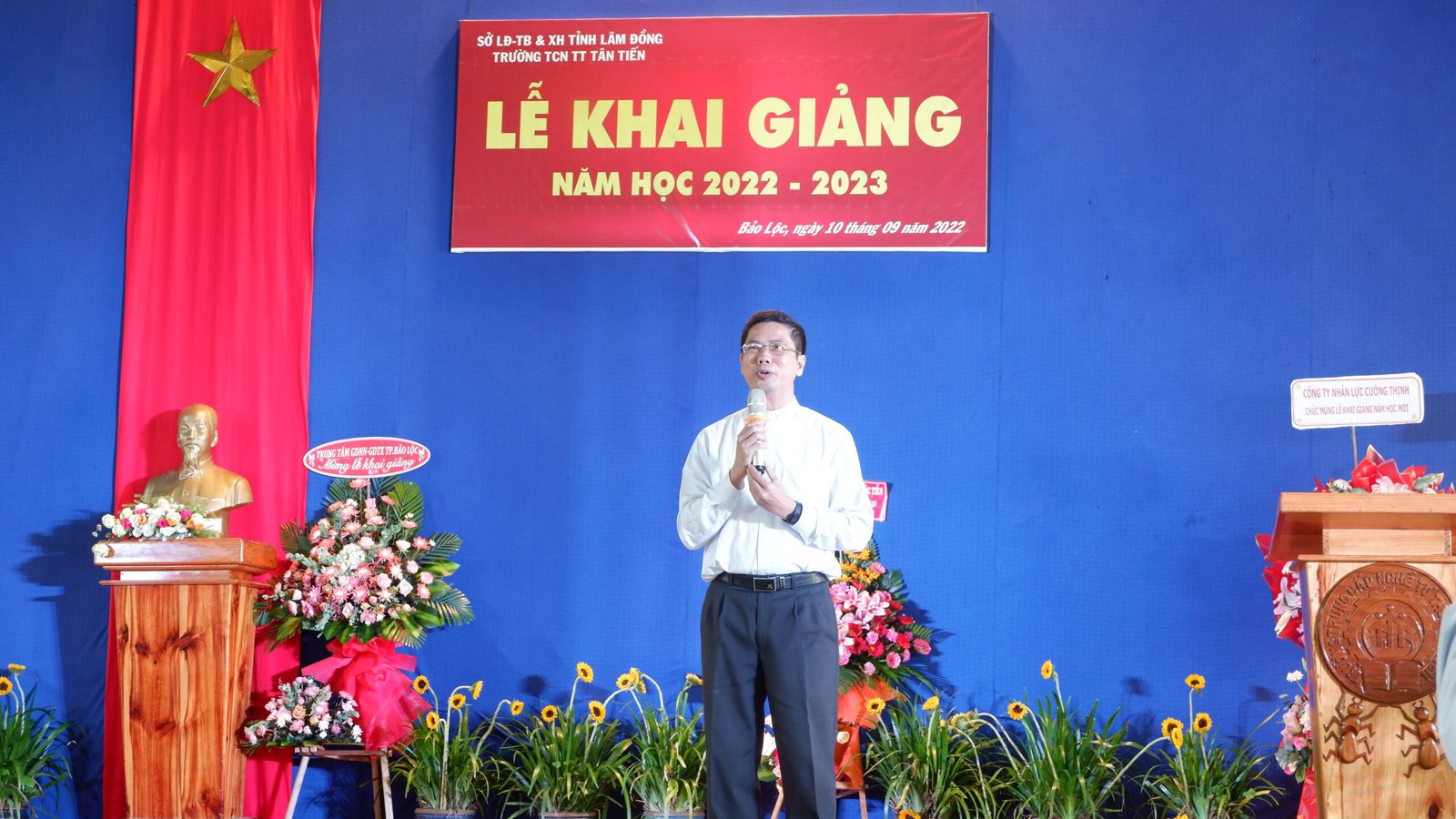 Bảo Lộc – 12.09.2022 – Sau hơn hai tuần định hướng nghề nghiệp và học tập, vào lúc 8 giờ sáng thứ Bảy, ngày 10.09.2022, tại Trường Trung Cấp Nghề Tư Thục Tân Tiến đã diễn ra Lễ Khai Giảng năm học mới 2022 – 2023. Buổi lễ diễn ra ngắn gọn, nhưng không kém phần trang trọng và đầy ý nghĩa. Các em học viên tham dự cách tích cực và nghiêm túc. Tất cả báo hiệu một năm học mới nhiều niềm vui, và gặt hái được nhiều thành quả tốt đẹp.