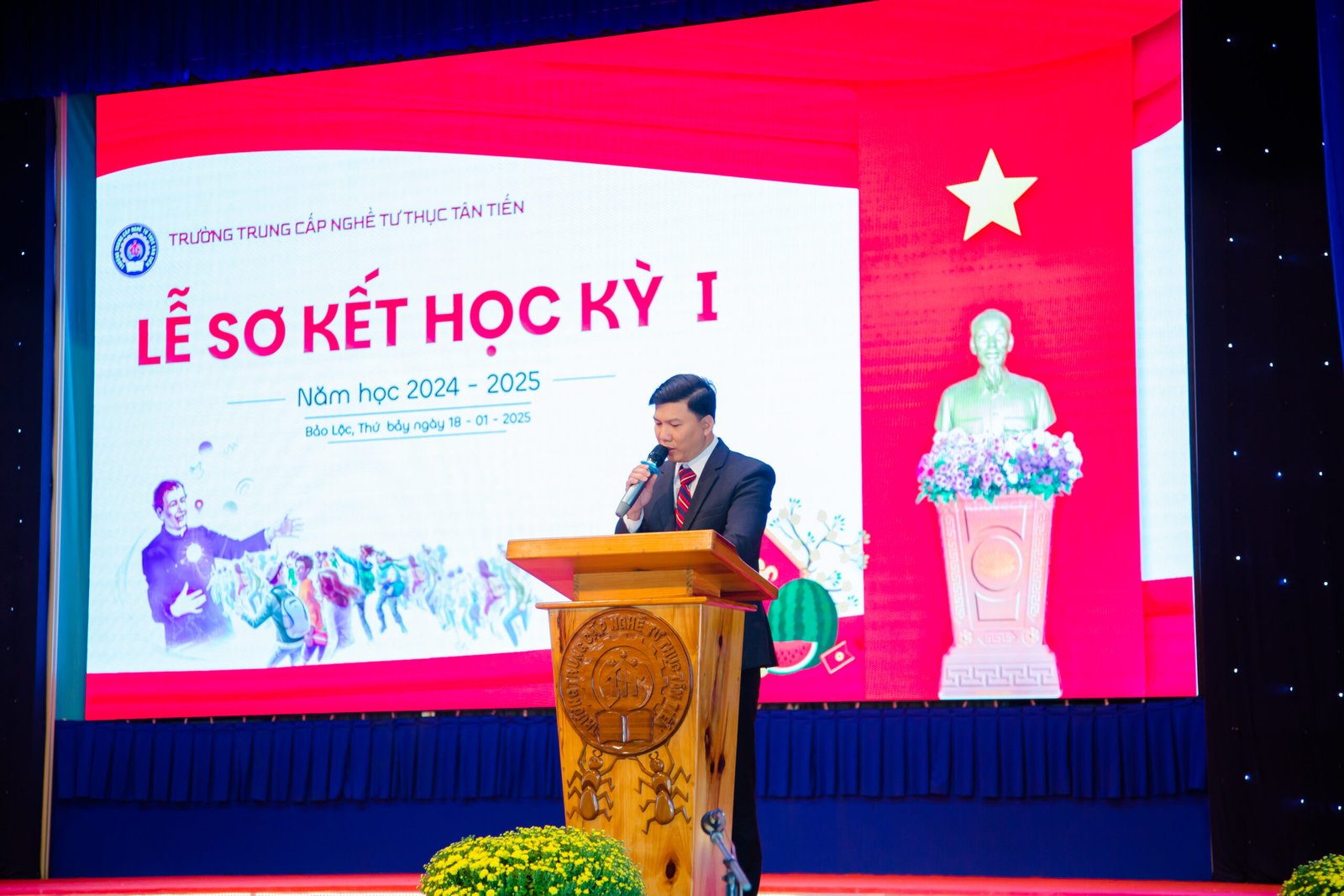 Trường Trung Cấp Nghề Tư Thục Tân Tiến: Lễ Sơ Kết Học Kỳ I Năm 2024-2025 Và Trao Học Bổng