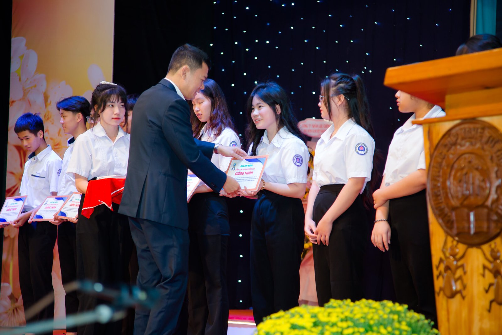 Cũng trong khuôn khổ chương trình, nhà trường và các mạnh thường quân đã gửi tới các em học sinh có hoàn cảnh đặc biệt những phần học bổng. Những phần quà tuy nhỏ nhưng chứa chan tinh thần đoàn kết, sẻ chia, chắc chắn sẽ phần nào giúp các em có thêm niềm vui và động lực để đón Tết ấm áp, trọn vẹn cũng như cố gắng học tập.