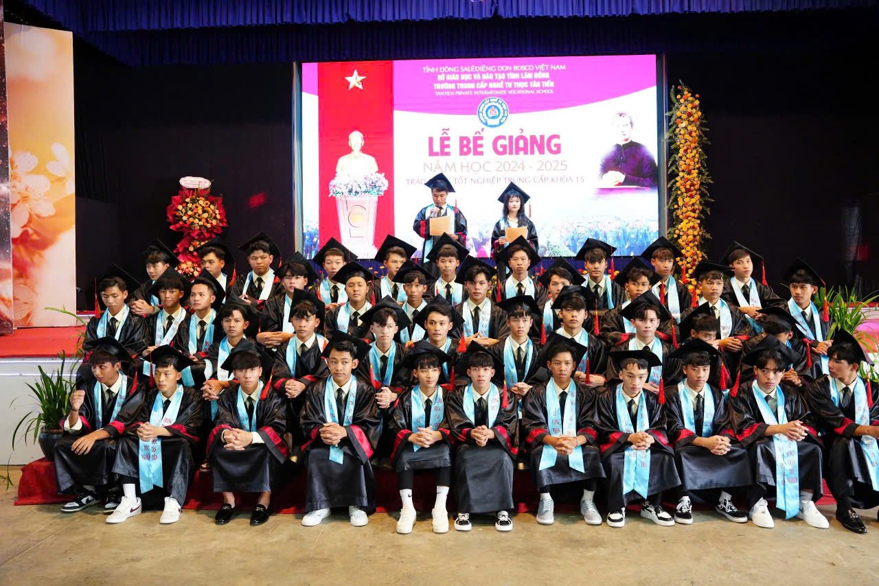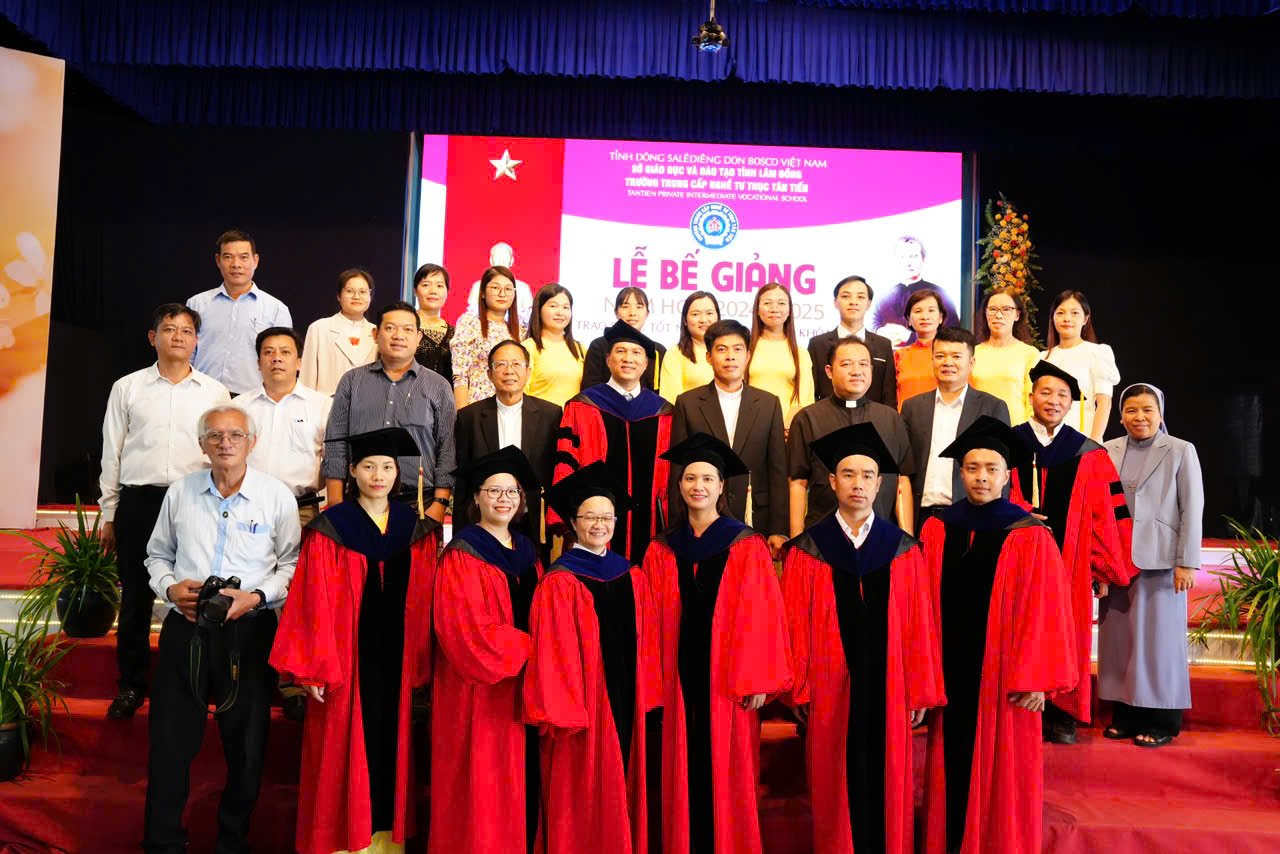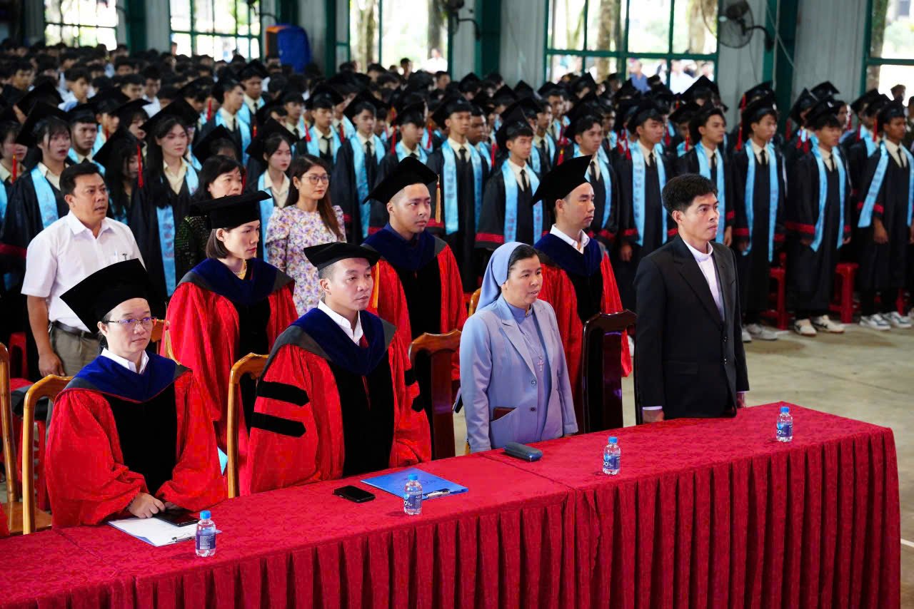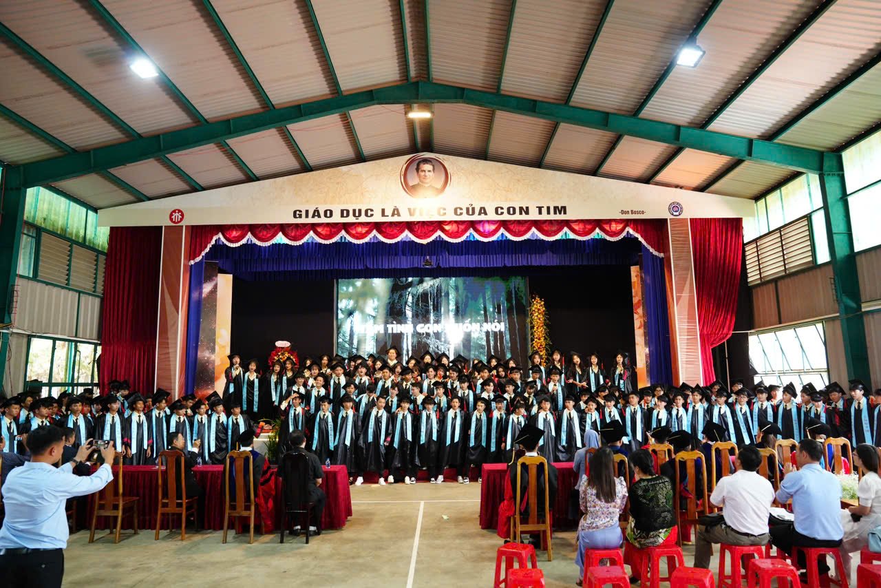 Buổi lễ diễn ra trang trọng trong khuôn viên nhà trường, với sự tham dự của Cha Nicolas Kiều Long Hồ – đại diện Tỉnh dòng Salêdiêng Don Bosco Việt Nam, Cha Giám đốc Martino Đinh Nghĩa Sỹ, cùng quý Cha, quý Thầy, quý Sơ trong Ban Giám hiệu nhà trường. Buổi lễ còn có sự góp mặt của đông đảo quý thầy cô giáo, đại diện hội cha mẹ học sinh và toàn thể các học viên tốt nghiệp Khóa 15.
