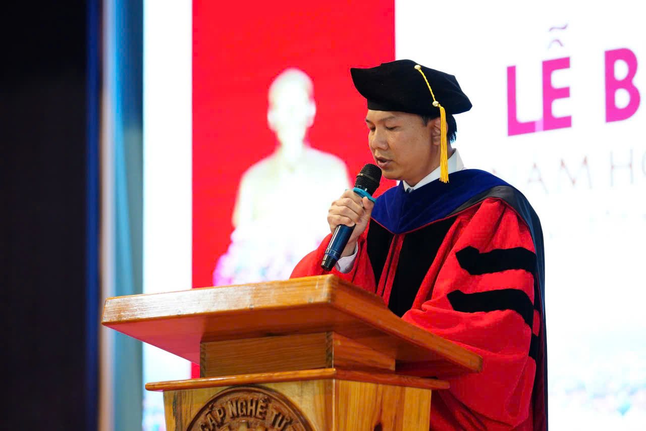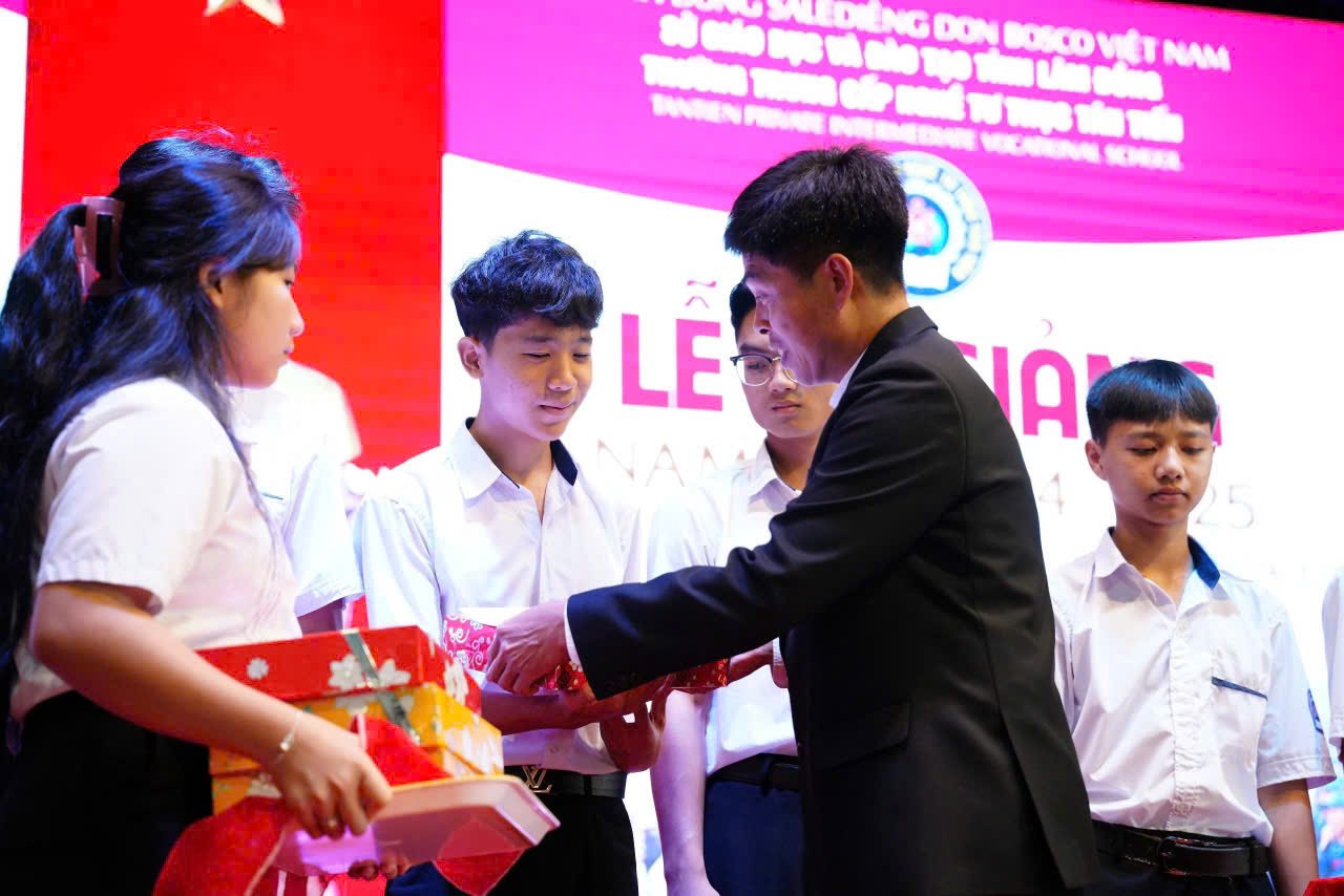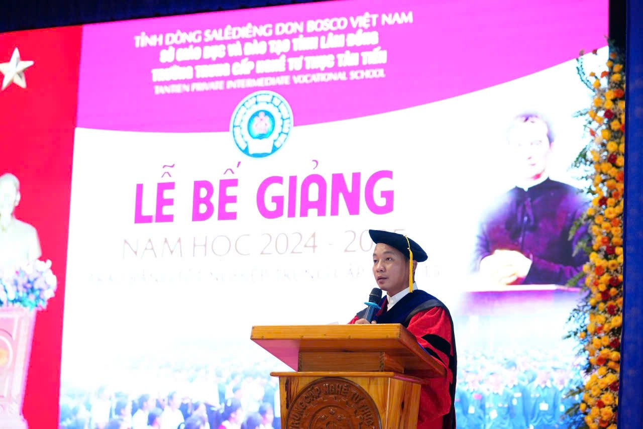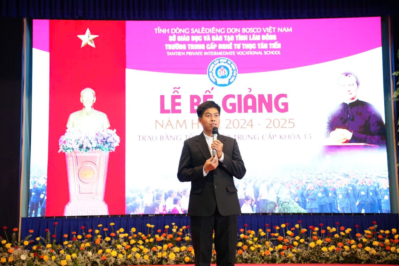Phát biểu tại buổi lễ, thầy Hiệu trưởng Martino Bùi Văn Luận đã chúc mừng những thành tích xuất sắc mà các học viên Khóa 15 đã đạt được trong suốt quá trình học tập và rèn luyện tại trường. Thầy Hiệu trưởng nhấn mạnh tầm quan trọng của việc trang bị kiến thức và kỹ năng nghề nghiệp vững chắc được nhà trường cung cấp, xem đây là hành trang quý báu giúp các học viên tự tin khởi nghiệp, tìm kiếm việc làm và hòa nhập thị trường lao động trong bối cảnh hiện nay.