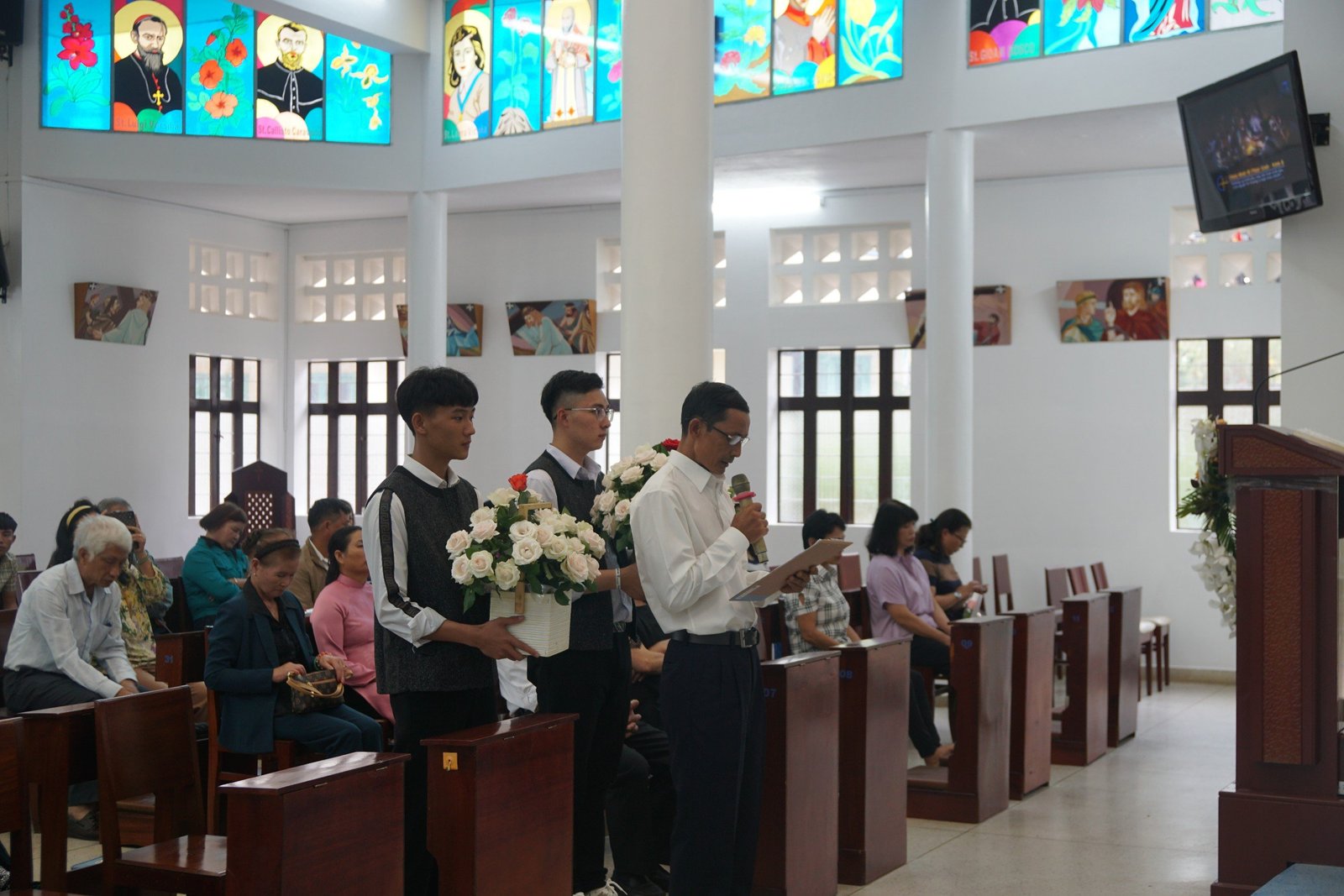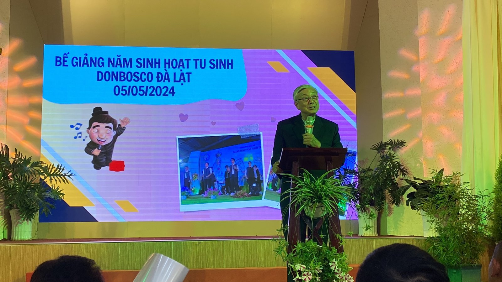Tham dự lễ bế giảng có cha Tôma Vũ Kim Long- Giám đốc Học viện Don Bosco Đà Lạt, Cha Augustino Chu Đăng Chấn, Sư huynh Đaminh Nguyễn Võ Hà Anh, Cha Đaminh Savio Nguyễn Huy Khiêm- Đặc trách Tu sinh cùng Quý Thầy đồng hành, quý Soeur dòng Con Đức Mẹ Phù Hộ, các Cộng tác viên Sa-lê-diêng, cô chú Chủ Nhà của anh em tu sinh, quí ân nhân- thân nhân. Đặc biệt tối thứ bảy 4/5, có sự hiện diện đông đảo của cha mẹ và Tu sinh tham dự buổi tĩnh tâm, xưng tội để chuẩn bị cho ngày bế giảng.