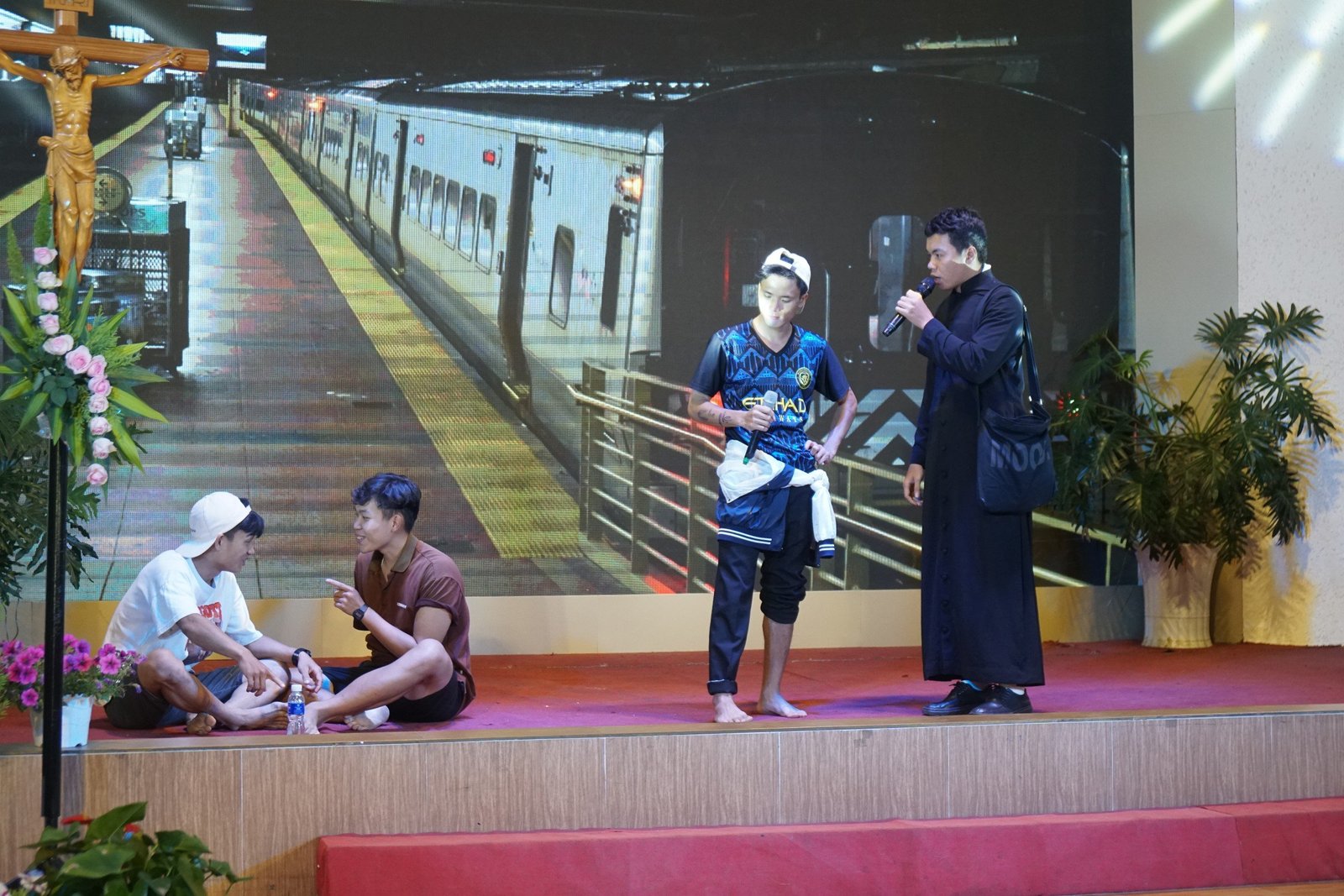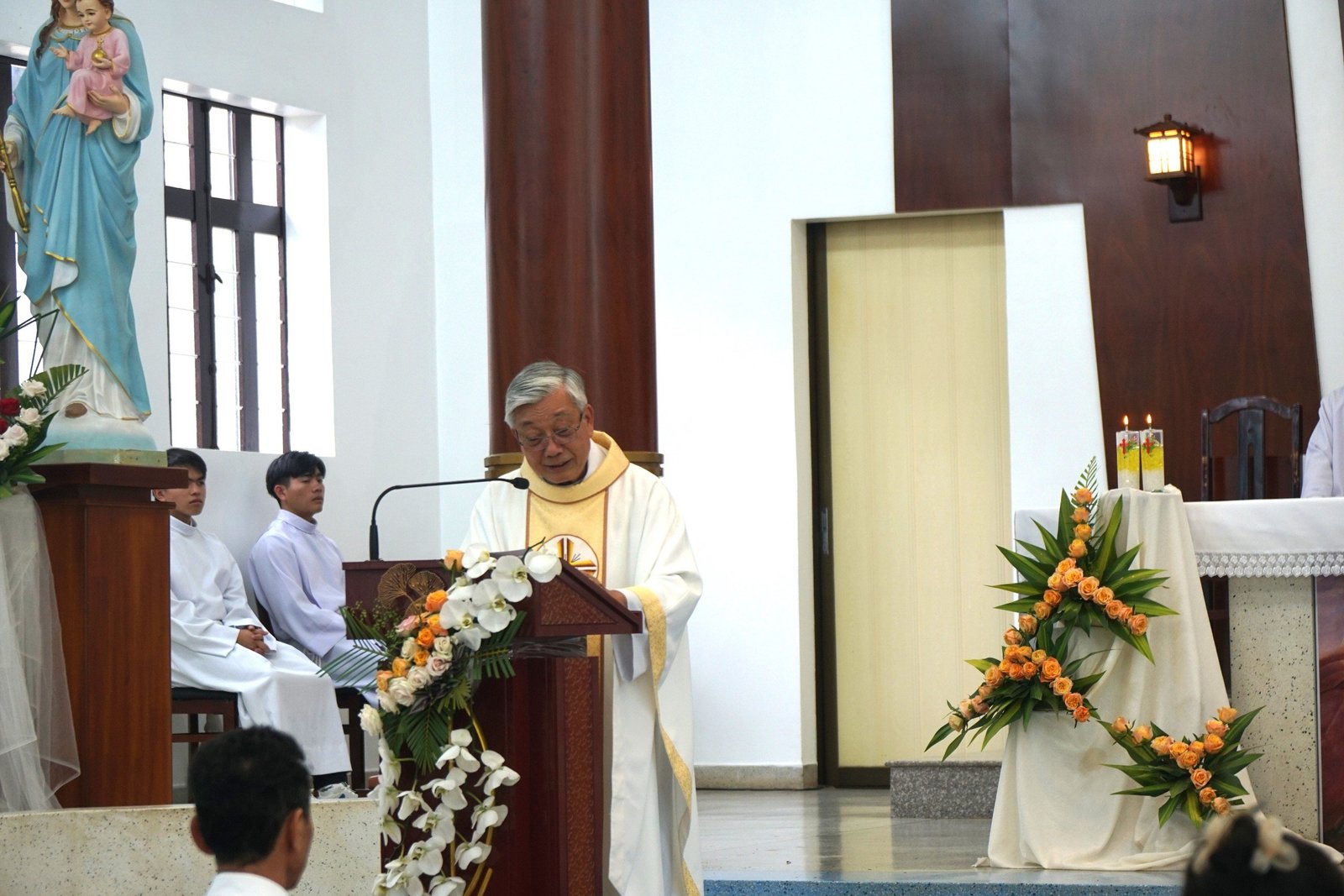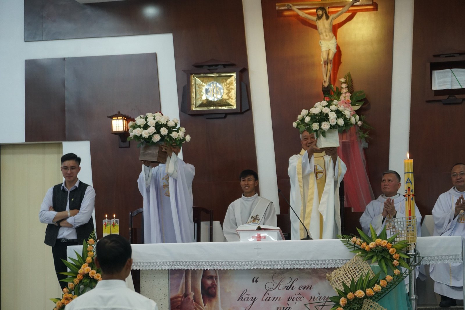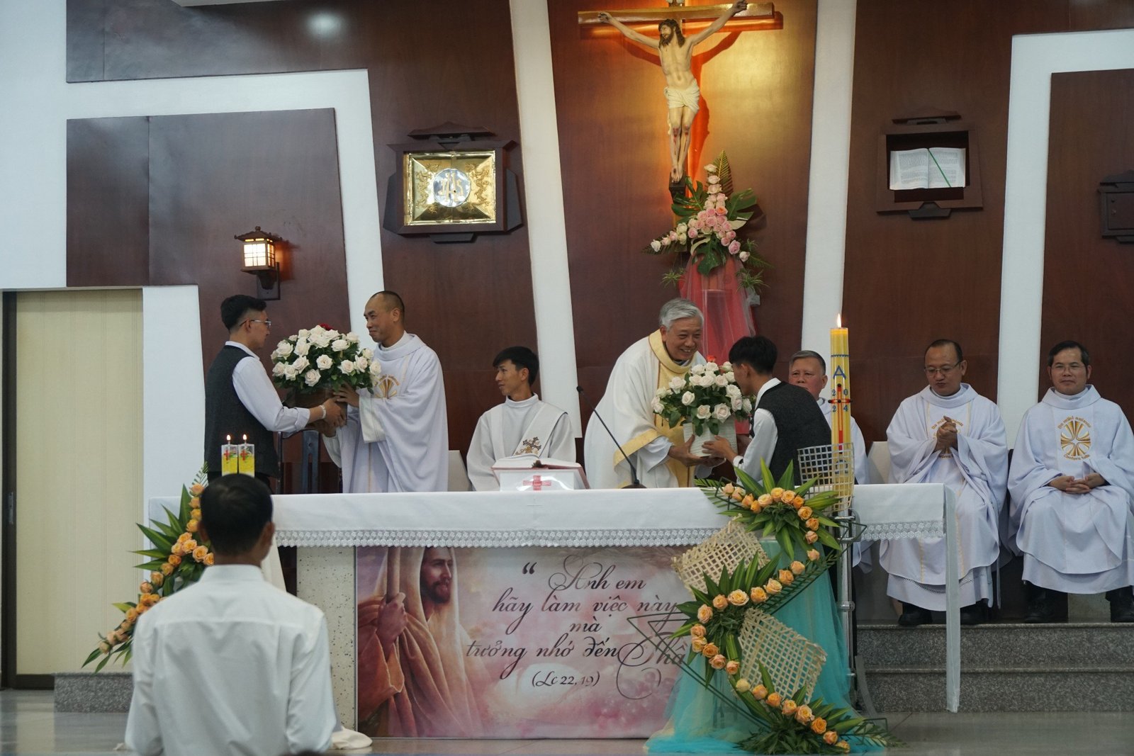 Kế đến, một bạn Tu sinh bày tỏ lòng biết ơn đến Cha Giám đốc, Cha Đặc trách, Quí thầy, quý Soeur, các CTV, ân nhân; cảm ơn Cha mẹ luôn quan tâm, lo lắng, hằng ngày dõi theo các con học hành và sinh hoạt ra sao… Các bạn Tu sinh đã nói lên tâm tình biết ơn của mình, gởi tặng đến Quí Cha, và mọi người những cành hoa hồng tươi thắm thay cho lòng biết ơn.