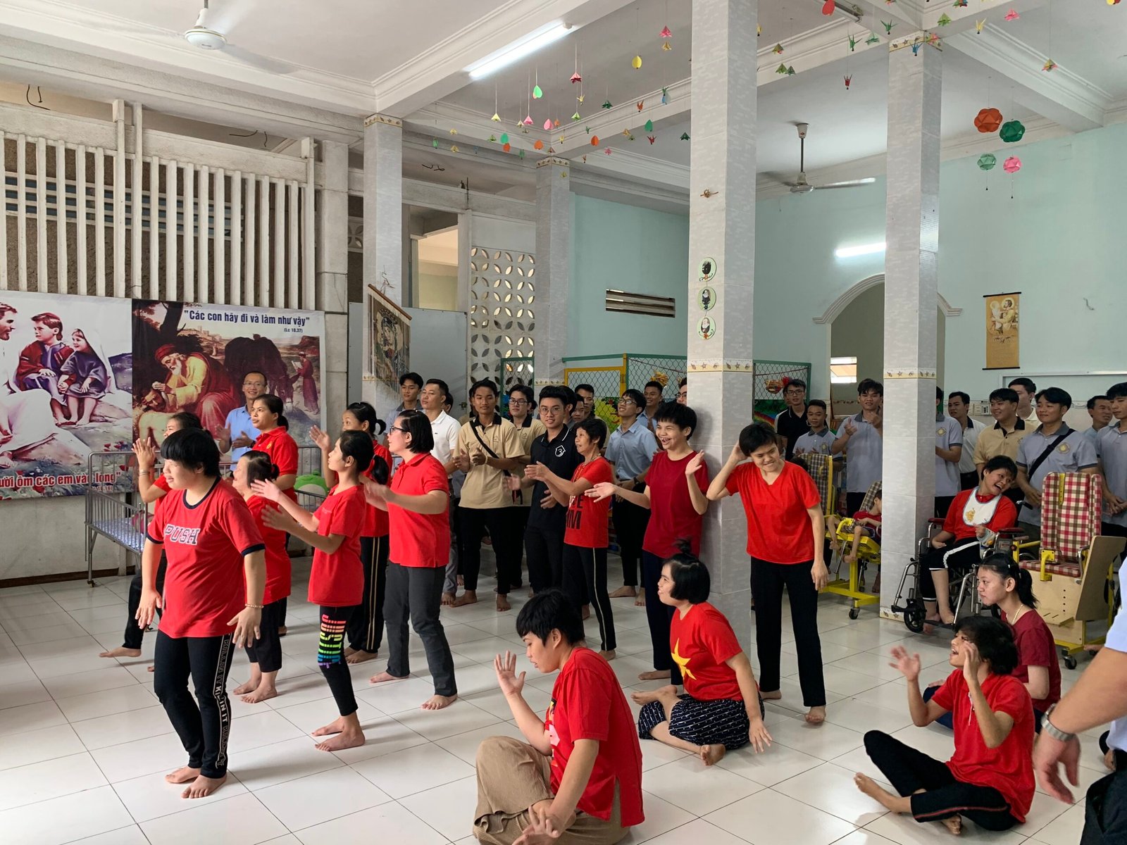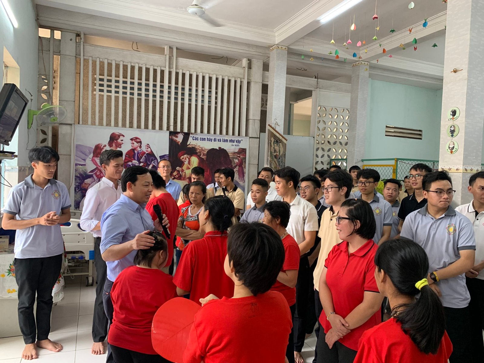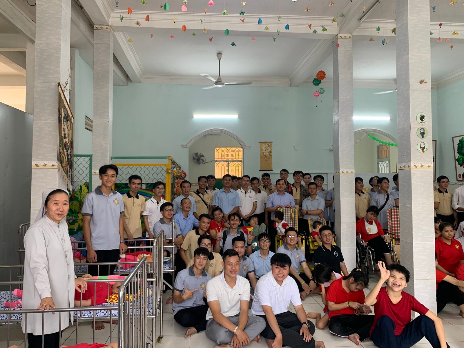 Với tinh thần đem niềm vui và bình an trong Mùa Phục Sinh đến cho mọi người, Vào lúc 8h00 ngày 16/04/2023, Chúa Nhật II Mùa Phục Sinh – Đại Lễ Lòng Chúa Thương Xót, Anh em Tu sinh Don Bosco Xuân Hiệp đã có chuyến đi “Bác ái tông đồ Mùa Phục Sinh” đến cộng đoàn “Tu viện Đức Mẹ La Vang – Hội Dòng Trợ Thế Thánh Tâm Chúa Giêsu” để thăm và tặng quà cho các em có hoàn cảnh đặc biệt. Hiện tại, cộng đoàn nơi đây đang nuôi dưỡng và chăm sóc cho khoảng hơn 40 trẻ em nữ có nhiều hoàn cảnh đặc biệt từ mồ côi, tâm thần, khuyết tật cho đến bại não.