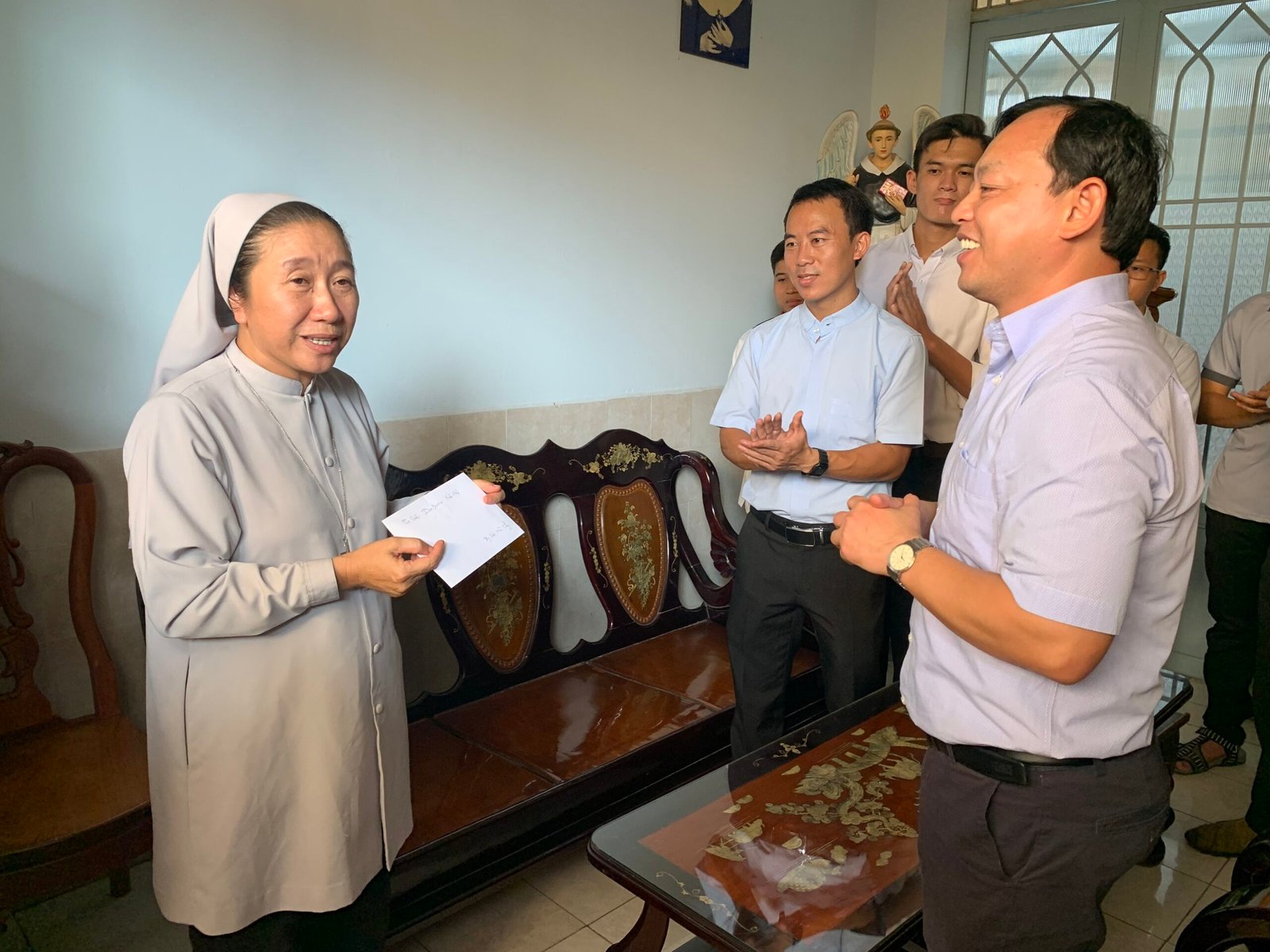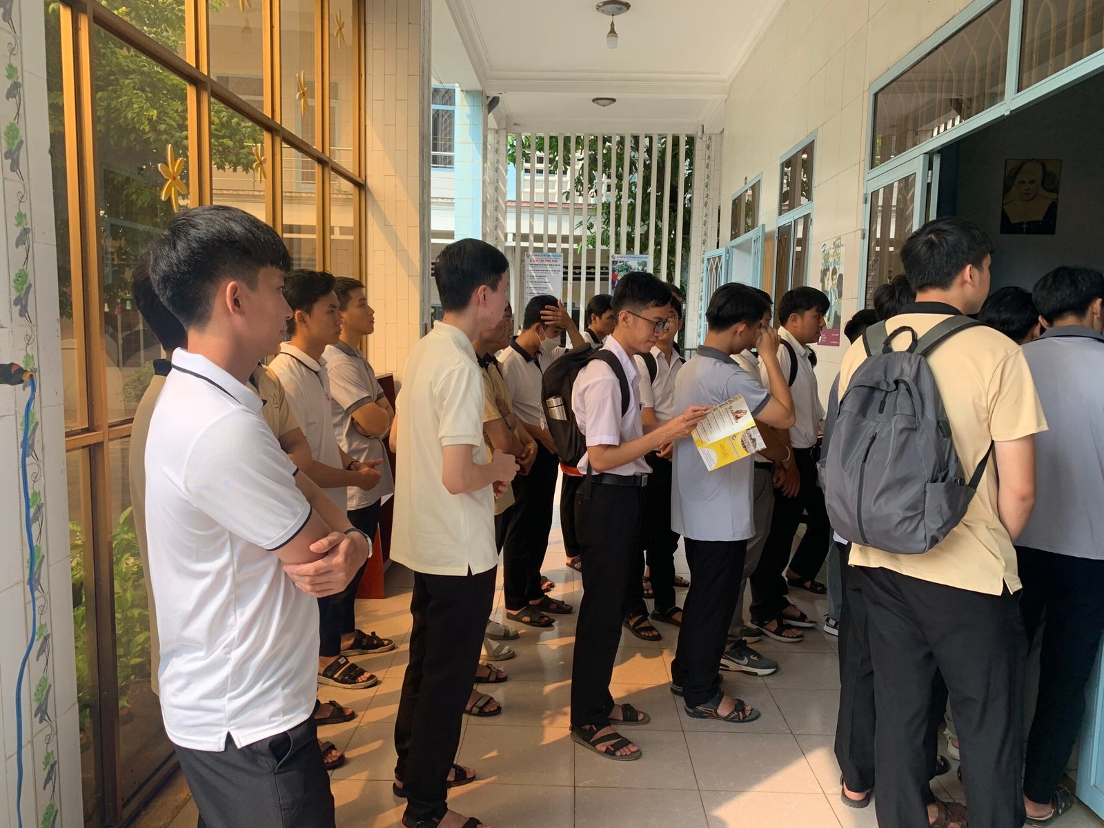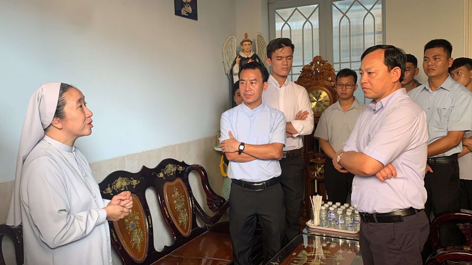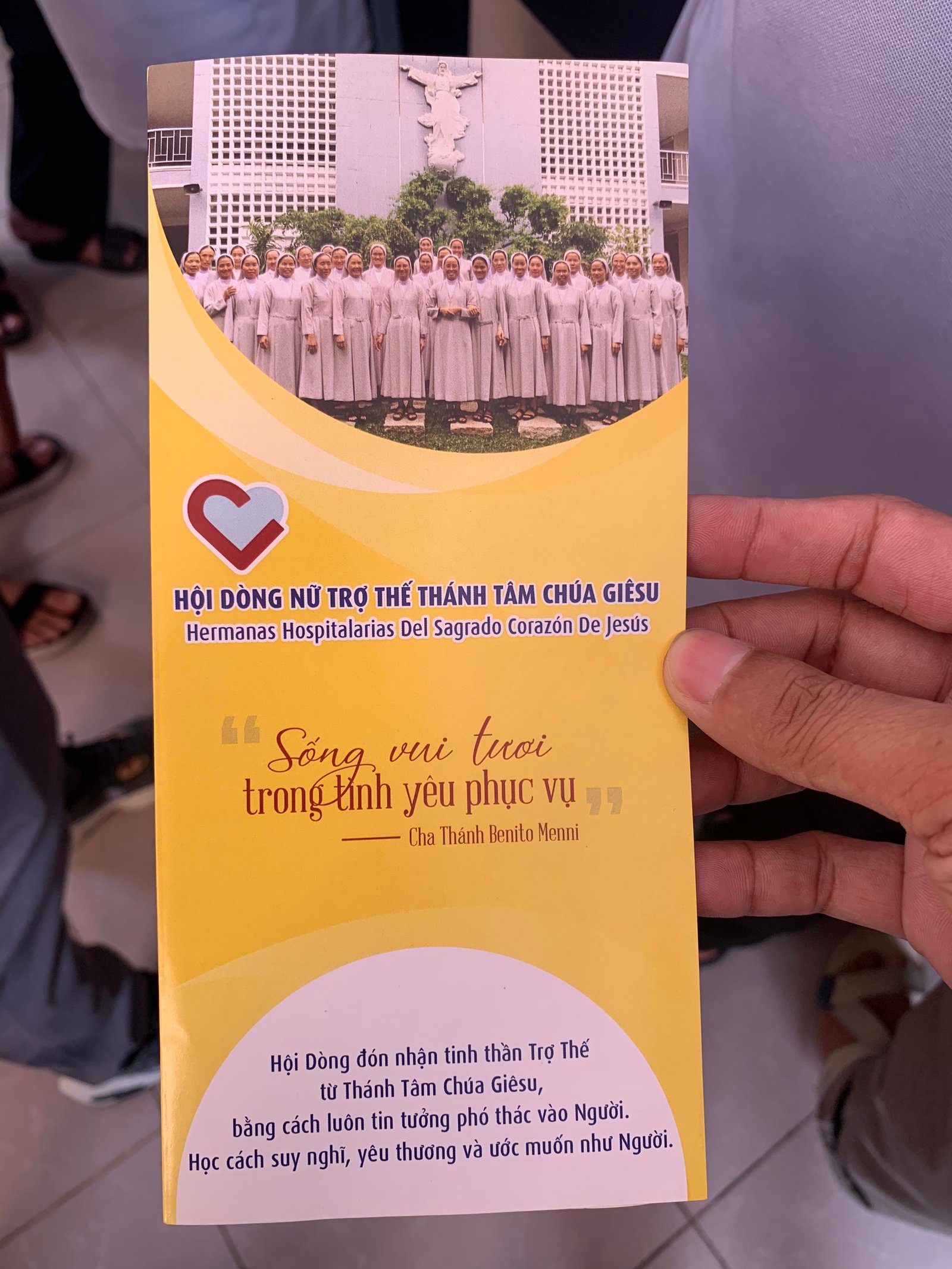 Sau hành trình hơn 45 phút đi xe máy của các anh em, cuối cùng cũng đến địa điểm của cộng đoàn Tu viện Đức Mẹ La Vang – Dòng trợ thế Thánh Tâm Chúa Giêsu. Tiếp đón anh em Tu sinh là Sơ Teresa Hồng – Sơ Bề trên của cộng đoàn. Sau phần chào thăm của Cha đặc trách, quý Thầy và anh em Tu sinh đến Sơ Bề trên và cộng đoàn, Anh em được Sơ Bề trên giới thiệu sơ nét về hội dòng, các công cuộc và sứ mạng của hội dòng đang đảm trách.