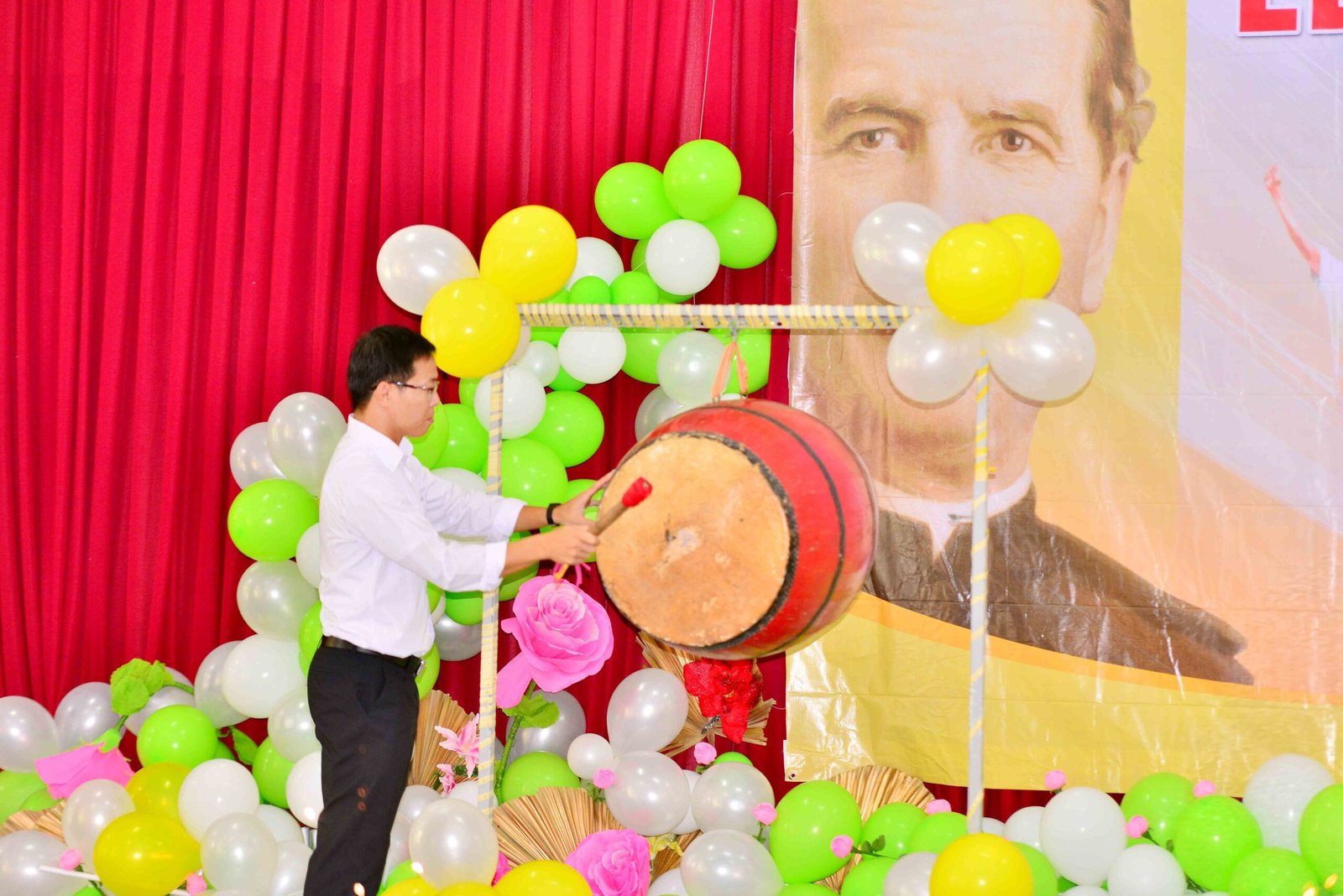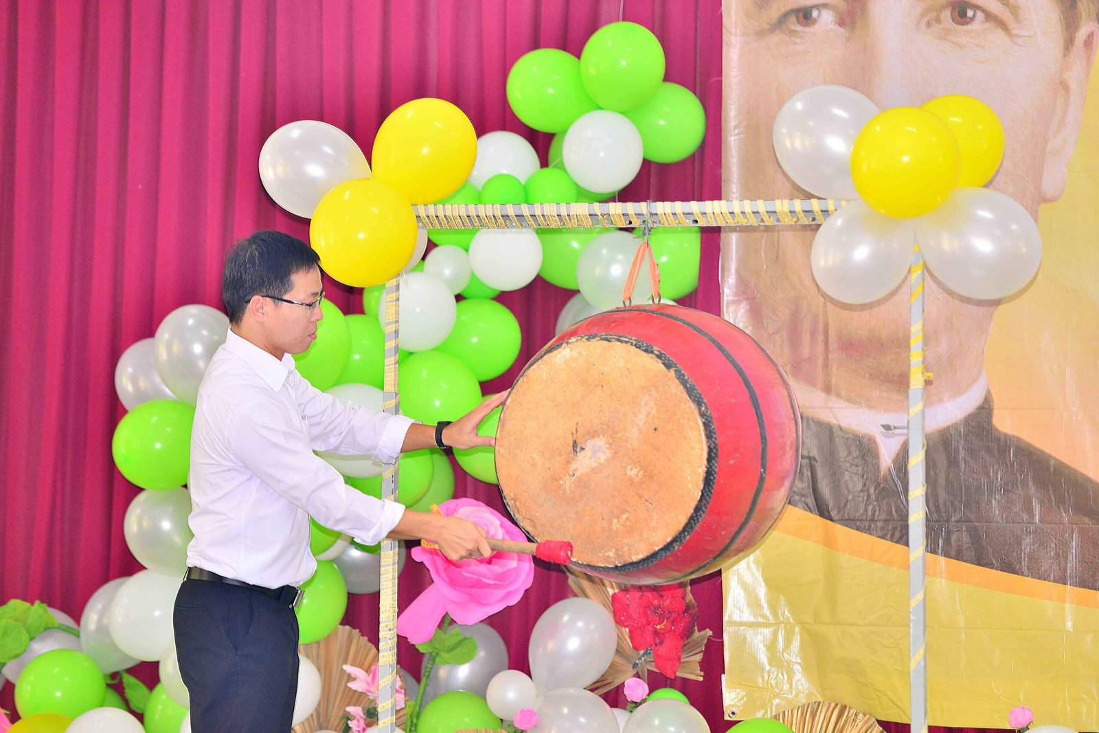 Hòa với nhịp điệu của buổi lễ, một âm thanh gần gũi, đặc trưng, mang tính truyền thống, đó chính là tiếng trống khai trường được Cha Phêrô Đinh Công Trường – Phó giám đốc cộng thể Đông Thuận Vĩnh Long, đánh trống khai giảng năm học mới 2022-2023.