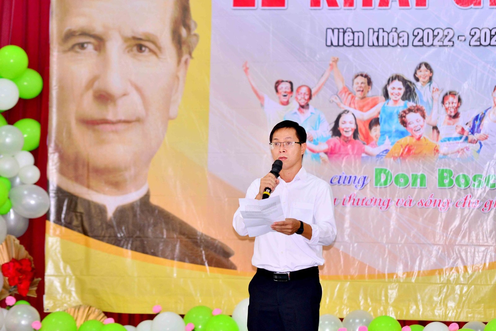 Mở đầu buổi lễ khai giảng là phần đọc thư của Đức Giám Mục Phêrô Huỳnh Văn Hai, Chủ tịch Ủy ban Giáo Dục Công Giáo gửi cho các bạn sinh viên – học sinh Công giáo. Trong tâm thư Ngài chia sẻ về những khó khăn của dịch bệnh COVID-19 trong một năm qua và có dấu hiệu đang quay trở lại. Tiếp theo là những định hướng trong năm học mới, Ngài đã nhắn nhủ người trẻ “Vậy, các con hãy bám chặt vào Chúa Giêsu, vì Người là con đường duy nhất để dẫn đến Chúa Cha, vốn là mục tiêu cuối cùng và duy nhất của đức tin Kitô giáo (x. Cv 4, 12).”, Cuối dòng tâm thư là Lời chúc đầy ý nghĩa của Ngài trong ngày khai giảng.