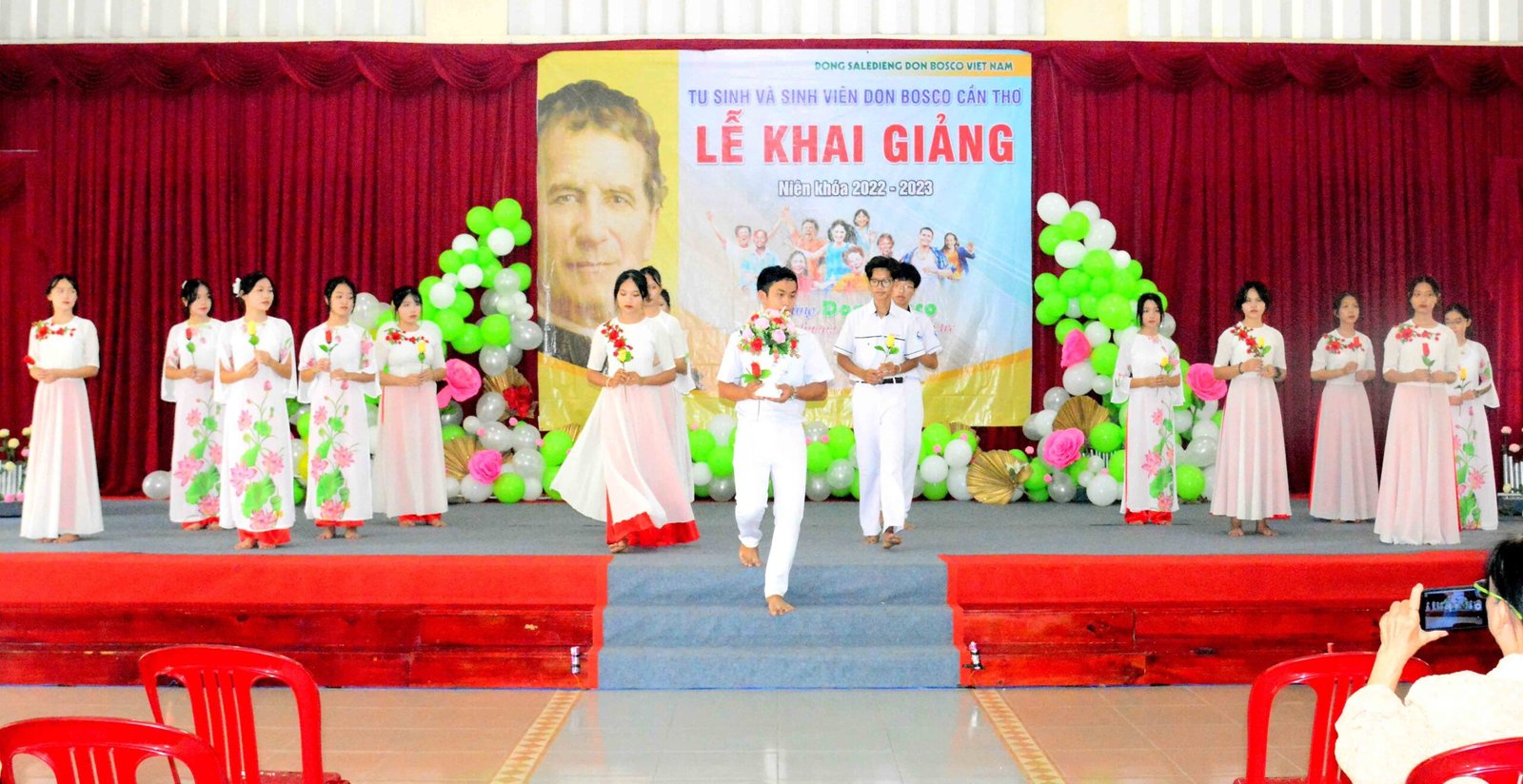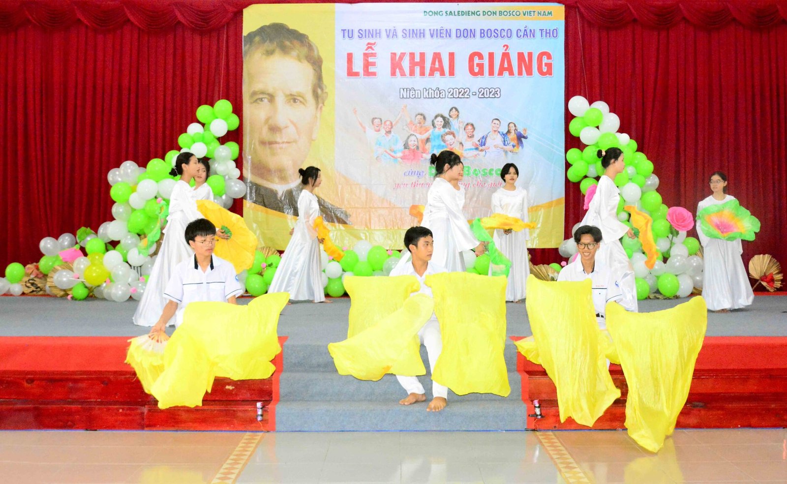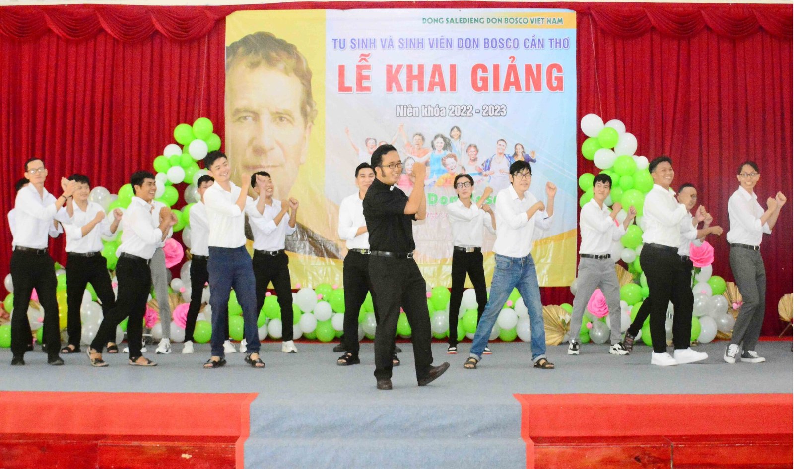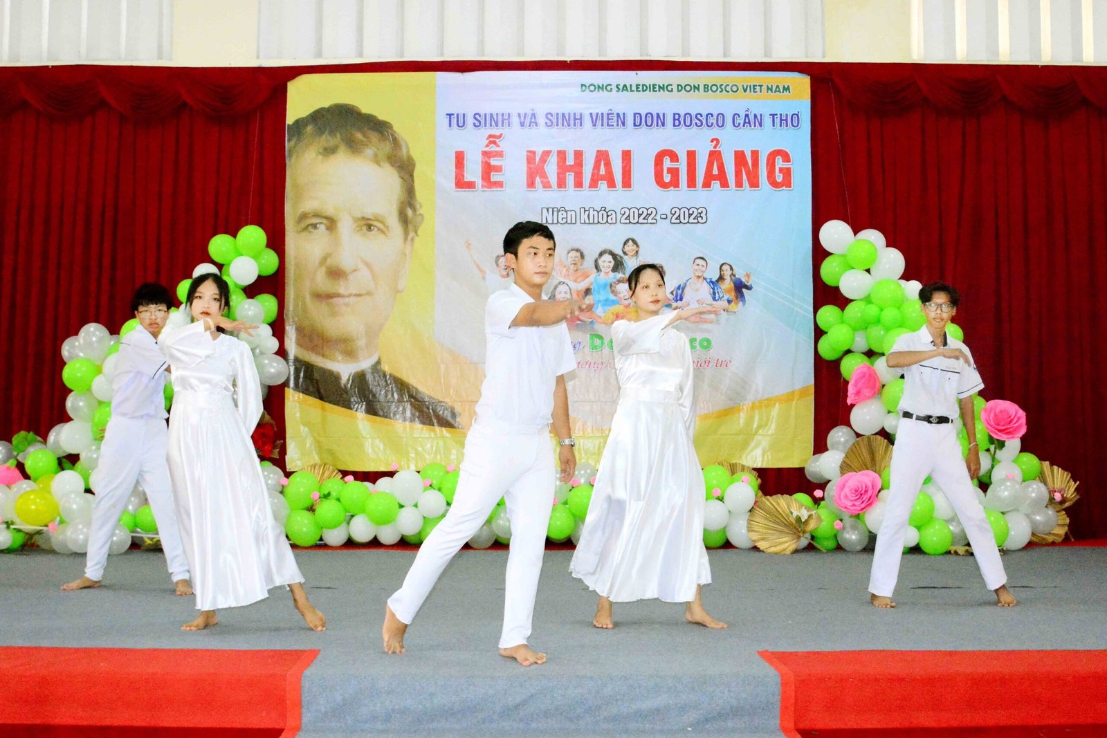 Bầu khí buổi lễ khai giảng trở nên sinh động, vui tươi với các tiết mục văn nghệ được trình diễn từ các bạn học sinh lưu xá Don Bosco Mỹ Thuận và sinh viên Don Bosco Cần Thơ, và không thể không kể đến đó là phần tặng hoa để tỏ lòng biết ơn đến Quý Cha, Quý Tu sĩ nam nữ, quý phụ huynh và quý ân nhân, những bông hoa tươi thắm thay cho lời tri ân của các em sinh viên và tu sinh Don Bosco Cần Thơ.