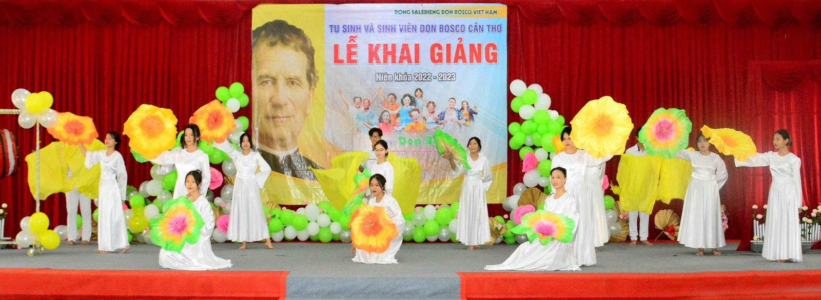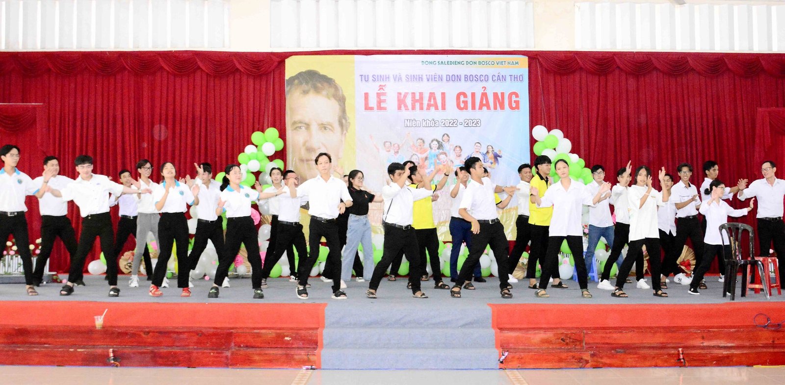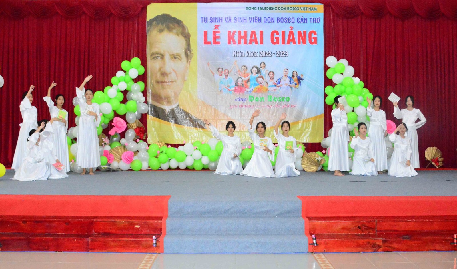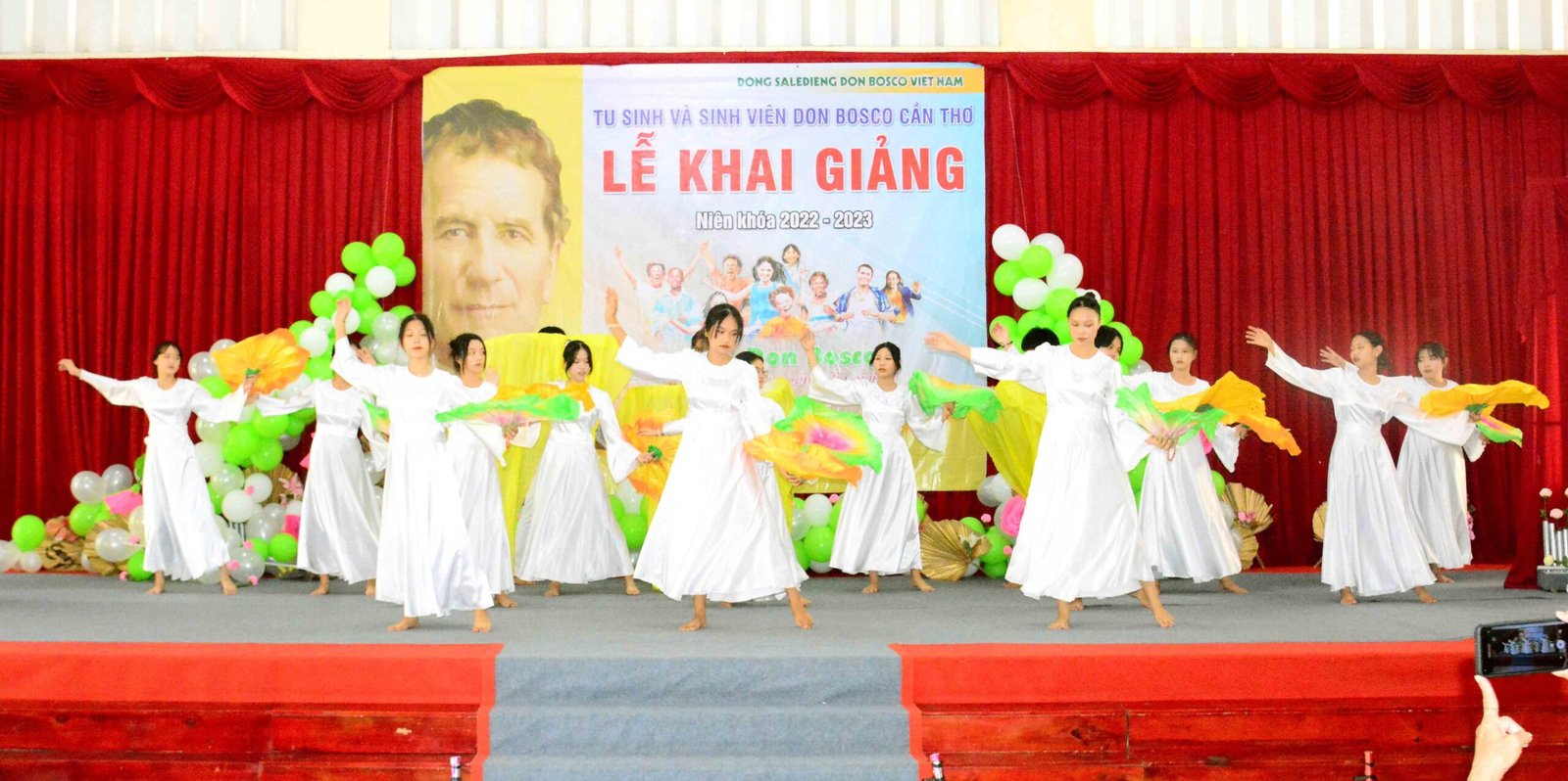 Bầu khí buổi lễ khai giảng trở nên sinh động, vui tươi với các tiết mục văn nghệ được trình diễn từ các bạn học sinh lưu xá Don Bosco Mỹ Thuận và sinh viên Don Bosco Cần Thơ, và không thể không kể đến đó là phần tặng hoa để tỏ lòng biết ơn đến Quý Cha, Quý Tu sĩ nam nữ, quý phụ huynh và quý ân nhân, những bông hoa tươi thắm thay cho lời tri ân của các em sinh viên và tu sinh Don Bosco Cần Thơ.