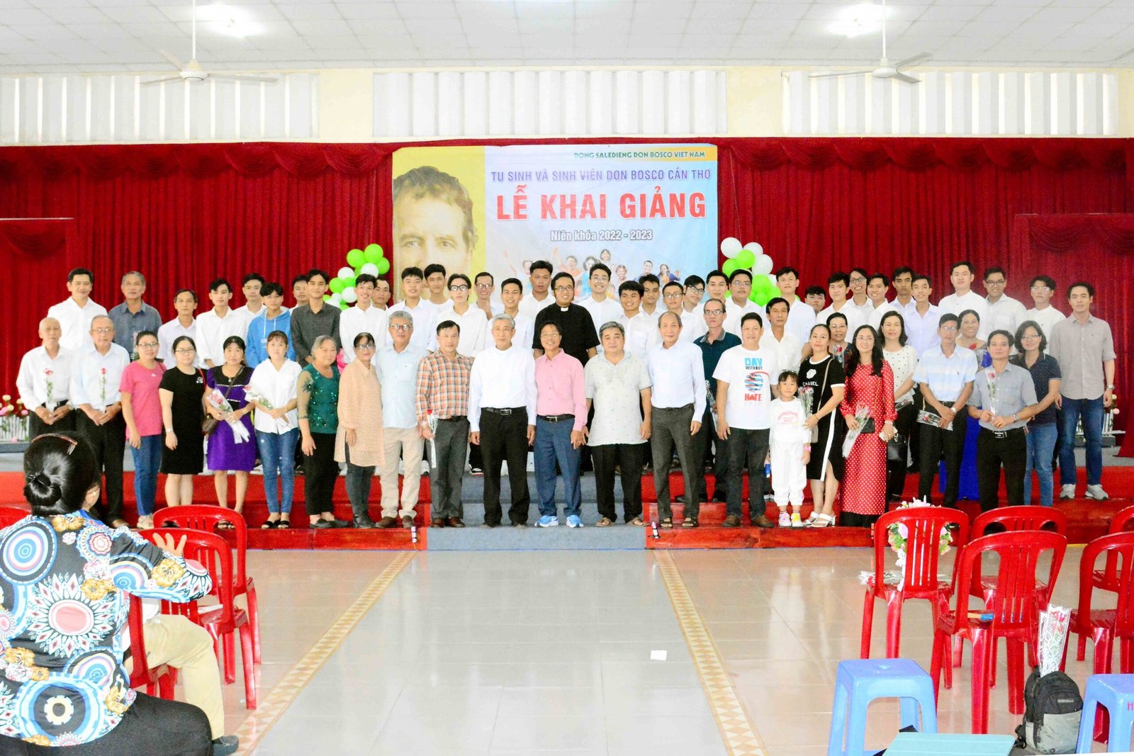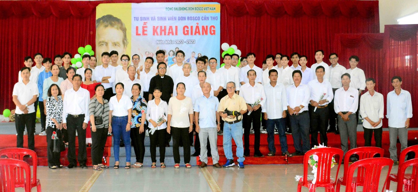 Vào lúc 8h30 sáng Chúa nhật ngày 25/09/2022, chương trình khai giảng năm học mới của Tu sinh & Sinh viên Don Bosco Cần Thơ đã diễn ra một cách thành công và tốt đẹp. Hiện diện trong ngày Lễ Khai Giảng có Cha Phêrô Đinh Công Trường – Phó giám đốc cộng thể Đông Thuận, Vĩnh Long, Cha Giuse Đỗ Trung Nghĩa – Đặc trách giới trẻ hạt Cần Thơ, Cha Giuse Nguyễn Sĩ Sản, Cha Phaolô Nguyễn Toàn Khoa – Đặc trách lưu xá sinh viên và tu sinh Don Bosco Cần Thơ, cùng với sự hiện diện của Quý Cha, Quý Tu sĩ nam nữ, Quý vị ân nhân, Quý phụ huynh và các bạn sinh viên đại diện các nhóm của Giáo Phận Cần Thơ.