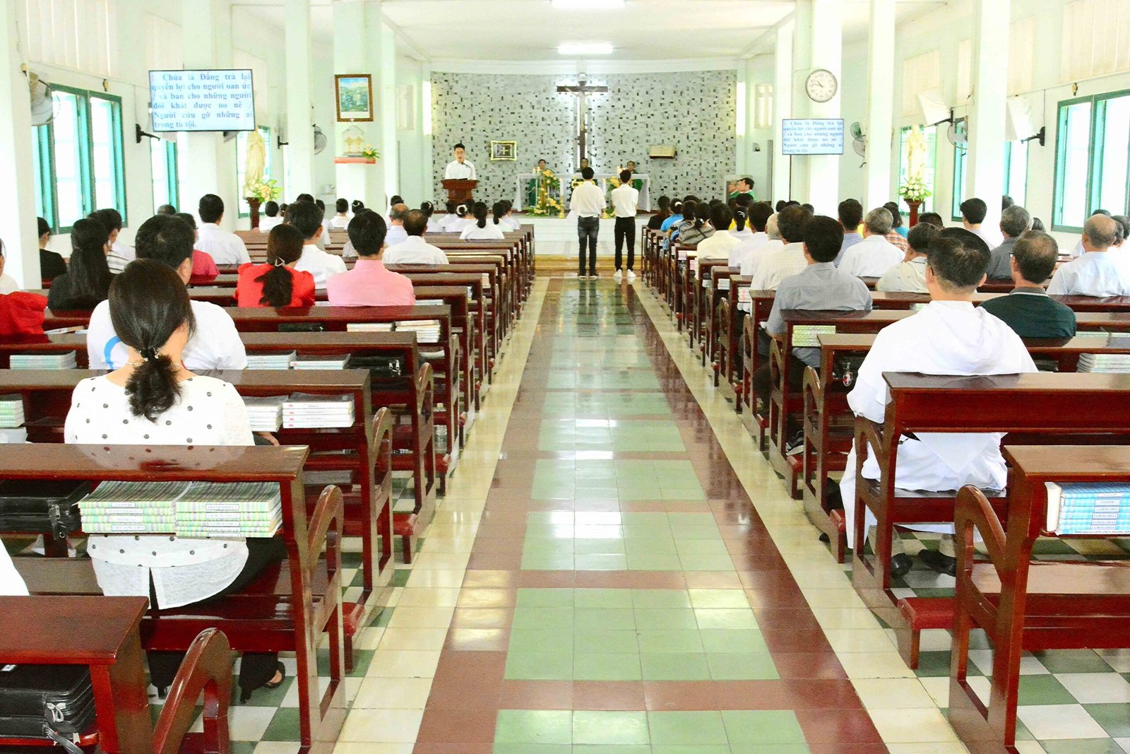 Thánh lễ Chúa nhật mừng ngày khai giảng được diễn ra vào lúc 10h30, trong tinh thần trang nghiêm và sốt sắng. Qua bài dụ ngôn: “Người phú hộ và Lazarô khó nghèo”, Cha Giuse Đỗ Trung Nghĩa – Đặc trách giới trẻ hạt Cần Thơ đã nhắn nhủ cho mọi người đừng vì mặt thể lí mà trở thành ông phú hộ, chỉ biết làm giàu cho bản thân mà vô tâm, đóng kín lòng mình trước người nghèo khó không biết quảng đại chia sẻ. Đặc biệt đối với các bạn sinh viên và tu sinh cùng nhau sống chung một mái nhà đừng vô cảm, biết sống nhẫn nại yêu thương anh em. Một cuộc sống ý nghĩa là một cuộc sống biết yêu thương tương quan với mọi người trong tình hiệp nhất của Thiên Chúa.
