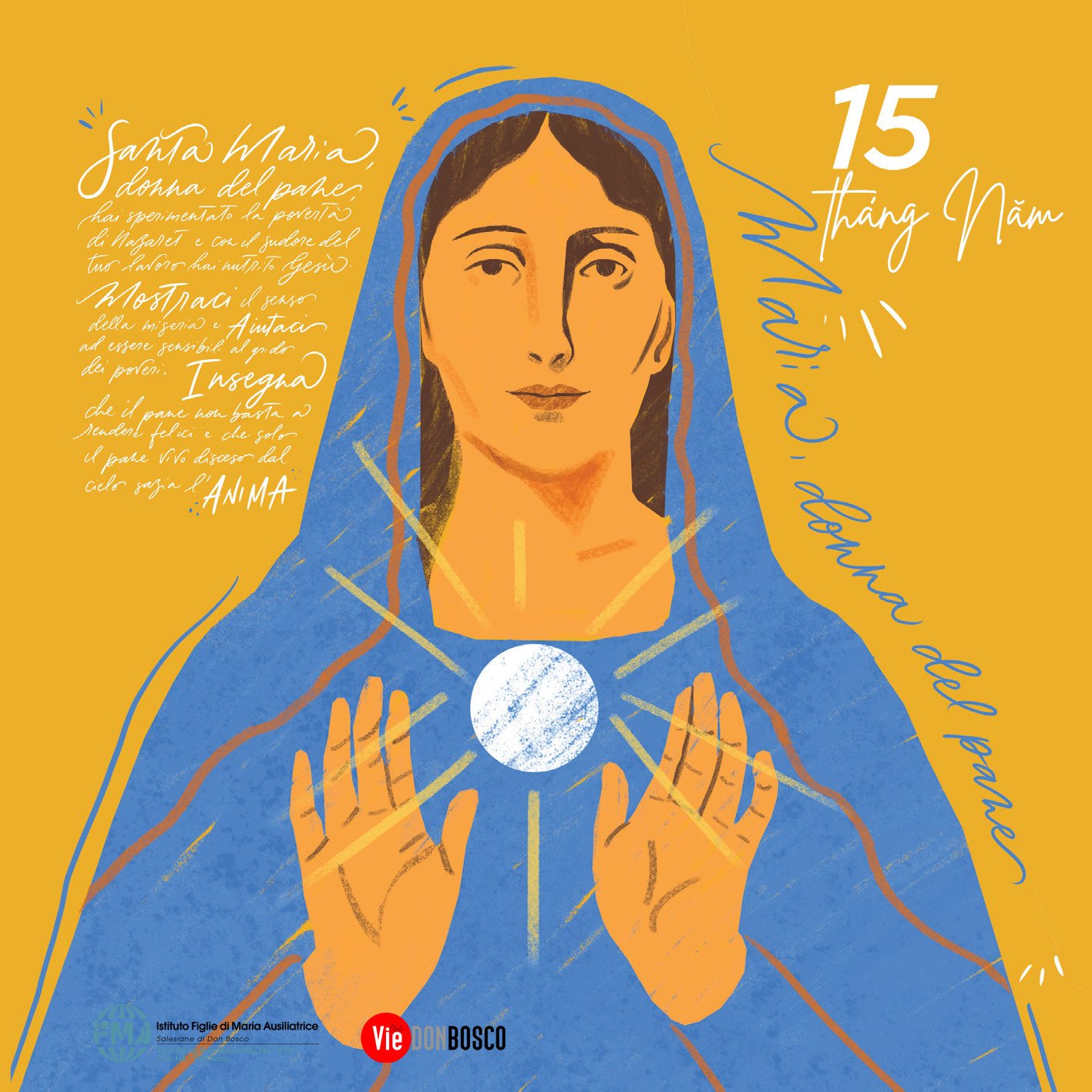 Lạy Mẹ Maria, người nữ của tấm bánh, Mẹ đã cảm nghiệm cảnh nghèo khó của Nazareth và với bao giọt mồ hôi (lao nhọc) của việc nuôi dưỡng Chúa Giêsu. Xin cho chúng con thấy ý nghĩa của sự cùng khốn và giúp chúng con nhạy bén với tiếng kêu của người nghèo. Xin dạy chúng con hiểu rằng bánh không đủ để làm cho con người hạnh phúc và chỉ có bánh hằng sống từ trời xuống mới làm thỏa mãn tâm hồn.