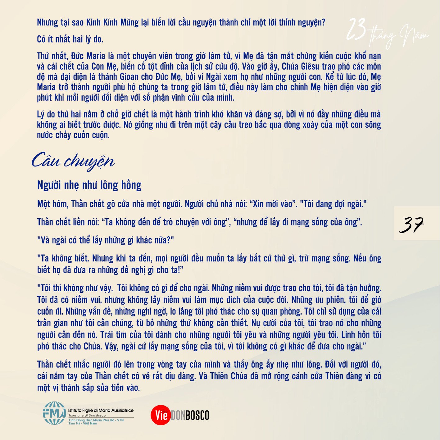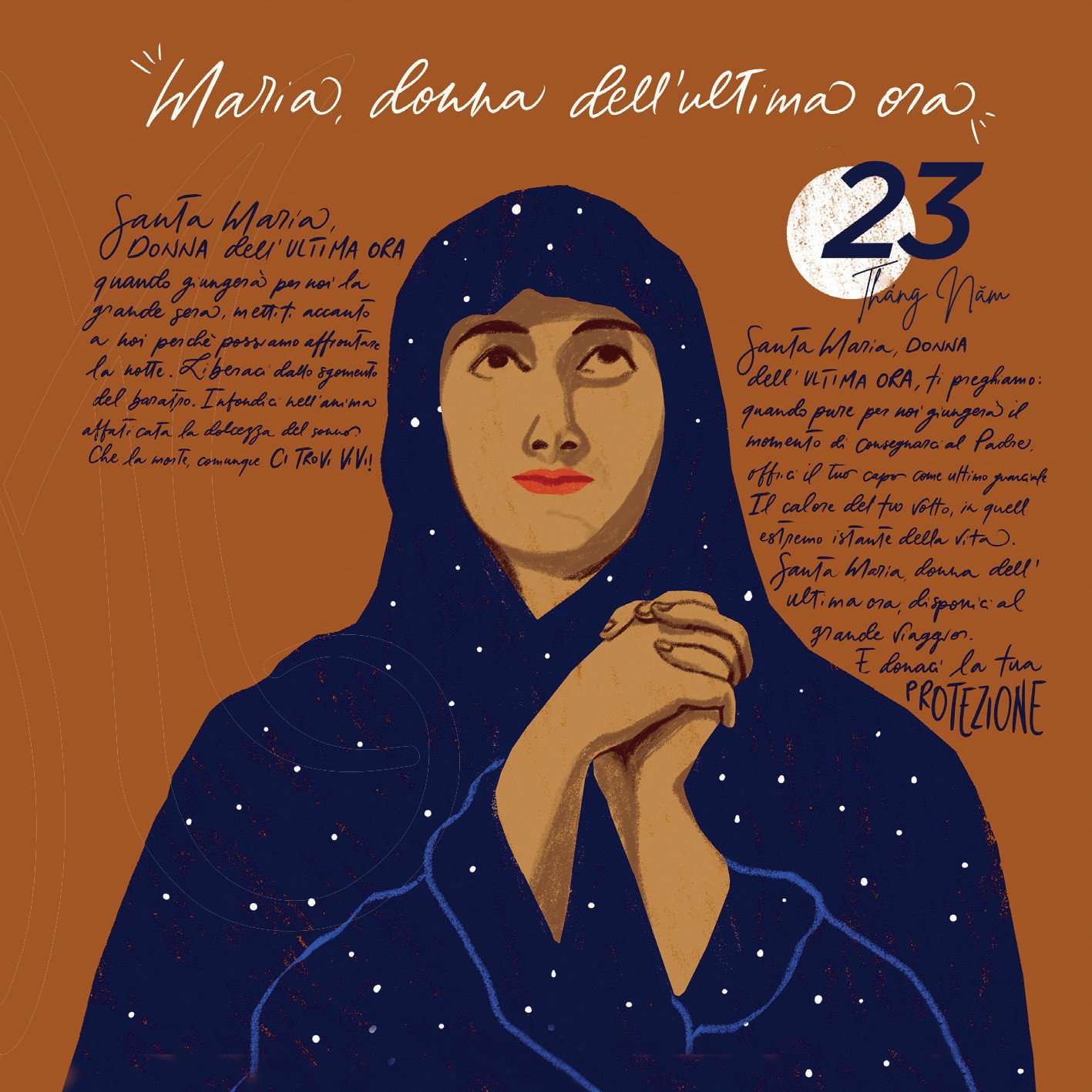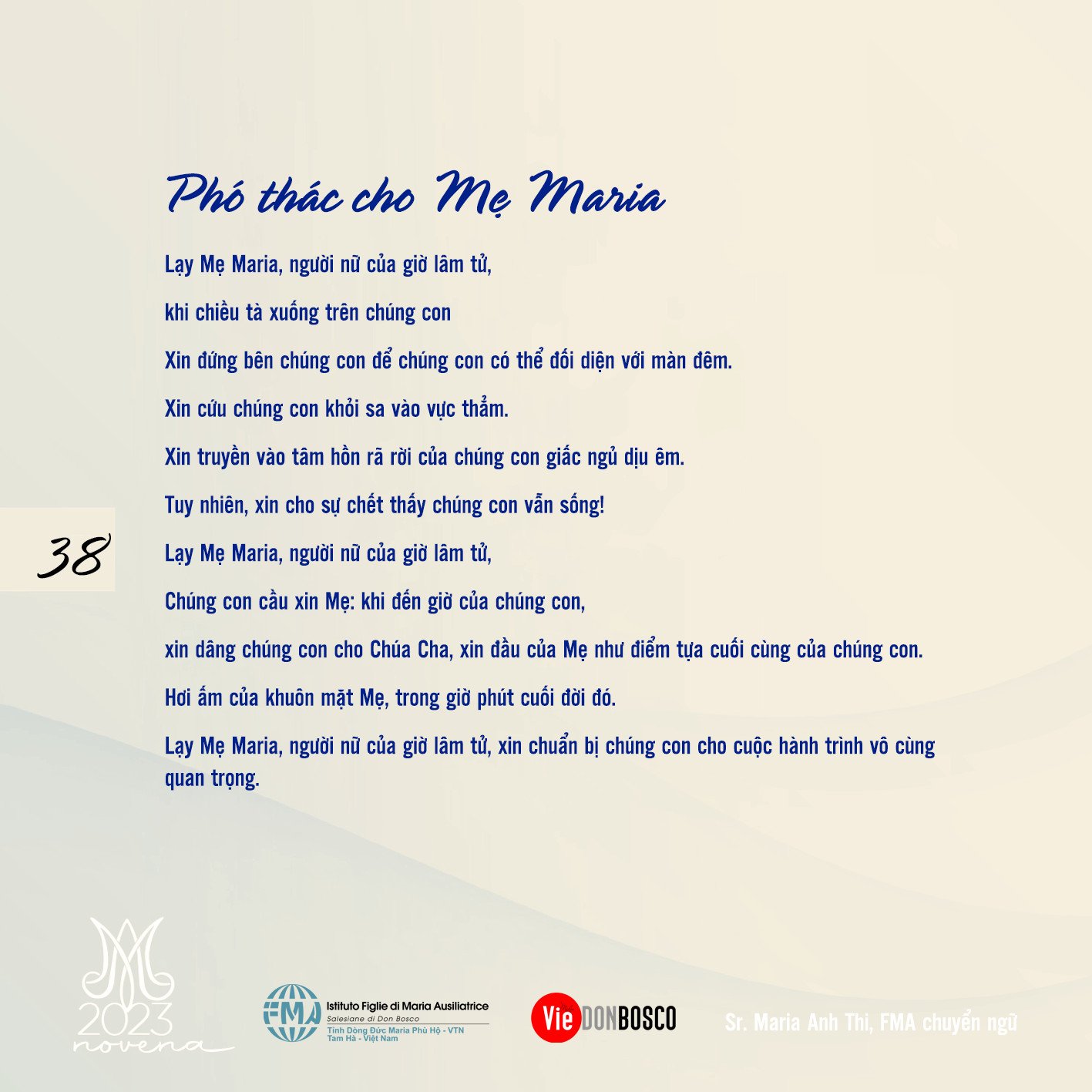 Lạy Mẹ Maria, người nữ của giờ lâm tử, xin chuẩn bị chúng con cho cuộc hành trình vô cùng quan trọng.