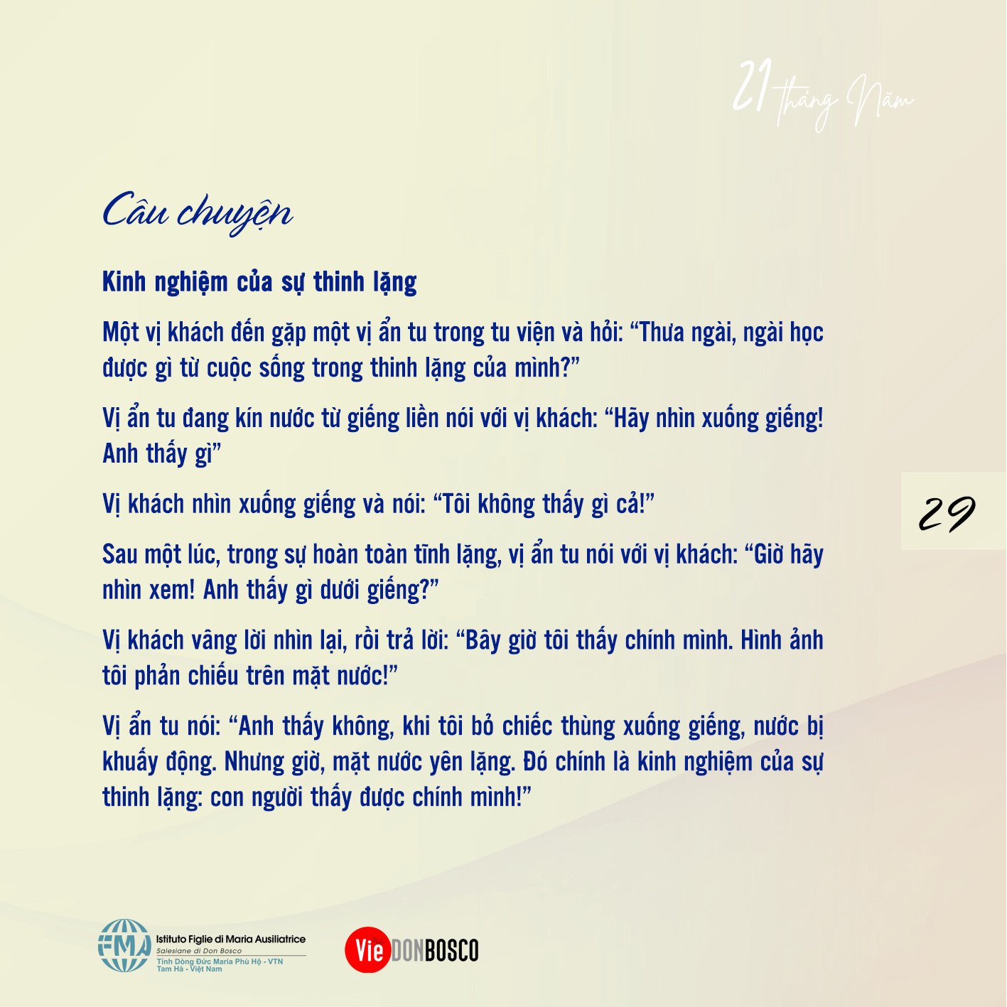Xin giúp chúng con hiểu rằng chỉ khi chúng con giữ thinh lặng, Thiên Chúa mới có thể nói.