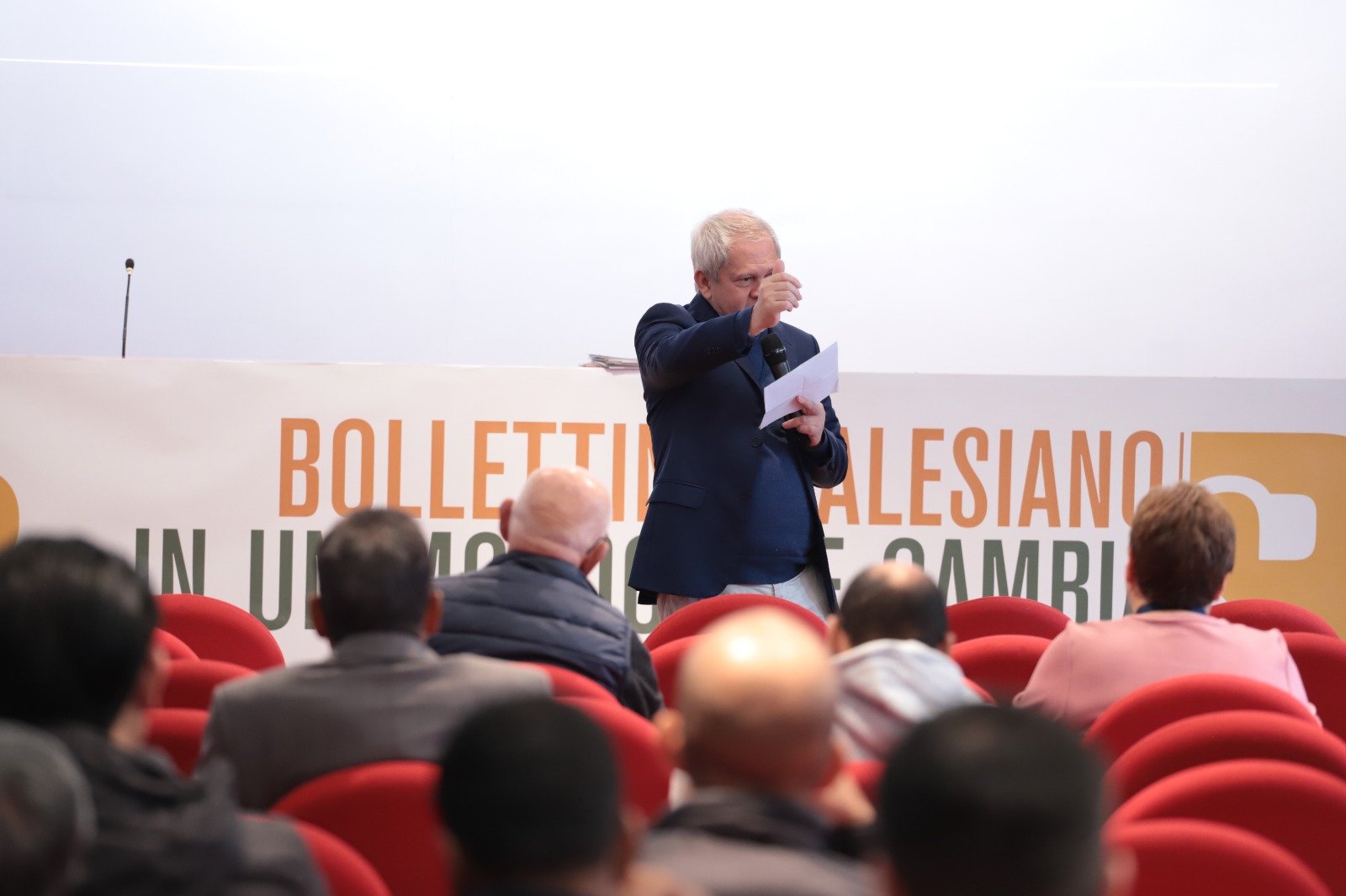Cha Giuseppe Costa bắt đầu bài phát biểu trình bày bối cảnh trong đó ngài đảm nhận trách nhiệm này với tư cách Giám đốc của Tập san Salêdiêng. Đó là một sự chuyển đổi lớn từ đen trắng sang bốn màu và một số thay đổi được thực hiện. Ngài nhắc lại rằng vào thời điểm đó, Tập san Salêdiêng có nhiệm vụ trung thành tuân theo huấn quyền của Cha Bề Trên Cả, lòng sùng kính Đức Mẹ gắn liền với Vương cung thánh đường, sự phát triển của sứ mệnh truyền giáo. Ngài đưa ra một lời khẳng định nổi bật, “Ngay cả khi số người Salêdiêng ít đi, nó có thể được nhân lên với sự hiện diện của Tập san Salêdiêng. Ngài xác tín rằng Tập san Salêdiêng có thể tạo ra nhiều tác động, giao tiếp và xây dựng hơn trong một lãnh địa ngay cả khi có ít Salêdiêng hơn.