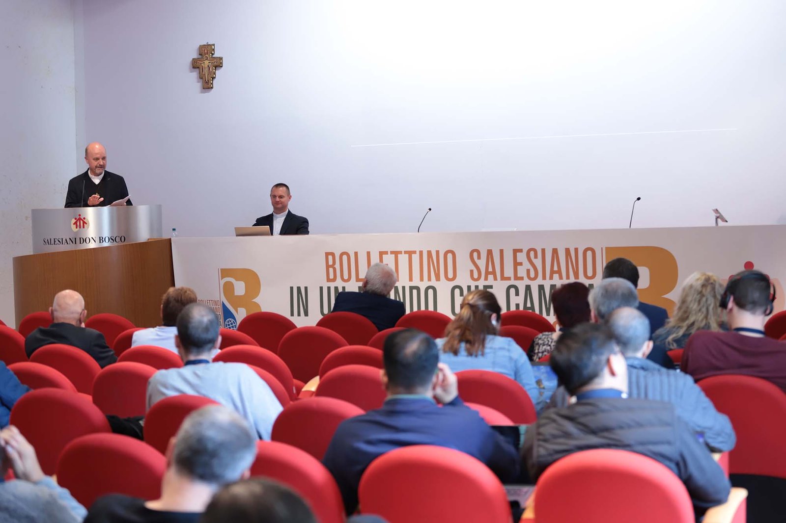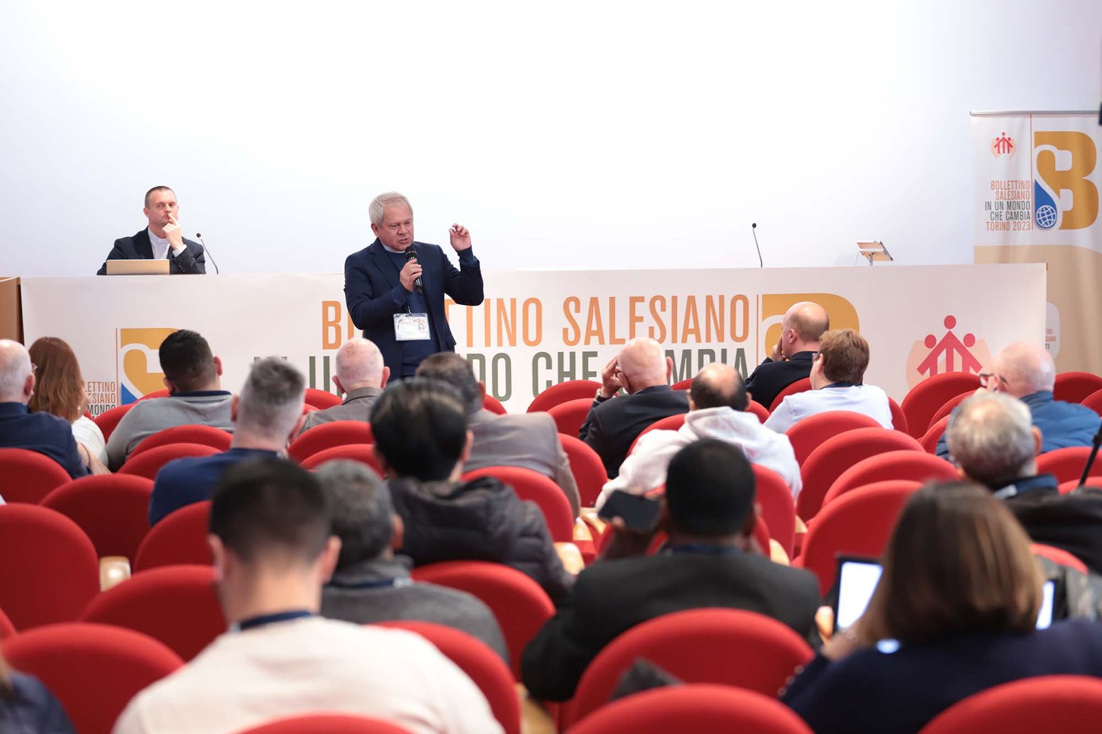 Cha Leonardo Mancini, Tỉnh Dòng Piedmont và Valle d’Aosta (ICP) đã chào đón mọi người đến thành phố của Don Bosco. Ngài giải thích về sự biến đổi và phát triển lớn lao mà Valdocco đã trải qua trong những năm gần đây cũng như số lượng các cộng thể và hoạt động hiện có. Ngài cũng khuyến khích mọi người hãy cầu nguyện bên thánh quan của Don Bosco và tận hưởng và cảm nghiệm sự hiện diện của Don Bosco. Ngài trích dẫn tập 17 của bộ Hồi sử nói rằng đối với Don Bosco, Tập san Salêdiêng là phương tiện tuyên truyền tốt nhất từng được hình thành, bởi vì chính Don Bosco đã tặng tờ tạp chí này cho cả những người có đam mê đọc và được thông truyền, cho cả những người không có chút hứng thú nào: đây chính xác là bí mật. Ngài kết luận bằng cách chỉ ra bí mật này của Don Bosco như một phương pháp suy tư và cải tiến các hoạt động của Tập san Salêdiêng.