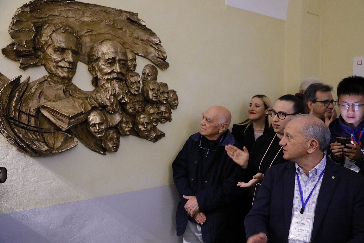 “Sự hiện diện của các Cựu Học Viên giống như sự phun trào của một ngọn núi lửa, nơi mọi người đi ra với khả năng riêng để trở thành muối của đất và ánh sáng của thế gian. Thợ điêu khắc Mauro Baldessari nói: “Trong tác phẩm này, toàn thế giới được thể hiện, vì tính phổ quát của sứ mệnh của anh chị em đã được tạc nên”.