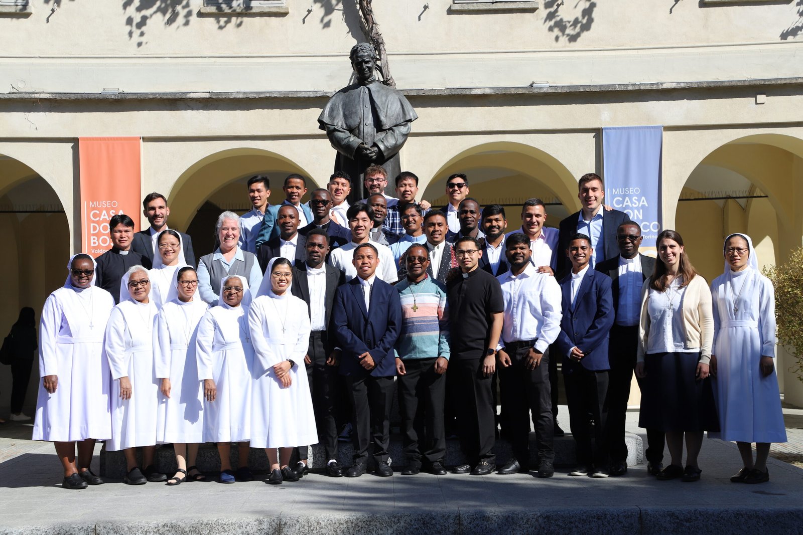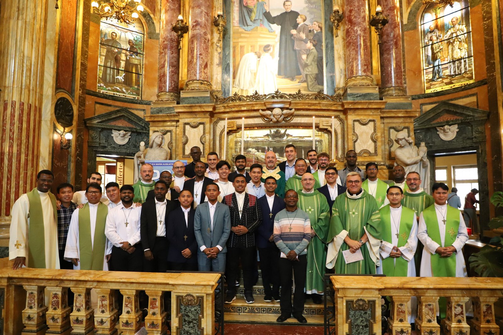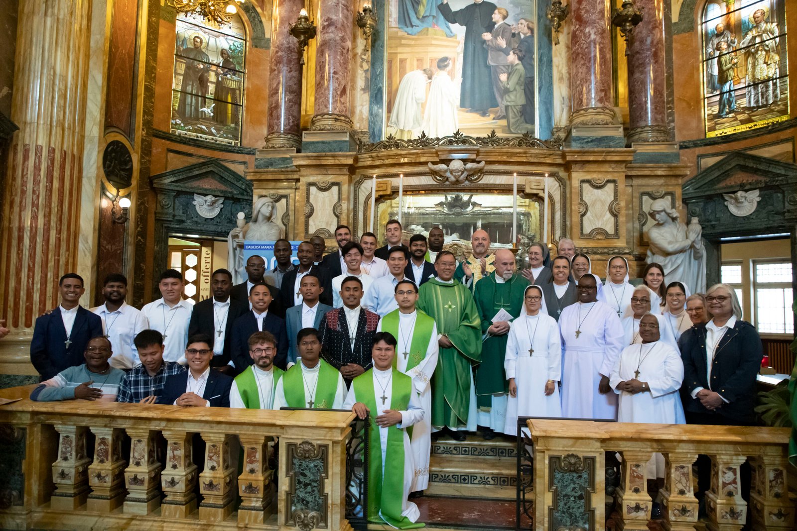 Turin, Ý – Tháng 9 năm 2024 – Thánh Lễ Sai Đi cho Chuyến Xuất Phát Truyền Giáo Salêdiêng lần thứ 155 đã được cử hành vào Thứ 7 ngày 29 tháng 9, do Phó Bề Trên Cả, Cha Stefano Martoglio chủ tế. Theo truyền thống, Thánh Lễ được cử hành tại Vương Cung Thánh Đường Đức Mẹ Phù Hộ Các Giáo Hữu ở Valdocco, Turin. Nơi đây cũng chính là địa điểm mà vào ngày 11 tháng 11 năm 1875, chính Don Bosco đã gửi lời từ biệt và những hướng dẫn đến các vị truyền giáo đầu tiên đang chuẩn bị xuất phát và được dẫn đầu bởi Cha Gioan Cagliero. 27 Salêdiêng đã nhận Thánh Giá Truyền Giáo trong Chuyến Xuất Phát lần thứ 155 này, cùng với một số Nữ Tu Dòng Con Đức Mẹ Phù Hộ Các Giáo Hữu từ chuyến xuất phát truyền giáo FMA lần thứ 147 và các tình nguyện viên người đời khác từ Cộng Đoàn Truyền Giáo Don Bosco (CMB).